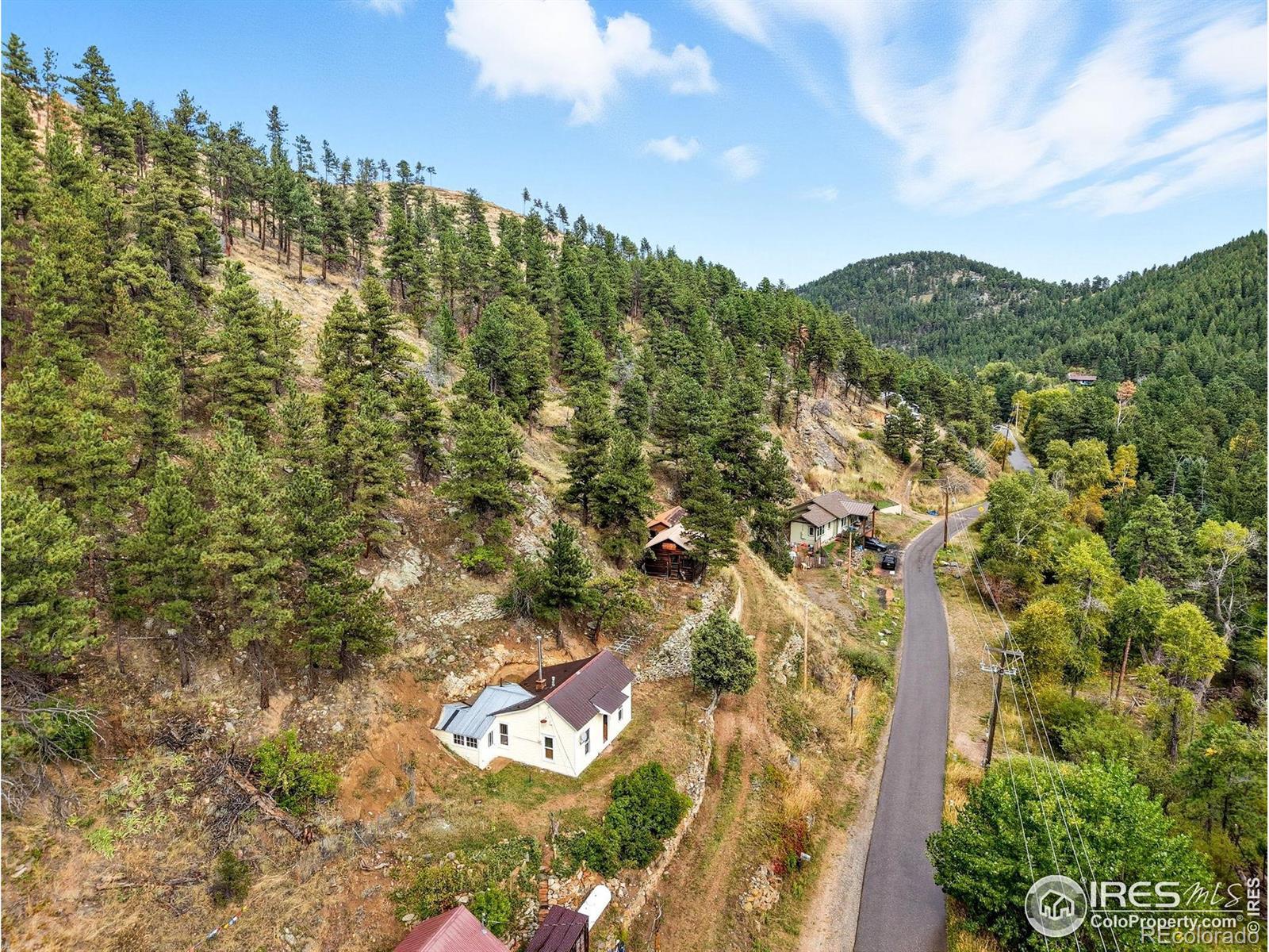Perched on a hillside in magical Fourmile Canyon, this turn of the century cabin on nearly 5 and a half acres is the perfect mountain escape. Enjoy an a beautiful elevated view of the forest with a flowing creek across the street. Just 20 minutes from Boulder, this portion of Fourmile Canyon, dubbed Wall Street in 1889, is steeped in history as a gold mining town. This charming cabin has a memorable history of it's own as well - climbers will love it as the birthplace of Leeper Pitons! The cabin is one bed/one bath, with a large living space, kitchen, and a laundry room. Detached is a large and functional warehouse/garage space for all of your projects - don't miss it! There is a functioning shower and toilet in the home, but there is no permitted septic system currently in place. The new owner will have a year with Boulder County to install a compliant option for a bathroom. There is running hot water, but Seller has no knowledge of potability. Showings only with a licensed agent - Showings must be approved and listing agent will provide specific instructions - please do NOT walk the lot unaccompanied or bother neighbors.