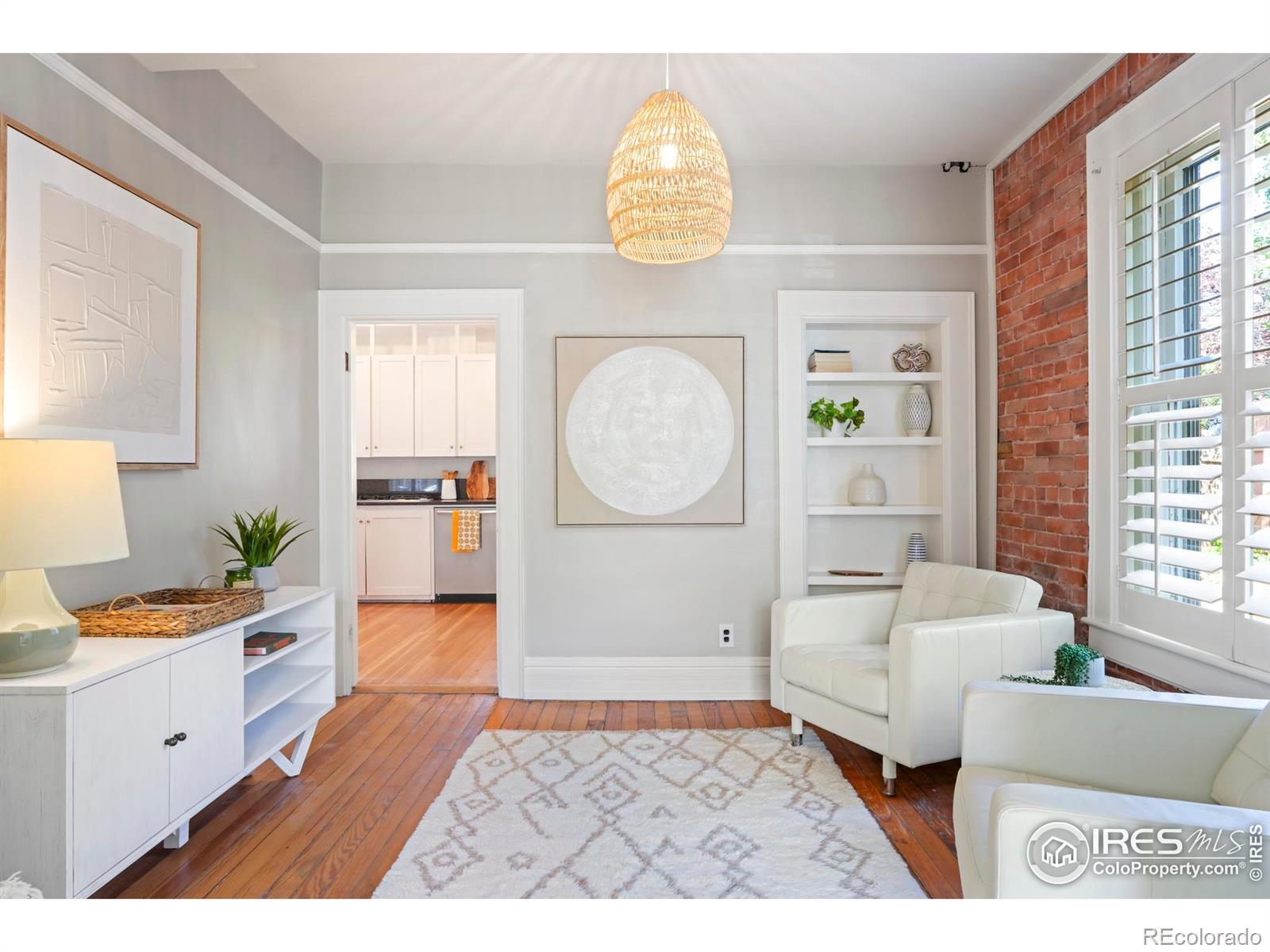 OPEN HOUSE SATURDAYS + SUNDAYS 12-2PM! Situated just one block from Pearl Street yet tucked away on a quiet, tree-lined street, this iconic Queen Anne brick home offers a rare and exceptionally valuable opportunity to own a piece of Boulder's history in an unbeatable downtown location. Walk to Boulder's most celebrated restaurants, cafes, and shopping-including Michelin-starred dining at Frasca-just steps from your door, all while enjoying the serenity and privacy of a peaceful residential enclave. A covered front porch welcomes residents into a home rich with character, where original hardwood floors, tall ceilings, and detailed millwork evoke a sense of timeless elegance. The cozy front parlor, complete with built-ins + fireplace, flows seamlessly into a dining area framed by exposed brick & onward to a sun-drenched flex room. Upstairs, vaulted ceilings + warm wood floors continue the historic charm across three light-filled bedrooms. A clawfoot tub + pedestal sink add a vintage touch to the updated bath, thoughtfully curated to preserve the home's authenticity while offering modern comfort. Unusually spacious for a downtown lot, the private backyard boasts a large mature shade tree, a flagstone patio, + built-in BBQ. Includes 1-off-street parking spot + 22'x17' eastern bay of the barn & 17'x7.5' western portion of barn which may be restored for small car garage use w/some structural repairs. Barn structure has 3 sections & neighbors have use & access easement for the middle portion of barn. Buyer to verify w/City of Boulder on potential for all modifications & improvements. Seller makes no guarantees, Buyer to verify all info.