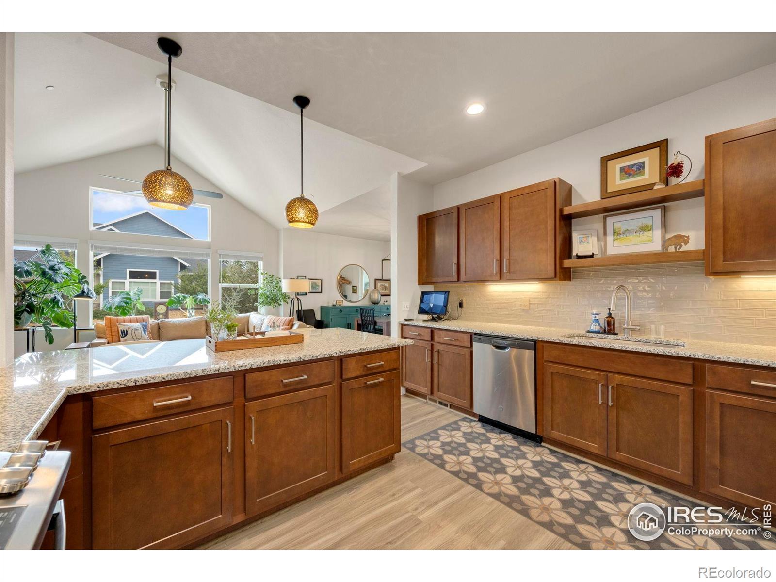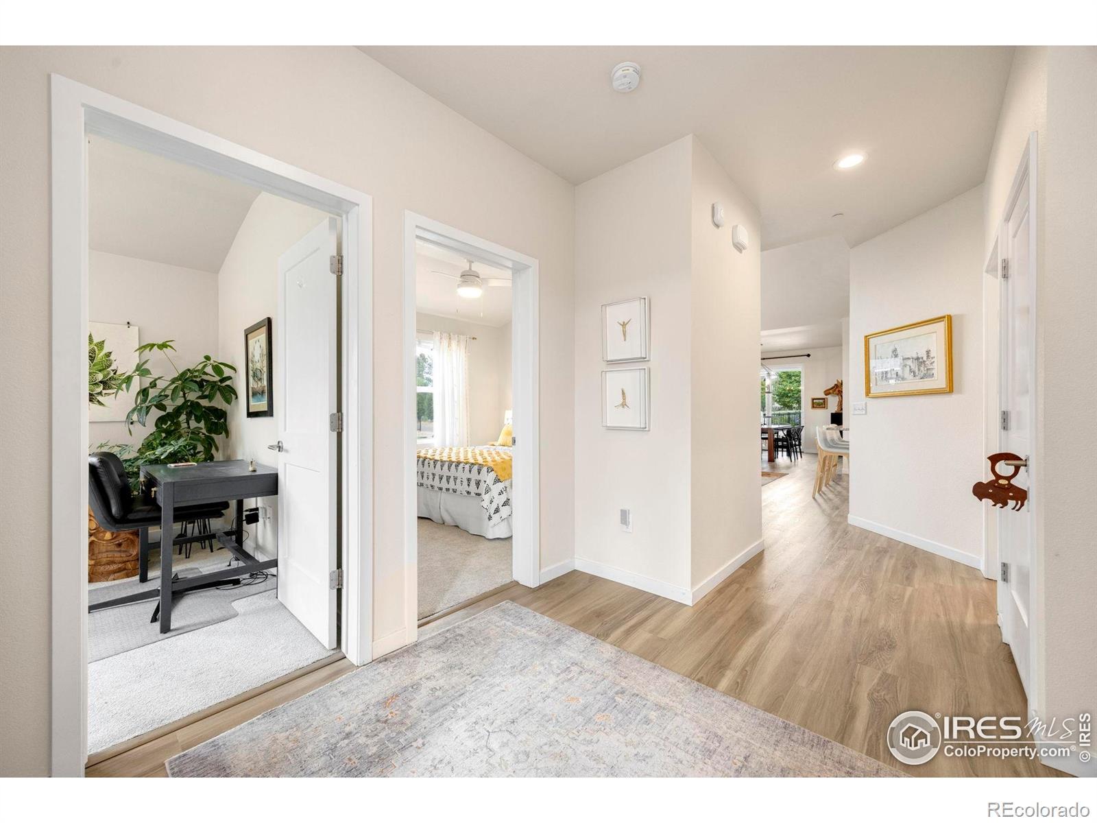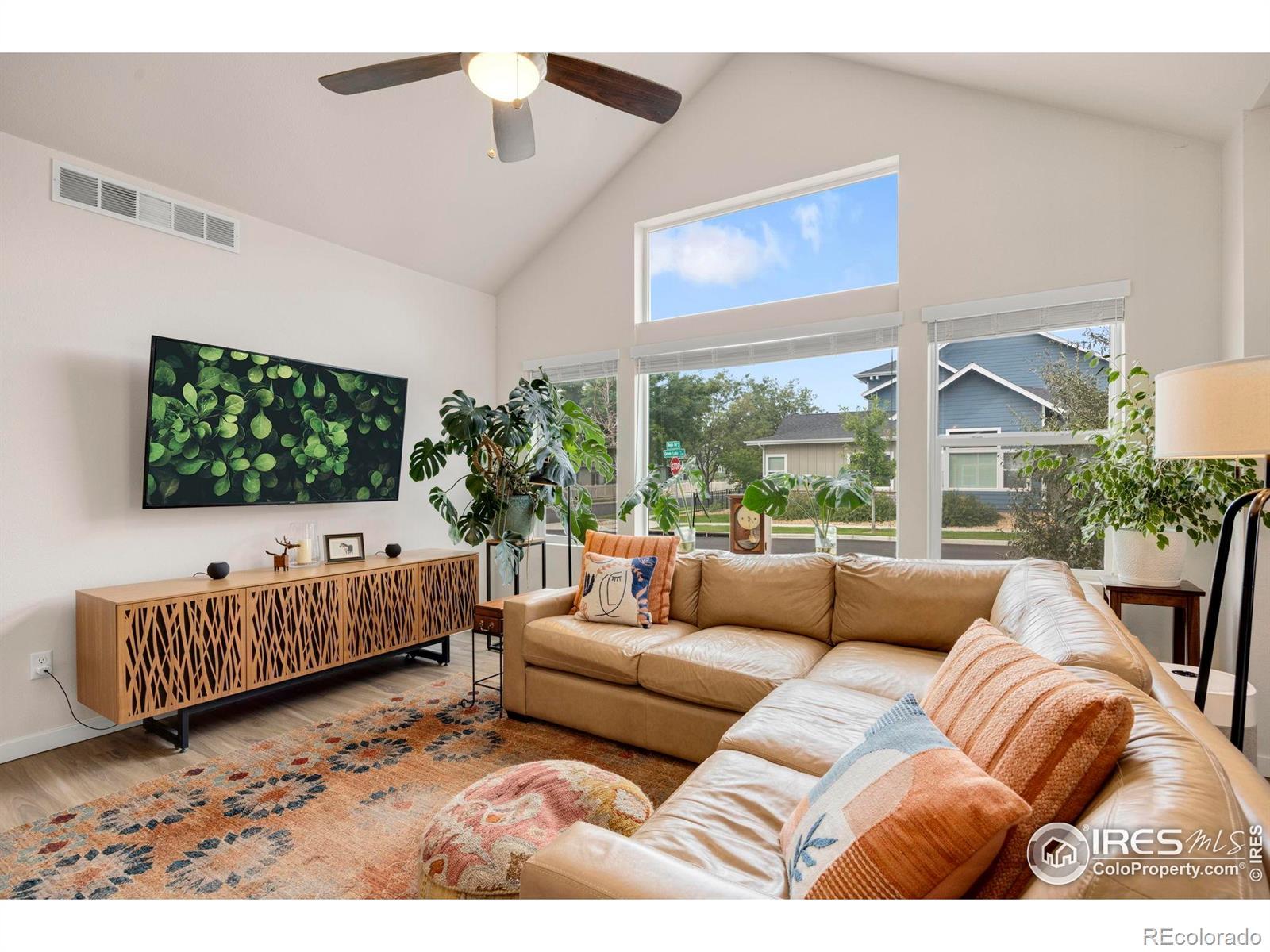 Bright and spacious 3 bed 2 bath "Stair & Metro District Free" end unit townhome in Fort Collins; situated just steps from Traverse Park where you can take advantage of open space, walking trail, playground equipment, and a pump track. Inside, enjoy entertaining from your oversized kitchen with granite countertops, seemingly endless cabinet space, and tasteful custom lighting. Having a more formal gathering? Move to the separate dining area or enjoy our perfect weather on the covered patio with privacy screen on one side, greenery and xeriscape on the other. When the day is over, retire to your owner's suite including a large double vanity and oversized shower in the bathroom, and more stylish lighting to read by in the bedroom. This unit is a true "Lock and Leave" property, snowbird or travel without having to worry about exterior maintenance.
