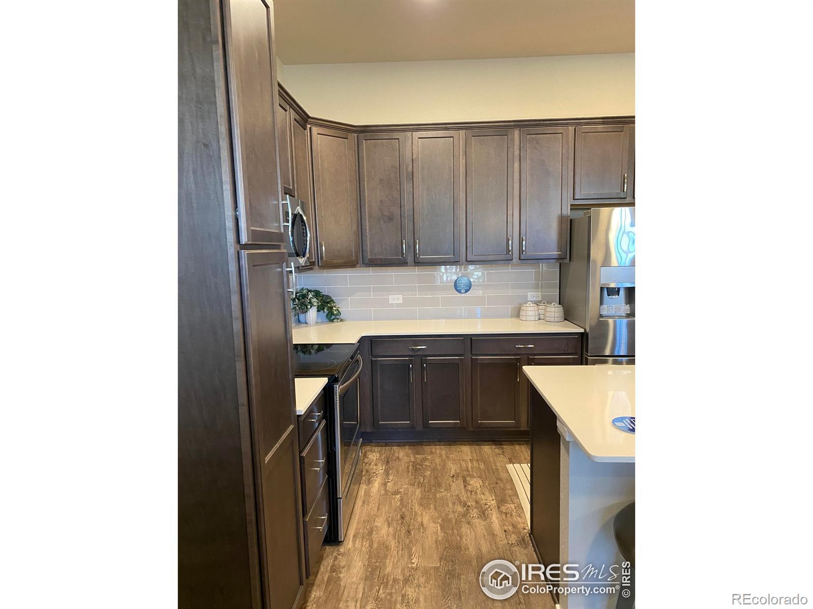 NEVER LIVED IN MODEL HOME! Come see the beautiful, upgraded finishes throughout. Open floor plan, filled w/natural light & vaulted/tall ceilings add to the spacious layout! Kitchen features stainless appliances & each bedroom has its own walk-in closet & en suit bath! Fenced in patio and home comes with fridge, washer & dryer! HOA includes access to Houts Reservior, high speed internet & much more! Centrally located & walking distance to Boyd Lake, trails, pools, shopping, dining, parks, entertainment & much more!