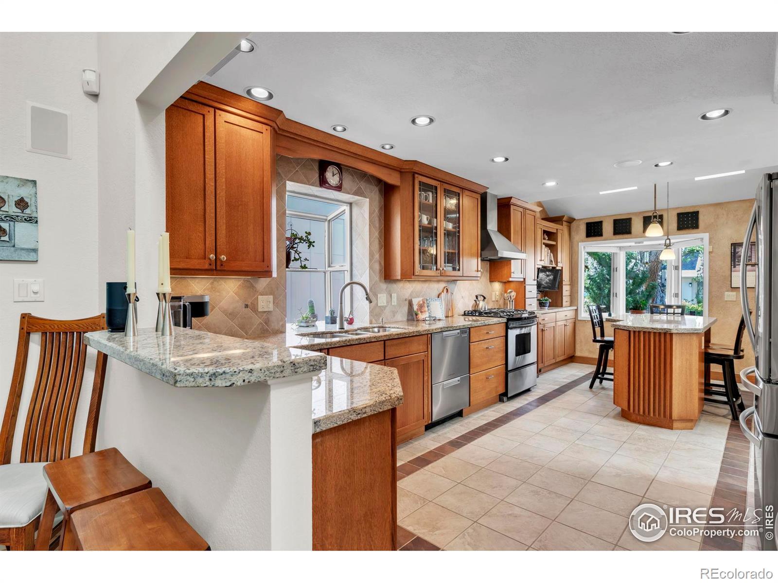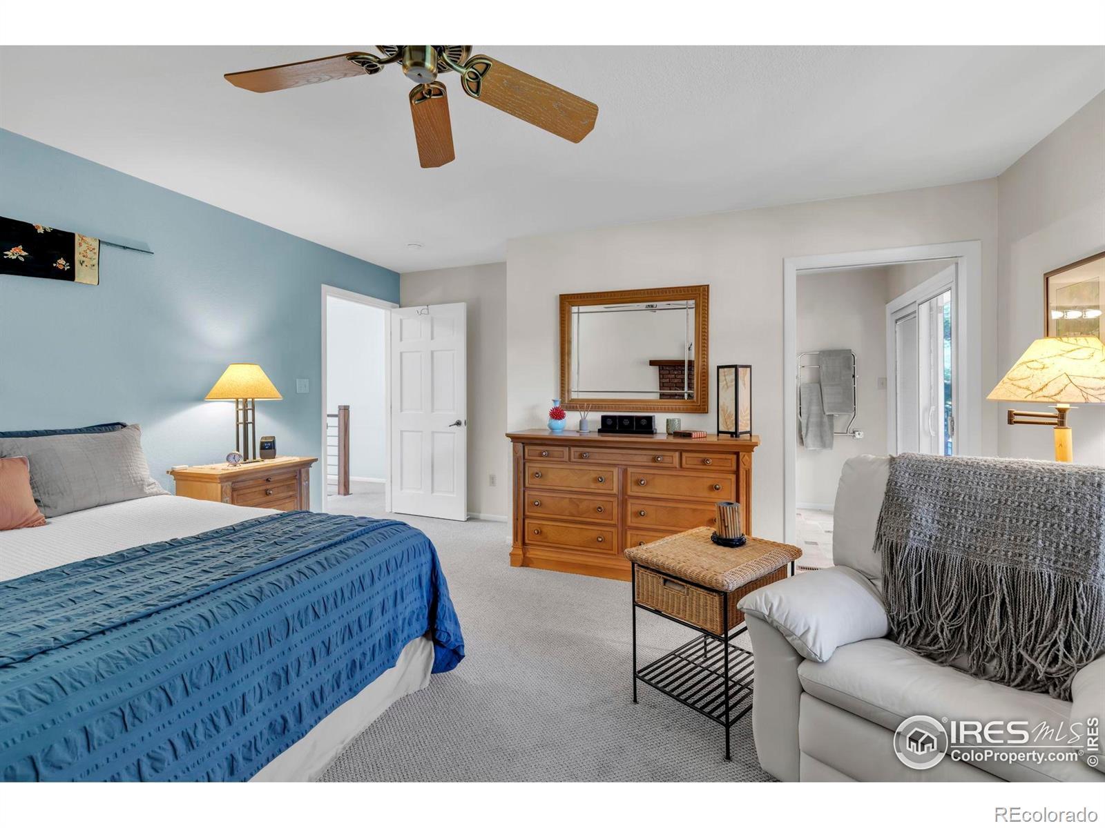 Nicely maintained and updated patio home just steps from Boulder Country Club, backs to lush HOA open area. Spacious living areas offer exceptional comfort and easy entertaining here. Kitchen thoughtfully redone around 2005 with Melton, high quality finishes; stunning oak and chrome staircase and railing. Private master retreat with its own deck overlooking green space, gas fireplace, well appointed 5-piece bath and walk-in closet. Spacious ensuite secondary bedroom and study tucked away on upper level, great guest space on lower level with its own bath. Shaded back patio living with pergola brings the outside in. Main level laundry off of attached garage featuring Chargepoint car charger, unfinished basement complete the scene. New furnace and A/C in 2023, new roof in approx 2020. Such a great quiet location and a wonderful opportunity to live in a neighborhood with extensive walking trails, ponds, mature trees and parks; easy commuting location to Boulder and the entire front range metro area.