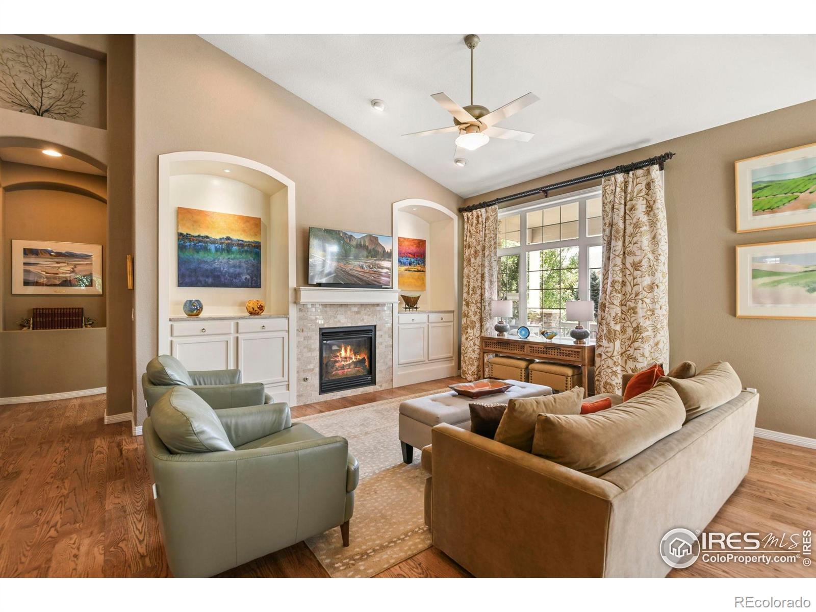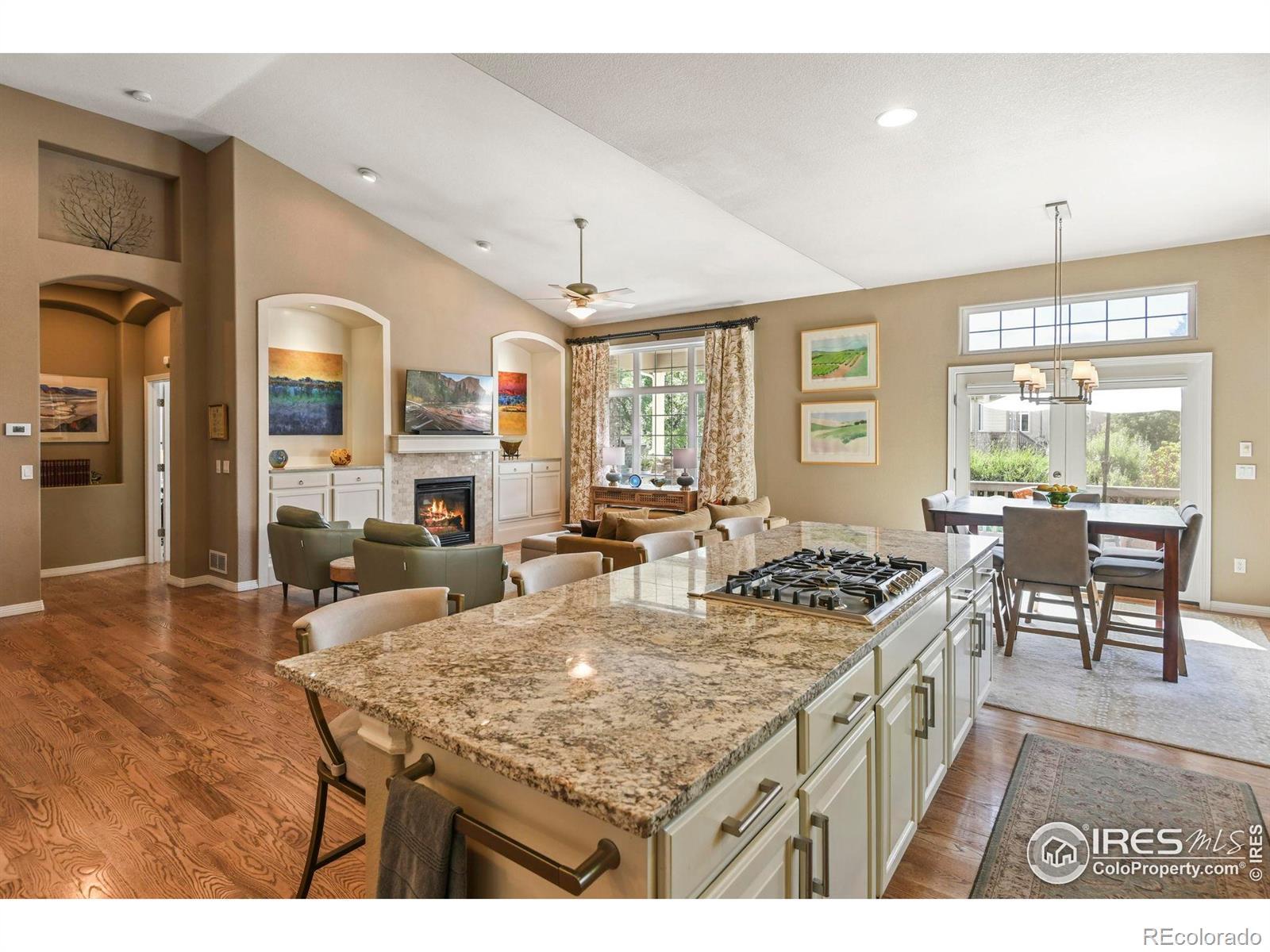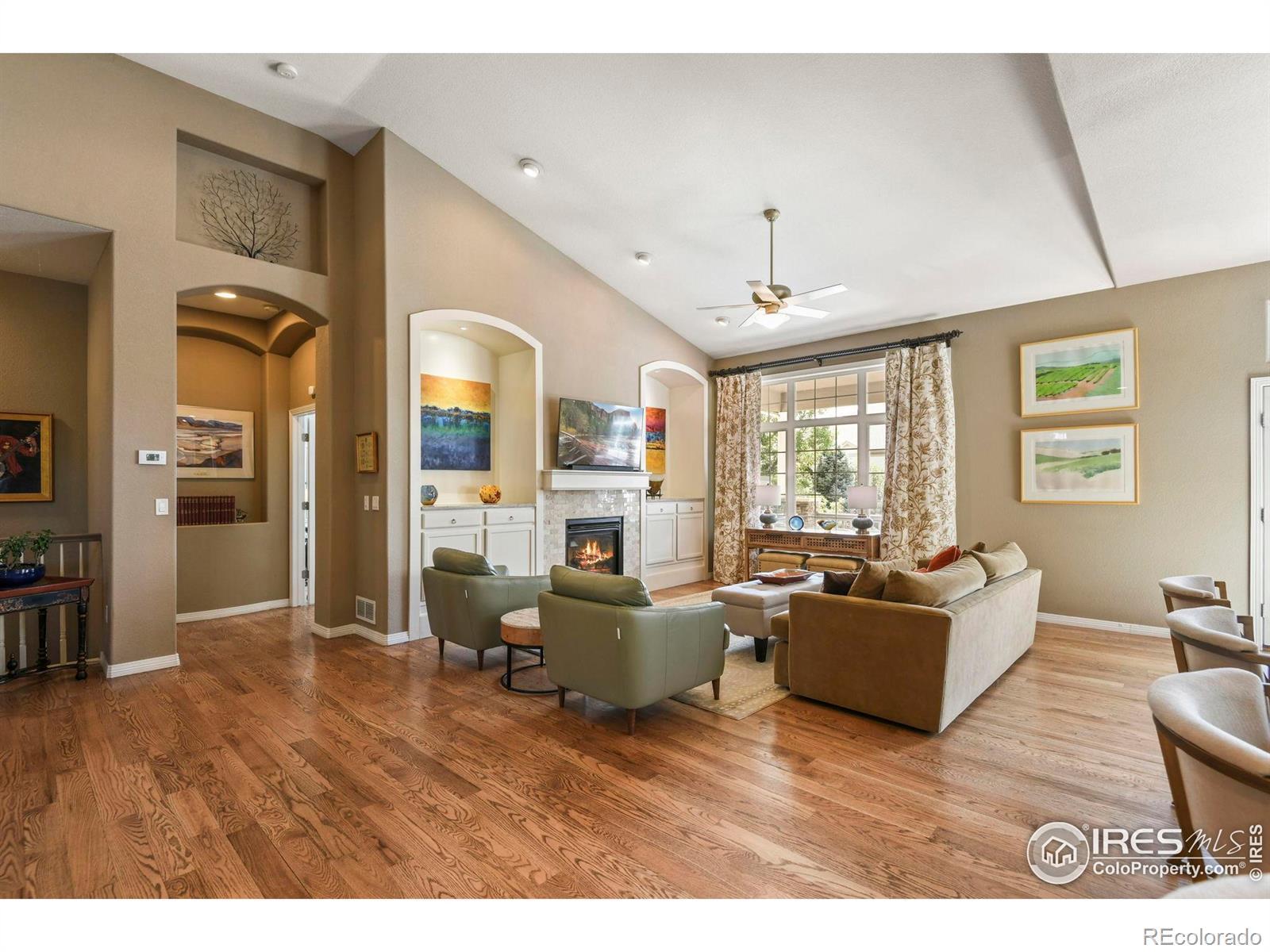 Immaculate ranch-style home in the highly coveted Legacy Ridge subdivision. Thoughtfully remodeled with tasteful updates throughout, this residence blends timeless single-level living with modern elegance, all bathed in abundant natural light. Warm hardwood flooring carries throughout the main level, opening into the inviting family room with a cozy gas fireplace, built-in shelving, and plenty of room for gatherings. The well-appointed kitchen flows into the living and dining areas, while a large island provides ample seating and prep space-perfect for hosting. The generous primary suite features a luxurious en-suite bath, a large walk-in closet with custom built-in organization, and private access to the upper-level deck. The fully finished walk-out basement offers a private secondary living space complete with a convenient wet bar-ideal for guests, multi-generational living, or game-day fun. A unique flex space adds versatility, ideal for a studio, craft room, or reading nook. Nestled on a quiet cul-de-sac, the property offers ample guest parking and a versatile third-car tandem bay, perfectly suited for a workshop or hobby space. The backyard invites you to relax or entertain with both upper and lower decks and mature landscaping. As part of the sought-after Legacy Ridge golf course community, you'll enjoy miles of walking trails, parks, a sparkling swimming pool, and a beautiful clubhouse. All this, with easy access to Denver, Boulder, shopping, dining, and entertainment