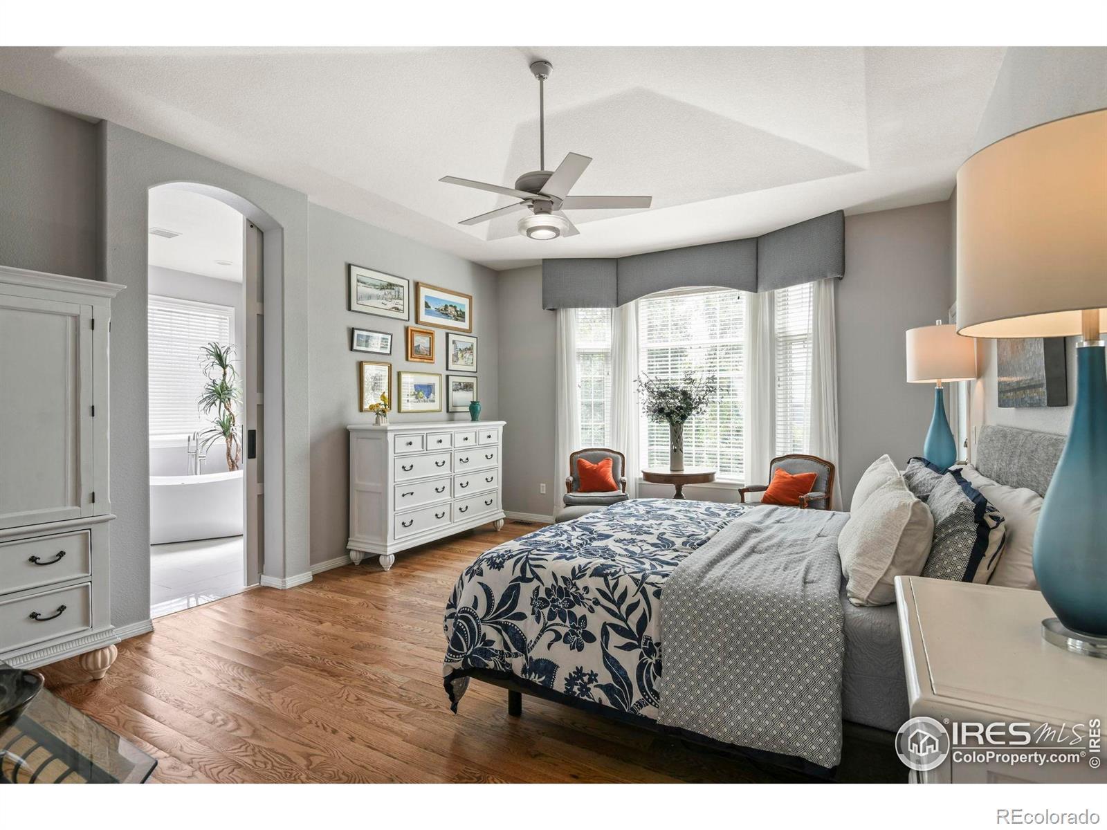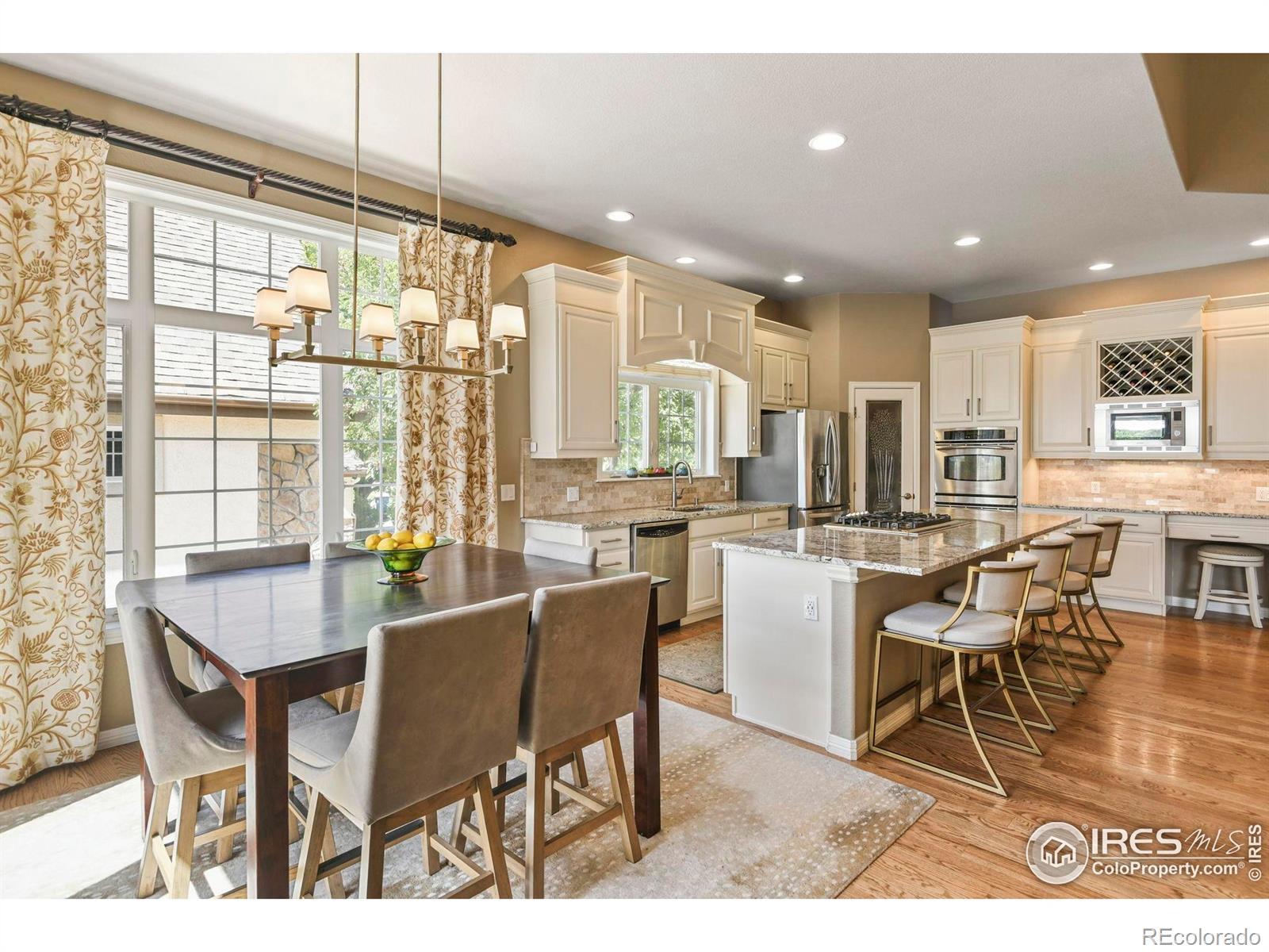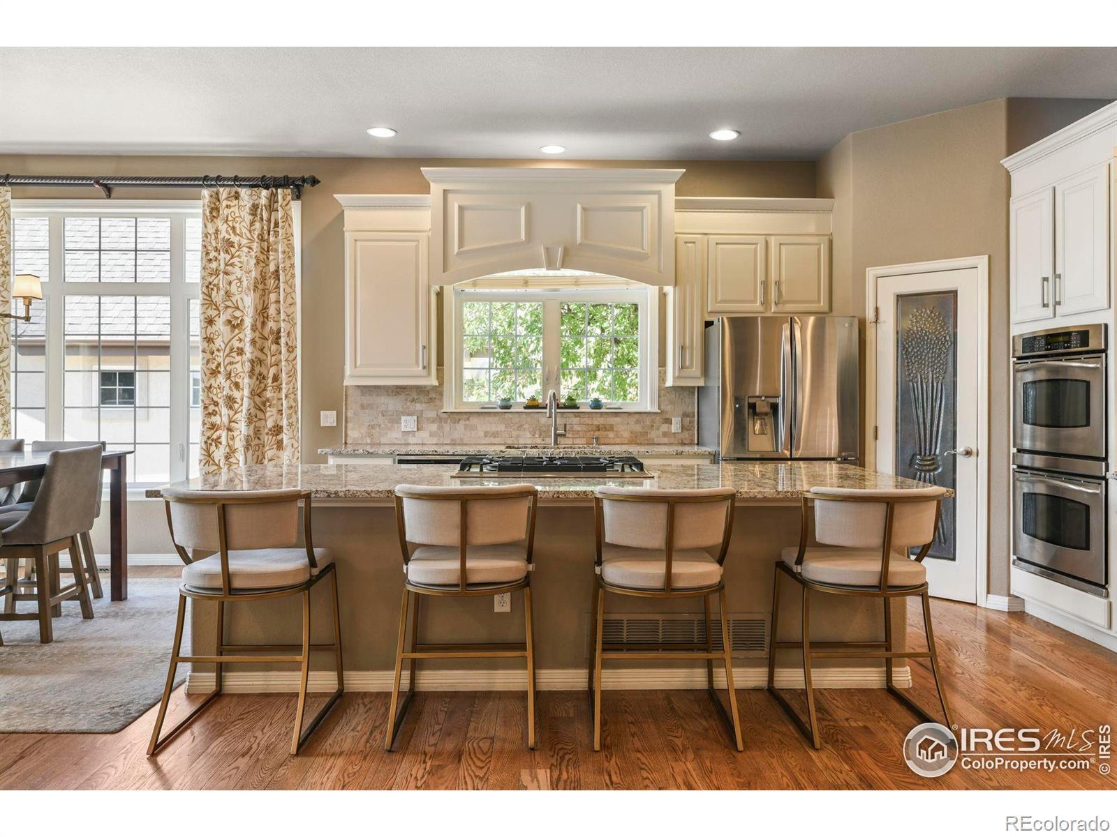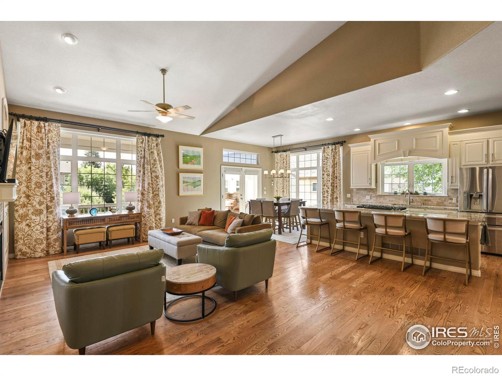 Immaculate ranch-style home in the highly coveted Legacy Ridge subdivision. Thoughtfully remodeled with tasteful updates throughout, this residence blends timeless single-level living with modern elegance, all bathed in abundant natural light. Warm hardwood flooring carries throughout the main level, opening into the inviting family room with a cozy gas fireplace, built-in shelving, and plenty of room for gatherings. The well-appointed kitchen flows into the living and dining areas, while a large island provides ample seating and prep space-perfect for hosting. The generous primary suite features a luxurious en-suite bath, a large walk-in closet with custom built-in organization, and private access to the upper-level deck. The fully finished walk-out basement offers a private secondary living space complete with a convenient wet bar-ideal for guests, multi-generational living, or game-day fun. A unique flex space adds versatility, ideal for a studio, craft room, or reading nook. Nestled on a quiet cul-de-sac, the property offers ample guest parking and a versatile third-car tandem bay, perfectly suited for a workshop or hobby space. The backyard invites you to relax or entertain with both upper and lower decks and mature landscaping. As part of the sought-after Legacy Ridge golf course community, you'll enjoy miles of walking trails, parks, a sparkling swimming pool, and a beautiful clubhouse. All this, with easy access to Denver, Boulder, shopping, dining, and entertainment