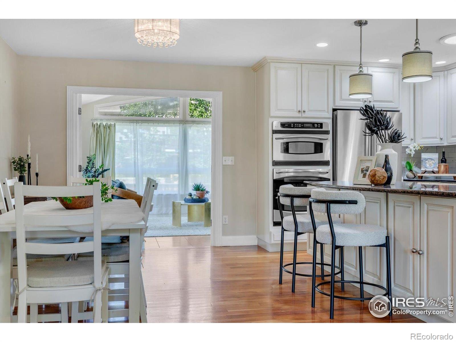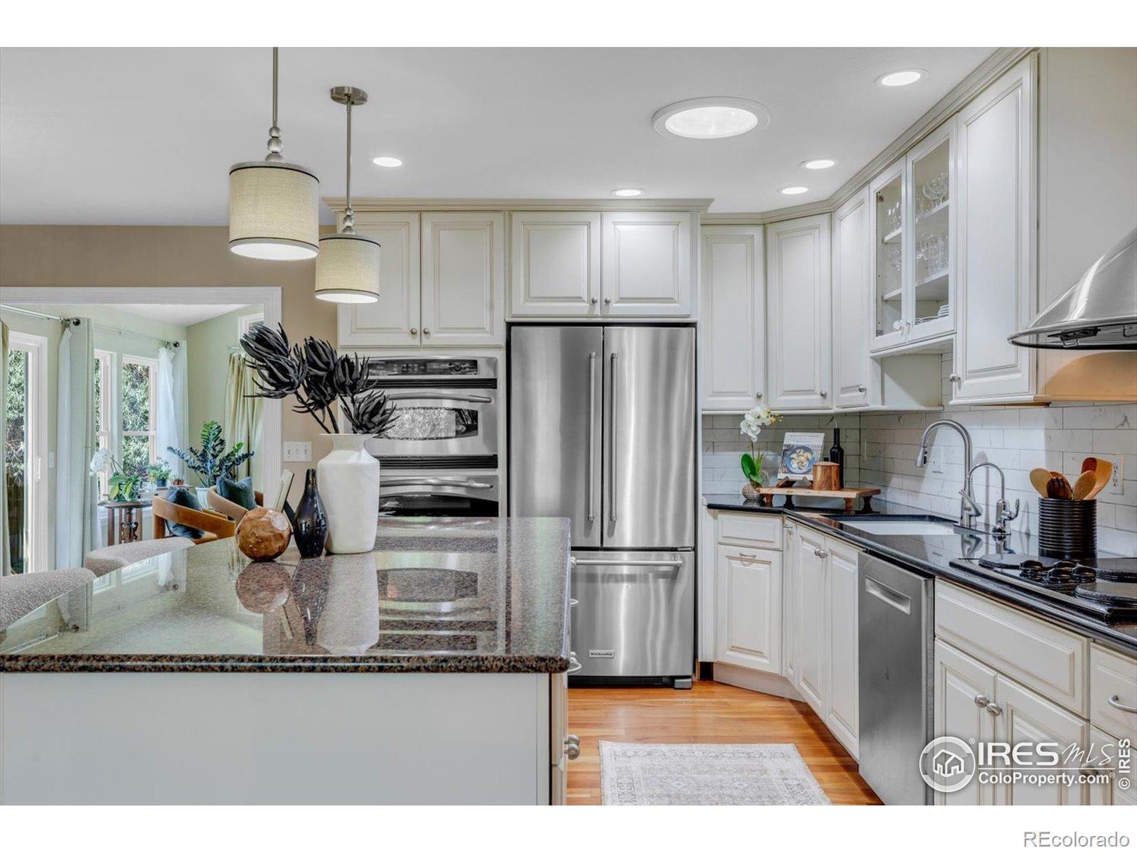 Charming updated bi-level in the heart of Upper Table Mesa! Welcome to this beautifully updated home, ideally situated on a quiet, tree-lined street in the heart of Upper Table Mesa - one of South Boulder's most coveted neighborhoods. Just one block from top-ranked Mesa Elementary School, this home offers the perfect blend of comfort, convenience, and community. Inside, you'll find a warm and inviting open floorplan, highlighted by stunning refinished Brazilian cherry hardwood floors. The main level has been thoughtfully expanded to include a spacious family room addition with vaulted ceilings-an ideal space for everyday living and effortless entertaining. The remodeled, open concept kitchen is a showstopper, featuring modern finishes and smart design: a central island with breakfast bar, sleek stainless steel appliances, stone countertops, subway tile backsplash, recessed lighting, and a solar tube that brings in natural light. Each of the three bedrooms boasts its own ensuite bath, providing privacy and comfort for family and guests alike. Downstairs, a cozy second living area with a wood-burning fireplace offers the perfect retreat for movie nights or quiet evenings in. Additional features include a PV solar system for energy efficiency, an attached two-car garage, and a large, privacy fenced backyard, ideal for gardening, play, or peaceful relaxation. You'll love the unbeatable location, just minutes from the Table Mesa Center, top-rated K-12 public schools, and countless trails for hiking and biking in the nearby foothills. Whether you're heading out for a morning hike, grabbing a coffee at Boxcar Coffee or a beer at Southern Sun, or simply enjoying the comfort of home, this one checks all the right boxes.