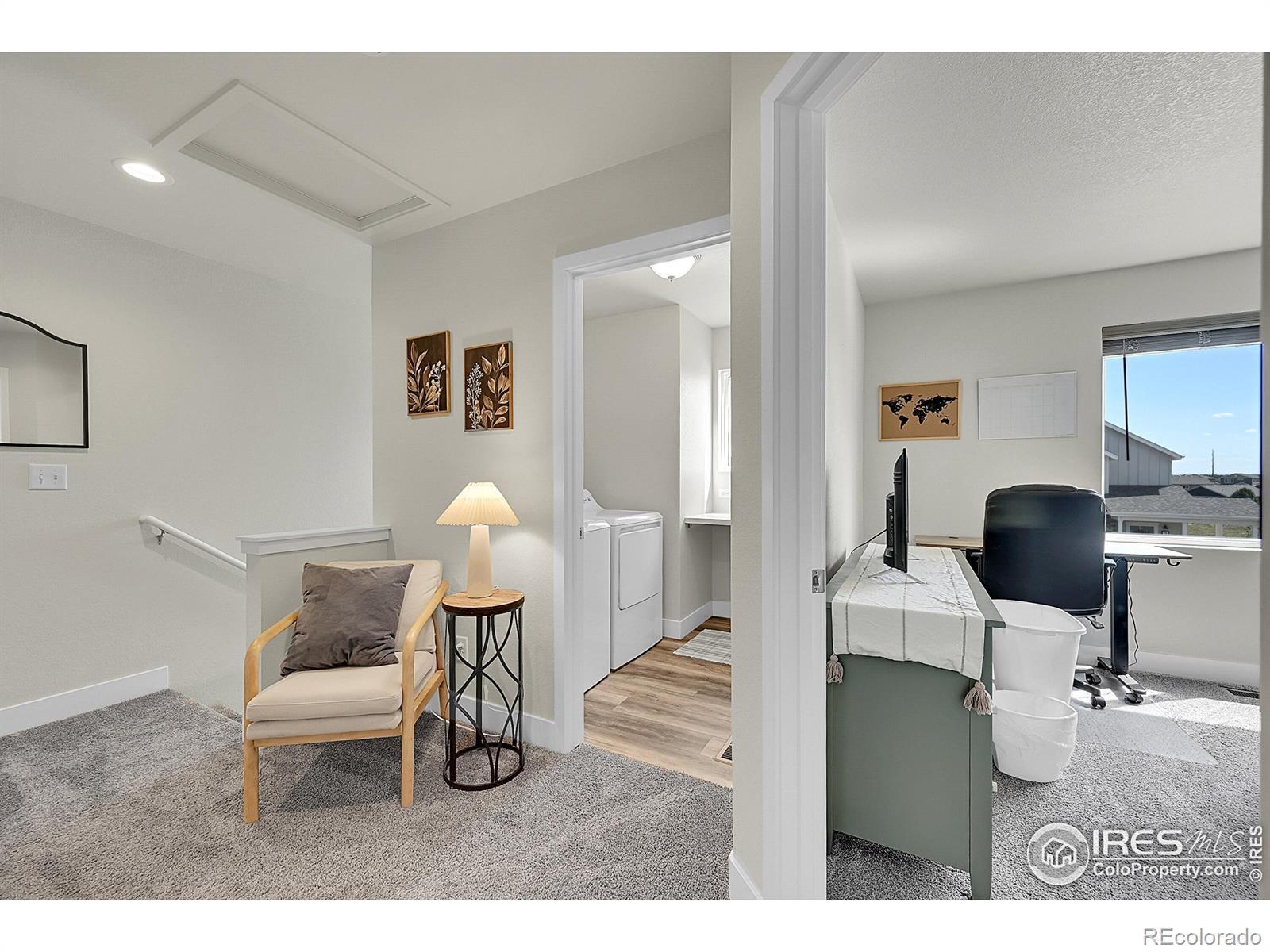 Welcome to 3115 Da Vinci Drive in Wilson Commons subdivision! Built in 2023, this 2-bedroom, 2.5-bath home offers 1,370 sq. ft. of modern living in one of north Loveland's newest neighborhoods. The open main floor features a stylish kitchen with island, pantry, and stainless steel appliances. Upstairs, you'll find convenient laundry near the bedrooms.Enjoy quality features throughout, including central A/C, a smart thermostat, tankless water heater, 9-ft main floor ceilings, and a glass shower surround in the primary bath. The oversized 1-car garage includes an 8-ft door and opener, and the covered back patio is perfect for relaxing outdoors. HOA maintains the front yard landscaping for easy living.Plus, you'll love being within walking distance of the park and close to great hiking and biking trails. Just minutes from Carter Lake, Horsetooth Reservoir, downtown Loveland, Fort Collins, and even an easy drive to Estes Park, this home offers the ideal balance of convenience and outdoor adventure!