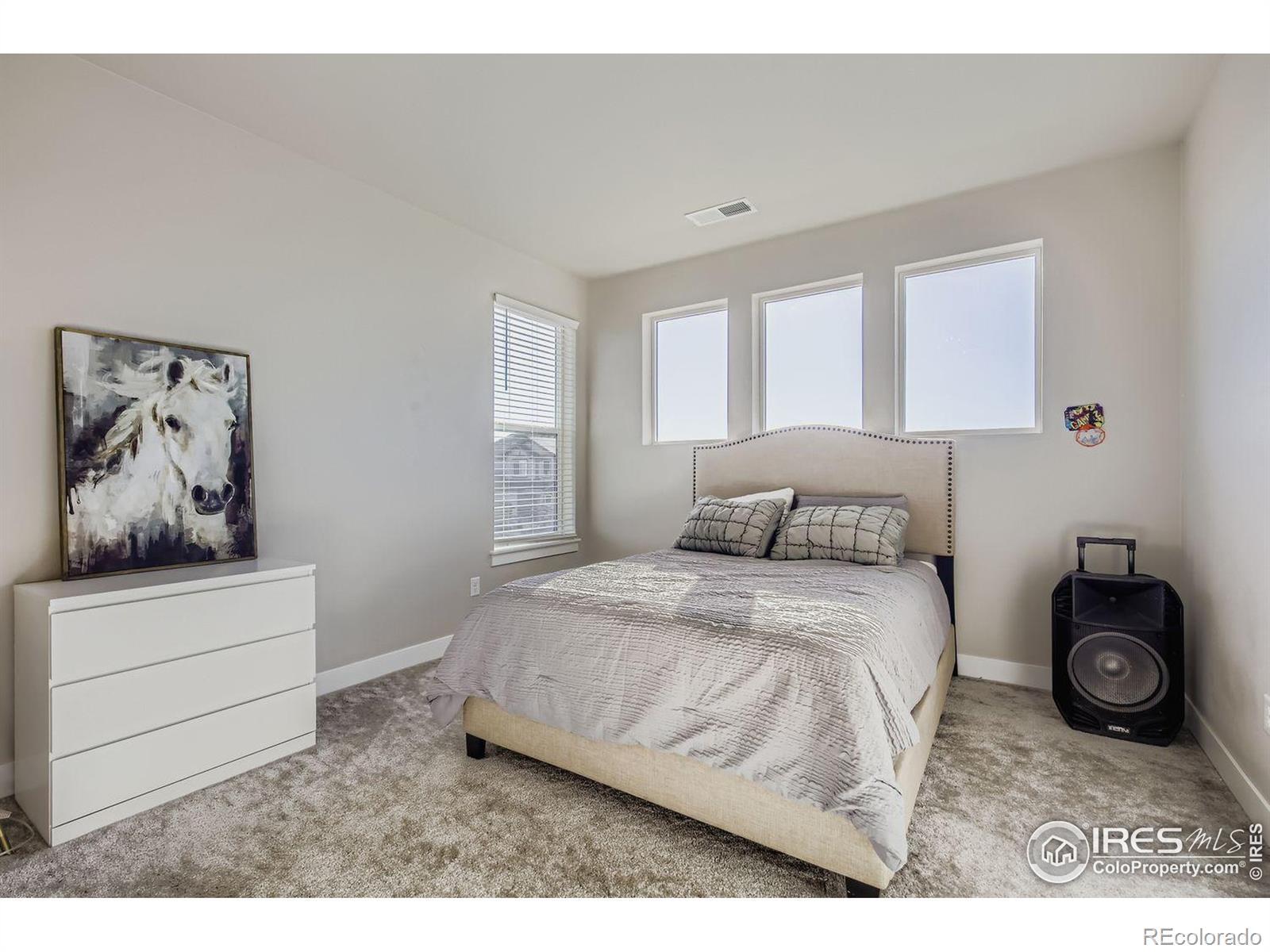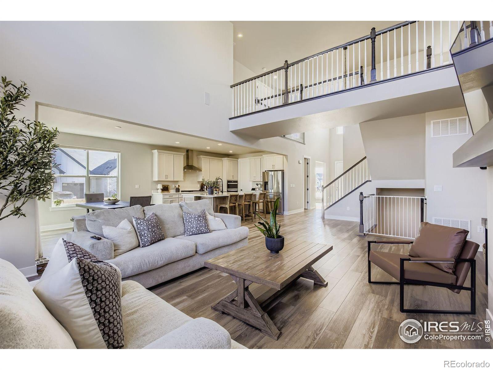 A Beautiful modern and thoughtfully designed home offers soaring ceilings, a main-level primary suite and laundry, plus a spacious 3-car tandem garage. Upstairs, you'll find three generous bedrooms, two bathrooms, and a flexible loft space, perfect for a home office, play area, or bonus room. Large windows and 9' ceilings make the whole space feel bright and open. Step outside to a covered patio on a west-facing lot, ideal for enjoying cool afternoons and evening sunsets. Located just a short walk from the future community amenity center and new lake, and close to I-25, great walking trails, and close to downtown Timnath.