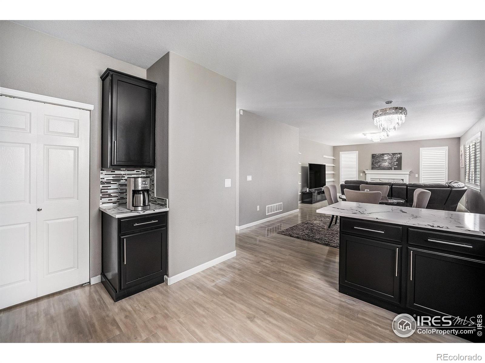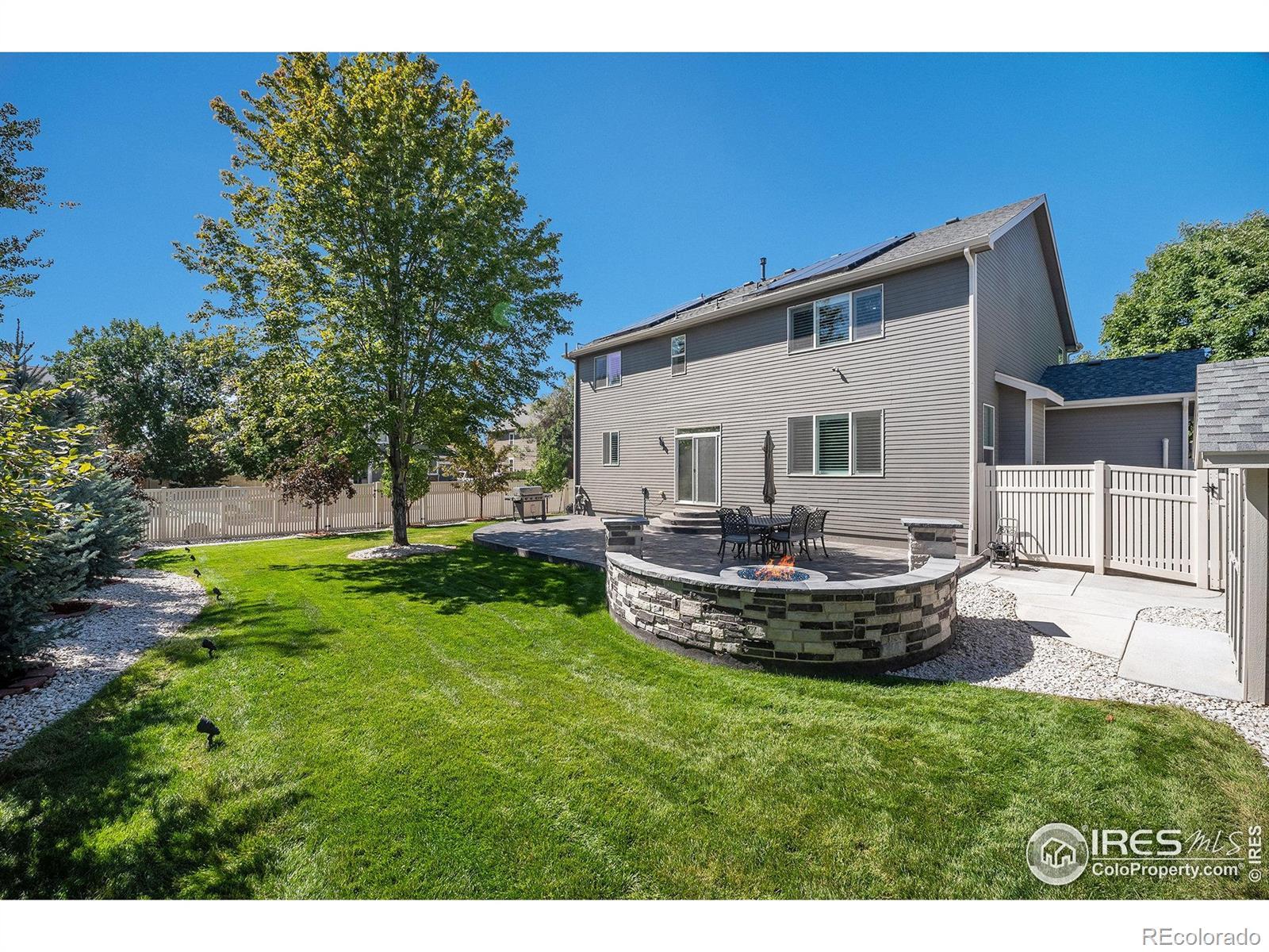 SELLER IS OPEN TO CONTINGENCIES Welcome to luxury living in the coveted Mountain Shadows North community of Firestone! This fully remodeled 2004 home sits on a beautifully landscaped 0.22-acre corner lot and showcases over $400K in premium upgrades, offering true turnkey elegance.From the inviting covered front porch to the stunning interior finishes, every detail has been thoughtfully updated. Inside, you'll find plantation shutters, custom lighting, and an ideal layout for modern living. The main floor features formal living and dining rooms, a private office, and an open-concept kitchen/family room with a cozy gas fireplace. The gourmet kitchen is a chef's dream, boasting quartz Counter tops, all new stainless steel appliances, and a designer Backsplash. A spacious breakfast nook opens to the back deck for seamless indoor-outdoor entertaining.Upstairs, retreat to the luxurious primary suite with vaulted ceilings and a spa-inspired 5-piece bath. A versatile loft, three additional large bedrooms all closets updated by closet by design, a full bath, and a dedicated laundry room offer ample space for guests. New electrical panel, new a/c, water heater and new roof.The huge unfinished basement provides room to grow or ample storage.Outside, enjoy the custom stamped concrete patio, built-in gas Fire pit and seating, In line gas grill, two large storage units, and a lush lawn within a fully fenced backyard-your personal oasis.Additional upgrades include an attached 3-car heated/cooled garage, owned solar panels, and three new AC units, ensuring comfort and efficiency year-round.Located in a quiet, desirable neighborhood close to parks, schools, and shopping, this exceptional home blends style, function, and unbeatable value.Don't miss this rare opportunity-schedule your private showing today!