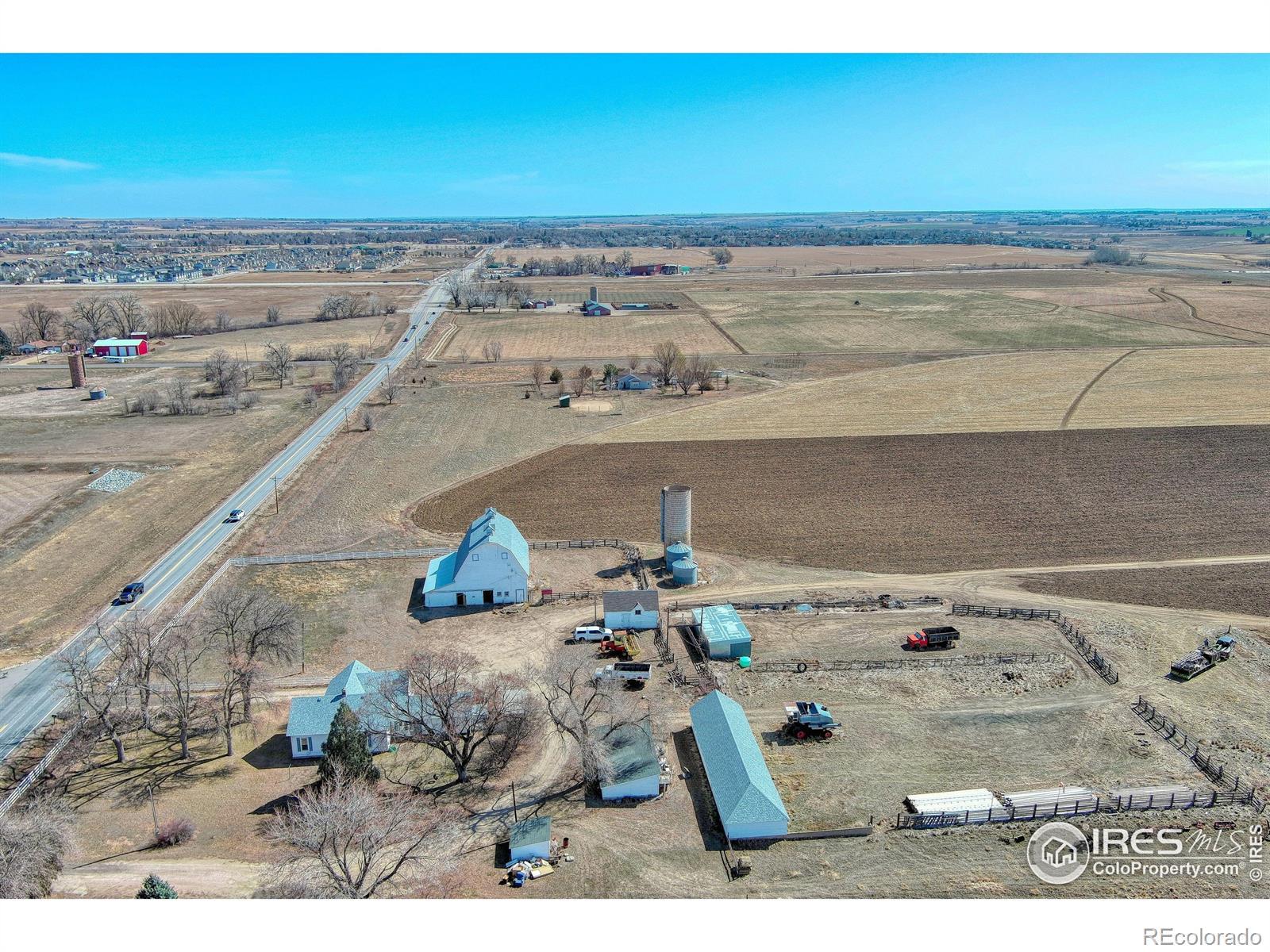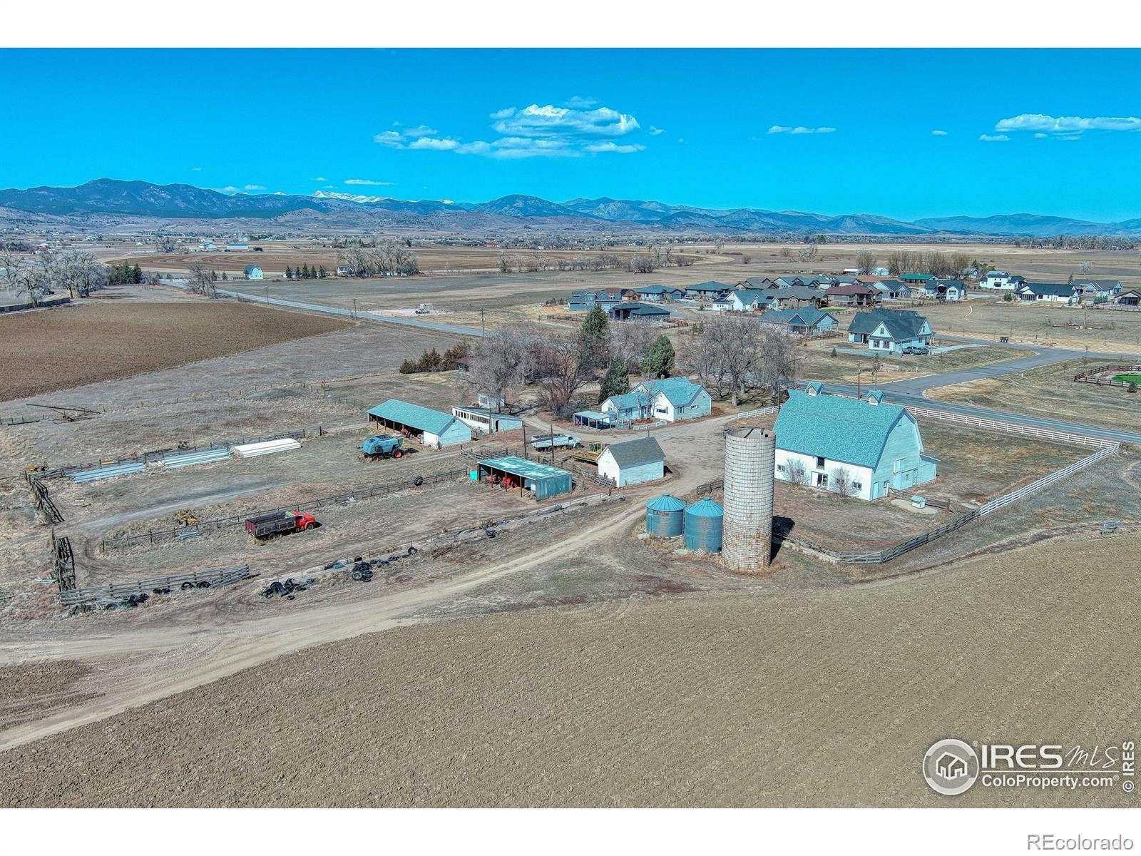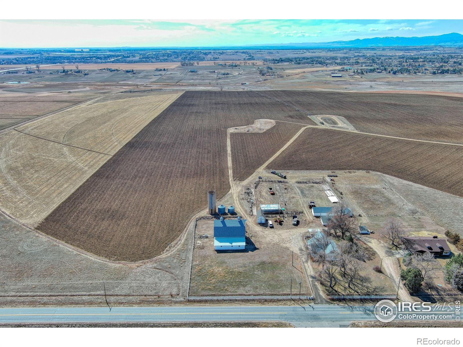 This nearly 43-acre property in Berthoud offers an exceptional blend of agricultural use, equestrian potential, and future development opportunity in one of northern Colorado's most desirable growth corridors. With a gentle southern slope, 6.5 shares of Handy Ditch water and 7 Dry Creek Lateral carrying shares, the land is productive and versatile. Located just a half-mile west of Highway 287, the property enjoys easy access to Loveland, Longmont, Boulder, and Denver while also offering a scenic shortcut to Estes Park and Rocky Mountain National Park. The charming downtown of Berthoud, often referred to as a hidden gem of the Front Range, is less than a mile away with its shops, restaurants, breweries, and community events.Recreation abounds in every direction. TPC Colorado at Heron Lakes-home of the Korn Ferry Tour's Colorado Championship-is less than 10 minutes away, and miles of trails, open space, and reservoirs surround the community. Golf, hiking, biking, and water recreation are all nearby, while winter sports and mountain adventures are within easy reach via Berthoud Pass. The region enjoys over 200 days of sunshine a year, four distinct seasons, and comfortable summer evenings thanks to the area's elevation and semi-arid climate. Improvements on the property include a 1905 farmhouse of approximately 1,580 square feet with a Little Thompson water tap, plus multiple outbuildings including a large barn, loafing shed, silo, grain bins, and several smaller sheds. The barn, farmhouse, and loafing shed all feature newer roofs. Currently farmed, the property has a lease in place that ends at harvest. A recorded survey with new legal descriptions is complete and county processing is underway. A neighbor holds a Right of First Refusal. Incredible western views of the snowcapped Rockies provide the perfect backdrop for this one-of-a-kind opportunity.