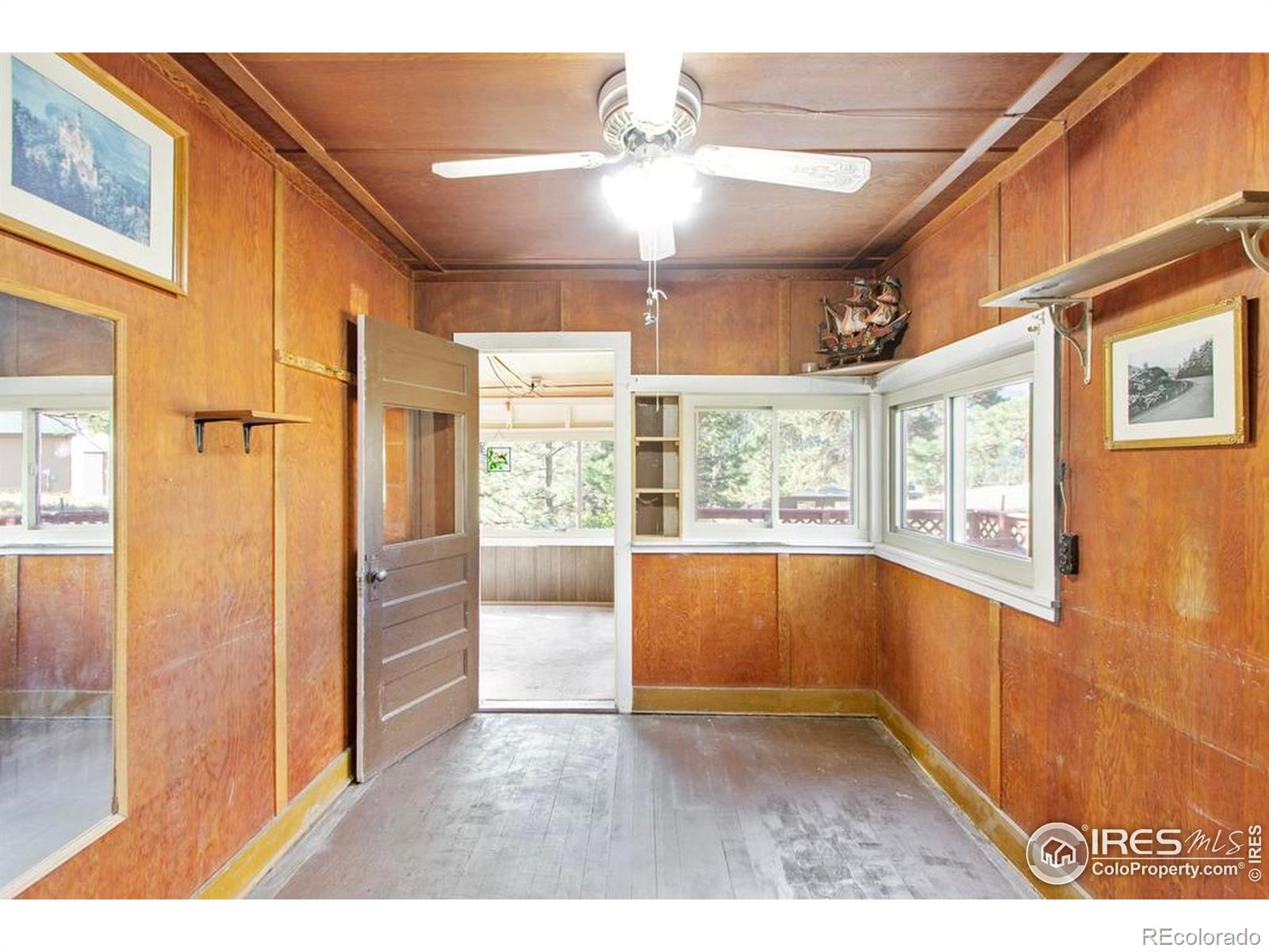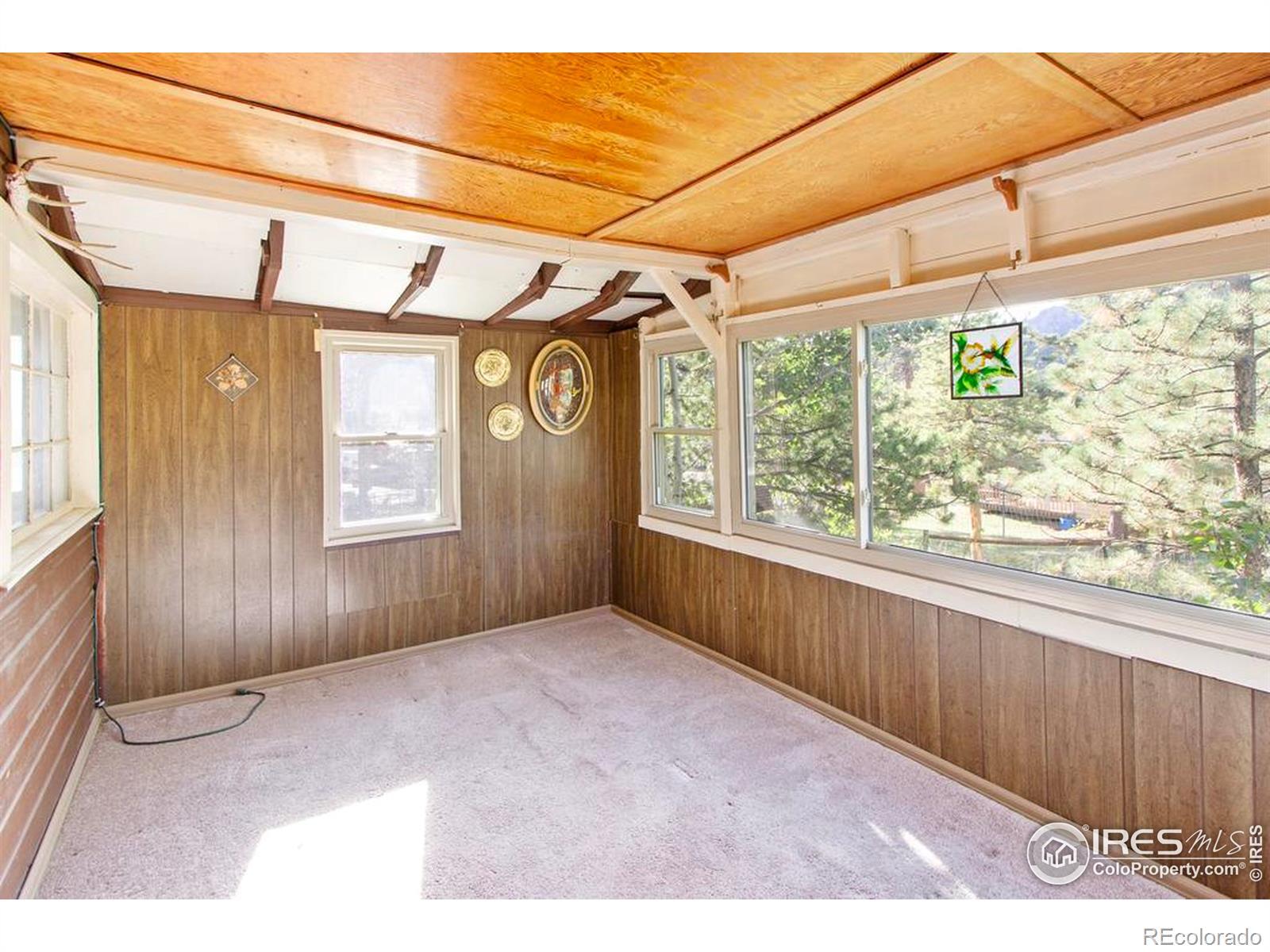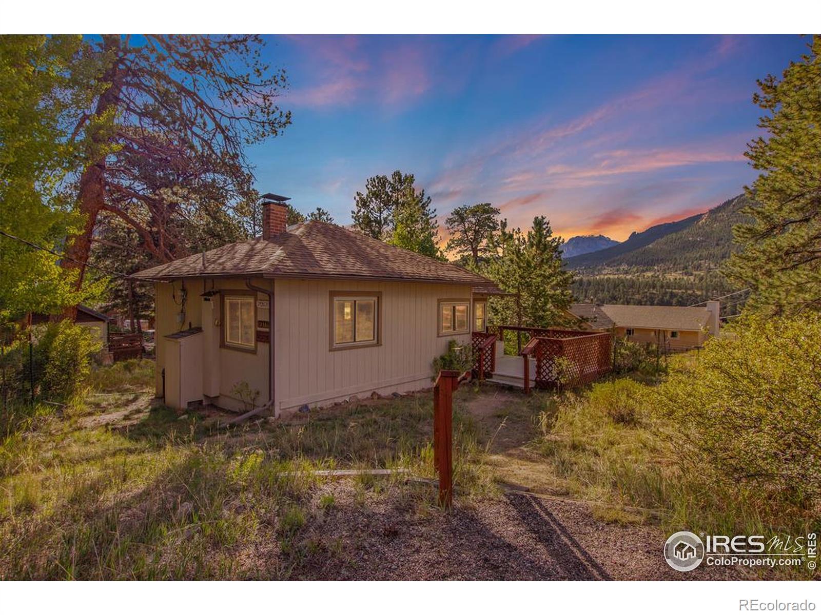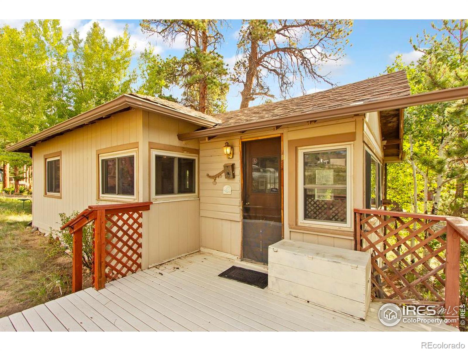 Step back in time and experience the charm of a 1926 mountain cabin, ideally located on the edge of Rocky Mountain National Park. This two-bedroom, one-bath retreat blends rustic character with breathtaking scenery, offering the perfect balance of seclusion and convenience - just minutes from downtown Estes Park. Surrounded by towering pines, the cabin's classic wood siding and pitched roof invite you to slow down and savor mountain life. The front deck provides space to relax outdoors, whether you're watching the sunrise over the peaks or stargazing under Colorado's crisp night skies. Inside, the cabin exudes authentic vintage charm. Wood-paneled walls, built-in storage, and large windows create warm, light-filled spaces that frame treetop and mountain views. The cozy living areas flow seamlessly to a sunroom, where natural light and serene views make the perfect spot for reading or morning coffee. The kitchen maintains its rustic character with an antique propane gas and wood-burning range and oven, original cabinetry, and bright windows that connect you to the outdoors. Adjacent dining space makes gatherings simple and inviting. Two intimate bedrooms offer comfort and flexibility - ideal for restful nights, a guest room, or a creative workspace. The bathroom features tiled walls, a walk-in shower, and a window for fresh mountain air. Step outside to a spacious deck and open yard, where wildlife roams freely and trails into the park await. A rustic outbuilding adds storage and a touch of historic mountain character. Whether you envision quiet weekends away or a basecamp for Rocky Mountain adventures, this property delivers. This is more than just a cabin - it's a chance to own a piece of Estes Park history and create memories for generations to come.