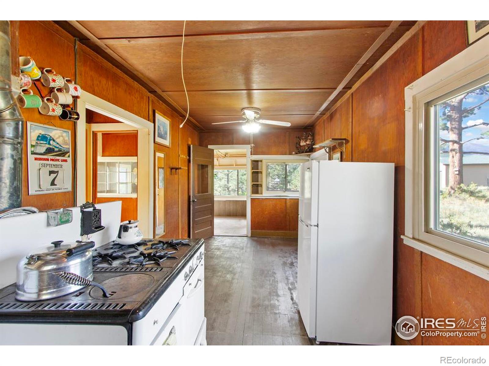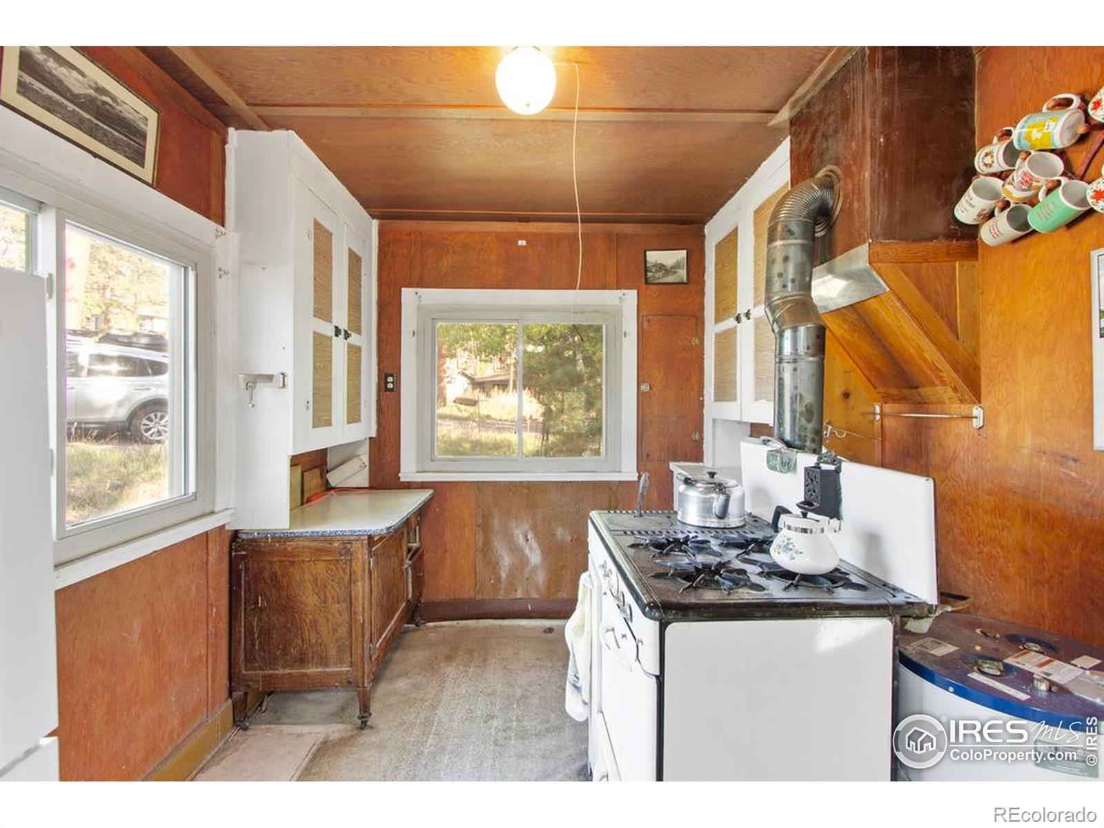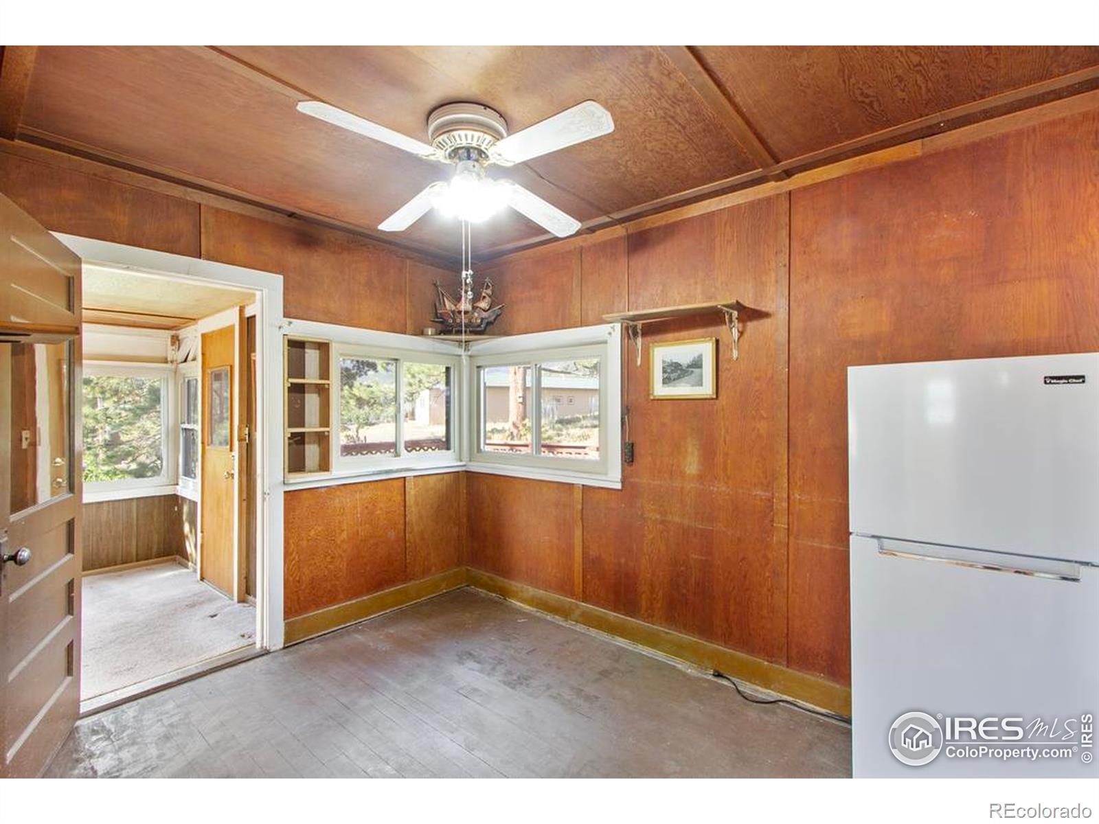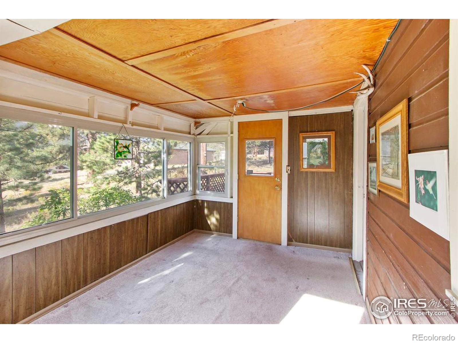 Step back in time and experience the charm of a 1926 mountain cabin, ideally located on the edge of Rocky Mountain National Park. This two-bedroom, one-bath retreat blends rustic character with breathtaking scenery, offering the perfect balance of seclusion and convenience - just minutes from downtown Estes Park. Surrounded by towering pines, the cabin's classic wood siding and pitched roof invite you to slow down and savor mountain life. The front deck provides space to relax outdoors, whether you're watching the sunrise over the peaks or stargazing under Colorado's crisp night skies. Inside, the cabin exudes authentic vintage charm. Wood-paneled walls, built-in storage, and large windows create warm, light-filled spaces that frame treetop and mountain views. The cozy living areas flow seamlessly to a sunroom, where natural light and serene views make the perfect spot for reading or morning coffee. The kitchen maintains its rustic character with an antique propane gas and wood-burning range and oven, original cabinetry, and bright windows that connect you to the outdoors. Adjacent dining space makes gatherings simple and inviting. Two intimate bedrooms offer comfort and flexibility - ideal for restful nights, a guest room, or a creative workspace. The bathroom features tiled walls, a walk-in shower, and a window for fresh mountain air. Step outside to a spacious deck and open yard, where wildlife roams freely and trails into the park await. A rustic outbuilding adds storage and a touch of historic mountain character. Whether you envision quiet weekends away or a basecamp for Rocky Mountain adventures, this property delivers. This is more than just a cabin - it's a chance to own a piece of Estes Park history and create memories for generations to come.