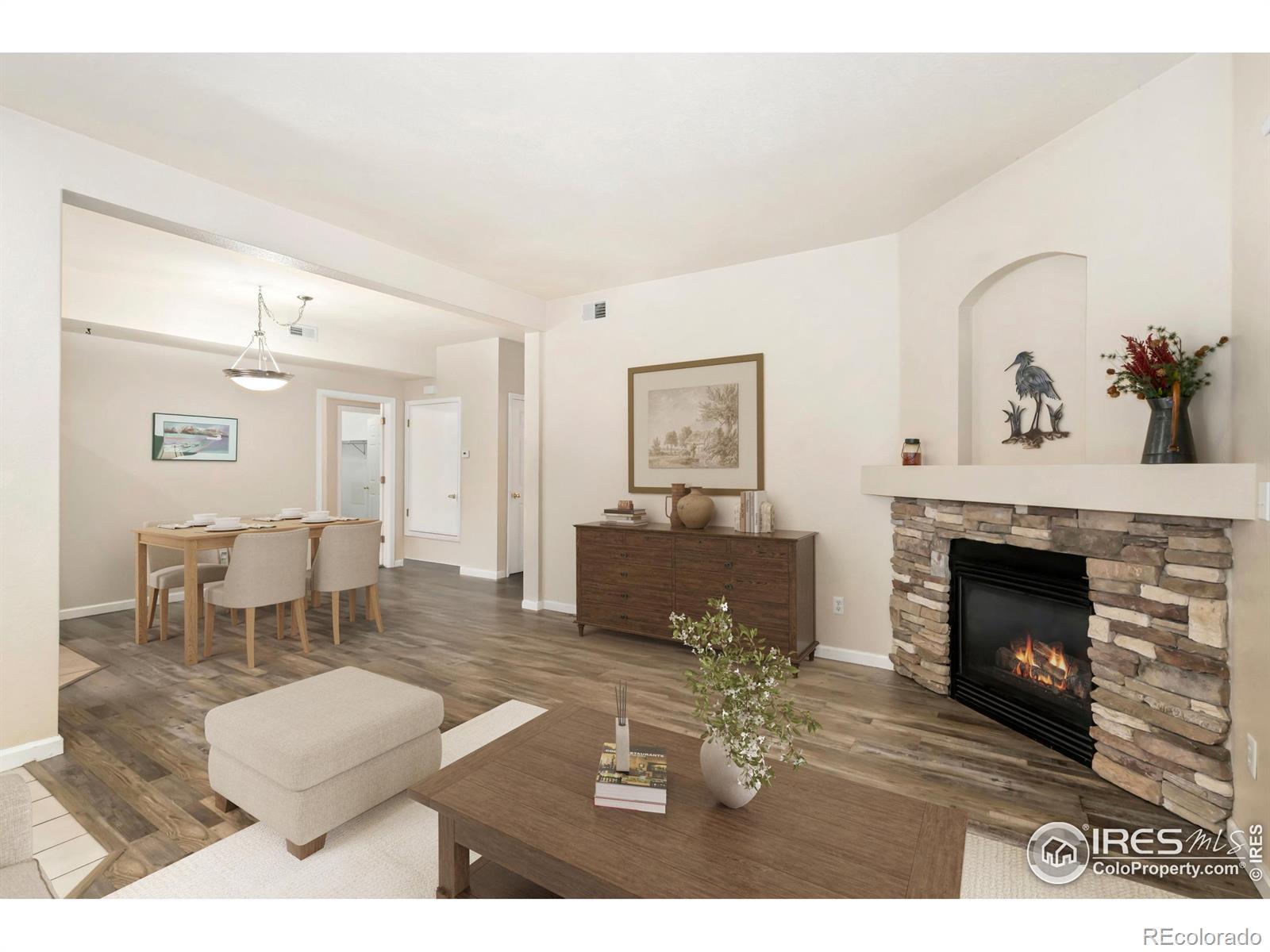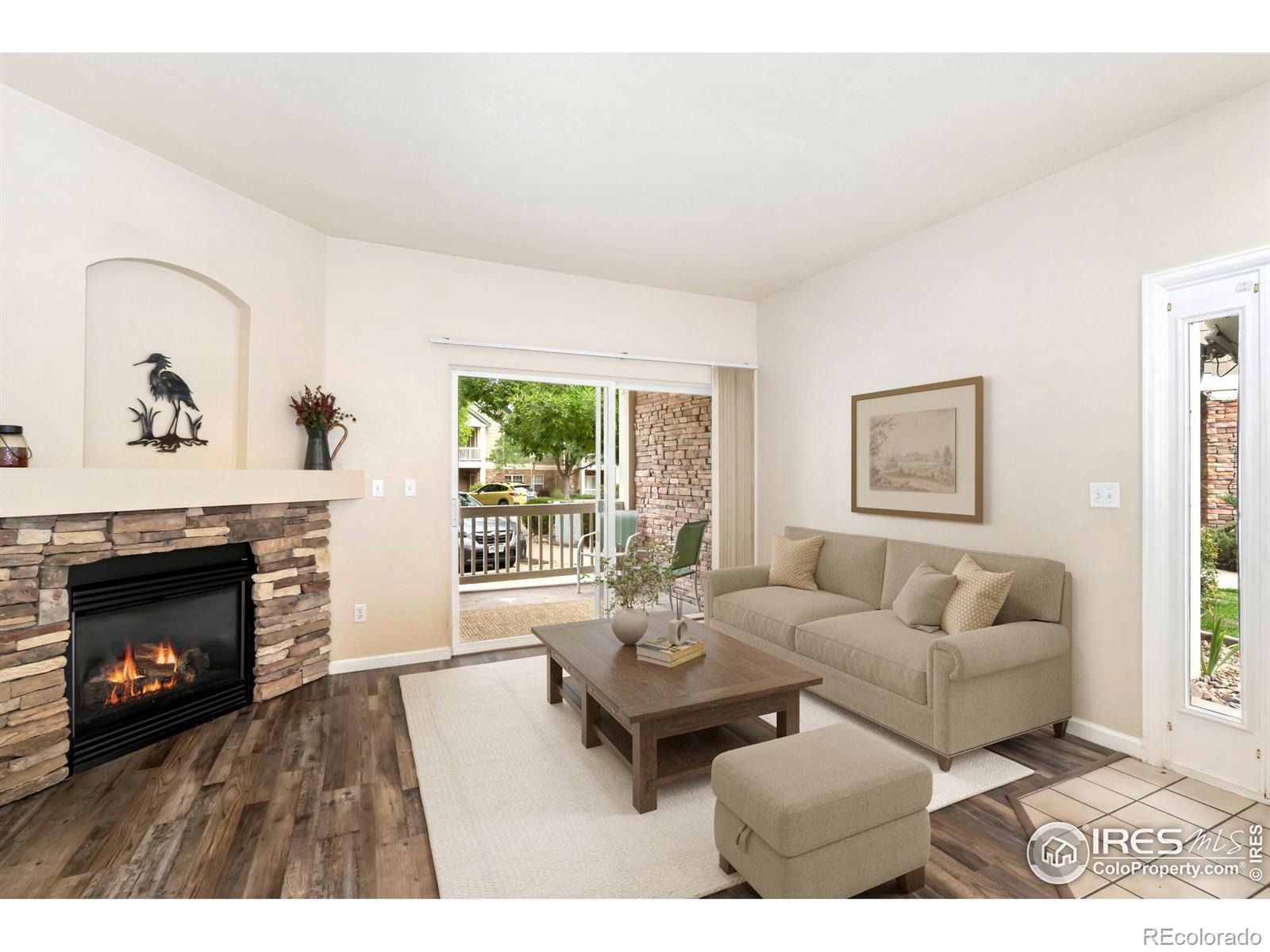 This main-floor condo in southeast Fort Collins' Willow Springs neighborhood offers low-maintenance living with a welcoming layout and resort-style amenities. Featuring an open floor plan with 2-beds and 2-baths, step inside to the spacious living area that includes a gas fireplace centerpiece, filling the room with warmth and charm while leaving plenty of space to relax or entertain. Whip up your favorite meals in the kitchen that is designed with wraparound counters and equipped with modern appliances. The spacious primary suite includes a walk-in closet and a full ensuite with dual sinks, while the secondary bedroom offers versatility for guests or a home office. The covered patio is perfect for enjoying fresh air while overlooking the beautifully maintained community surroundings. This home includes a 1-car detached garage, giving you secure parking and extra storage for your gear and essentials. The Willow Springs community delivers an impressive lineup of amenities-from a private pool and tennis courts to walking trails, lush green spaces, and even a lake. There's also a playground, all impeccably cared for by the HOA, so you can simply enjoy the lock-and leave lifestyle. With shopping and dining close by, plus quick access to Old Town and CSU, you'll also love how easy it is to connect to the best of Fort Collins.