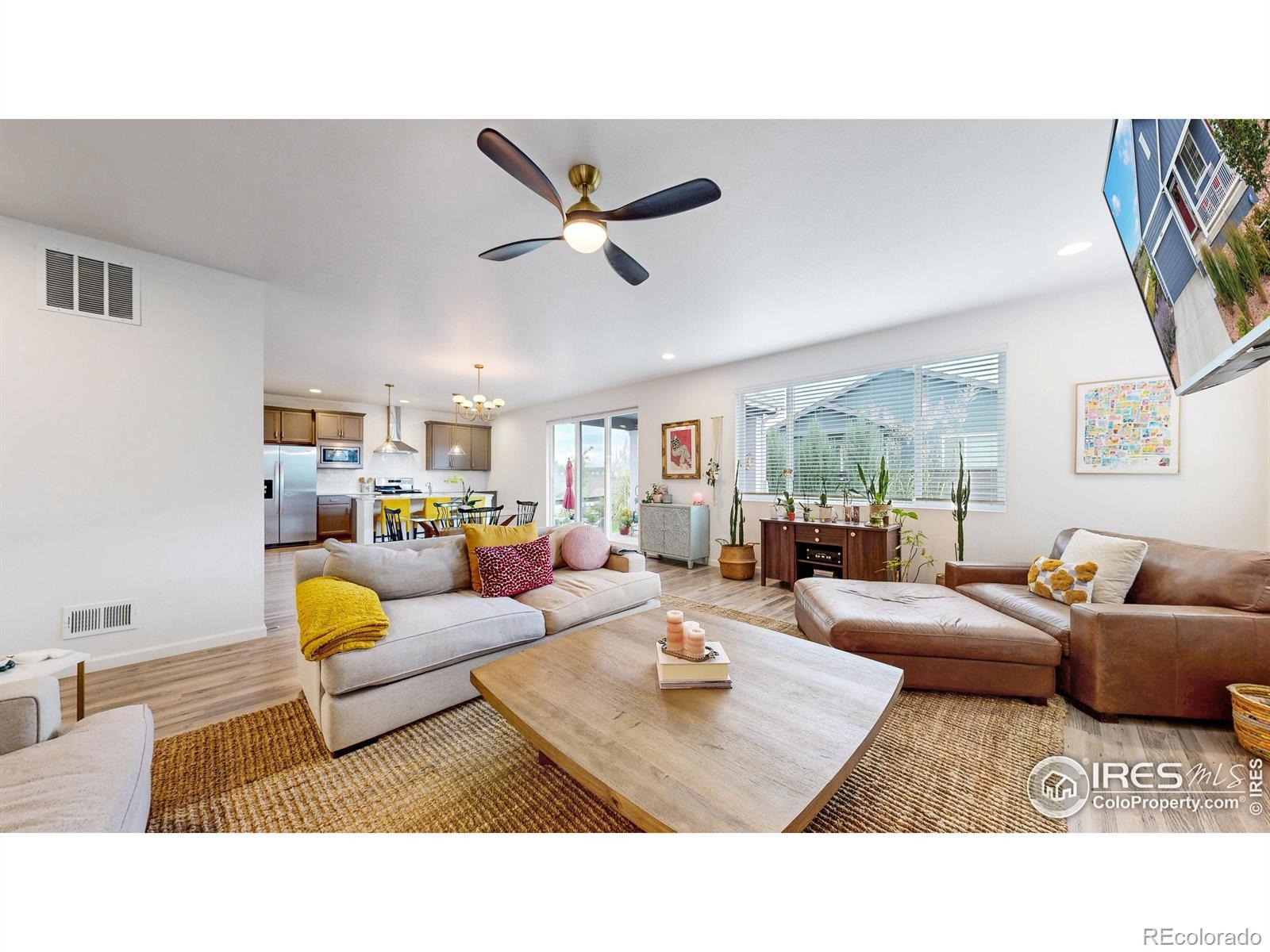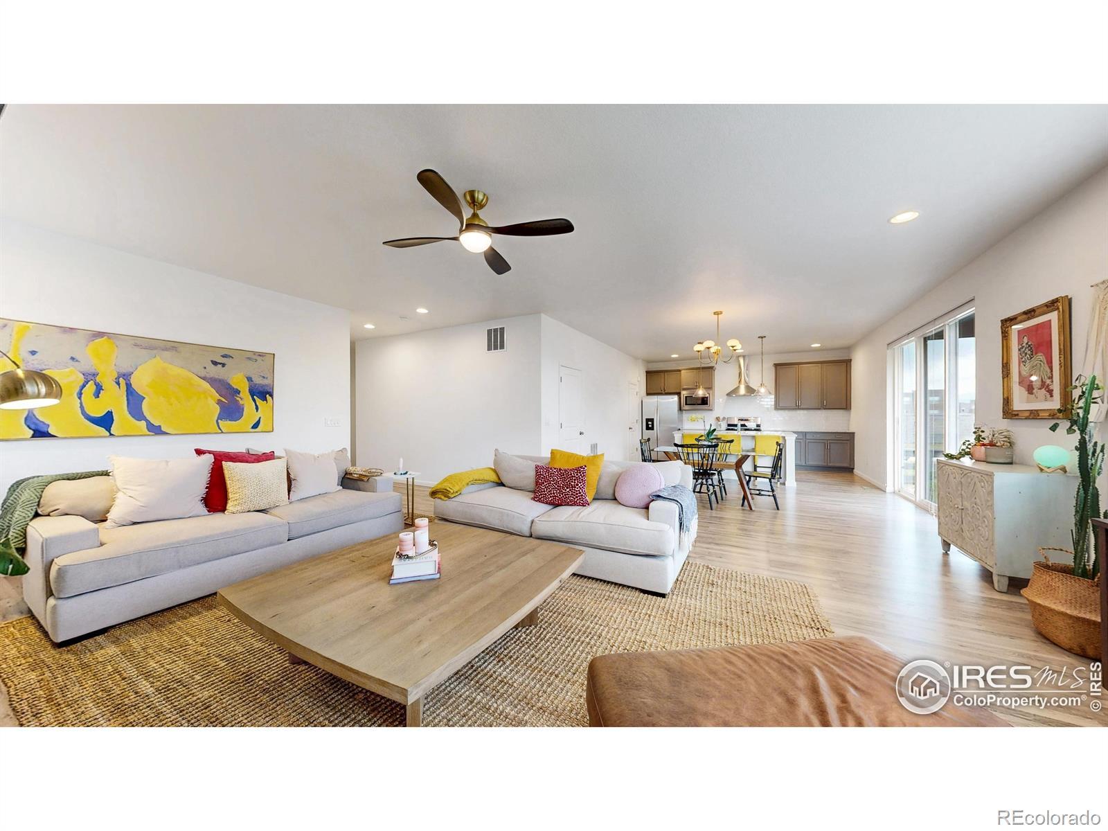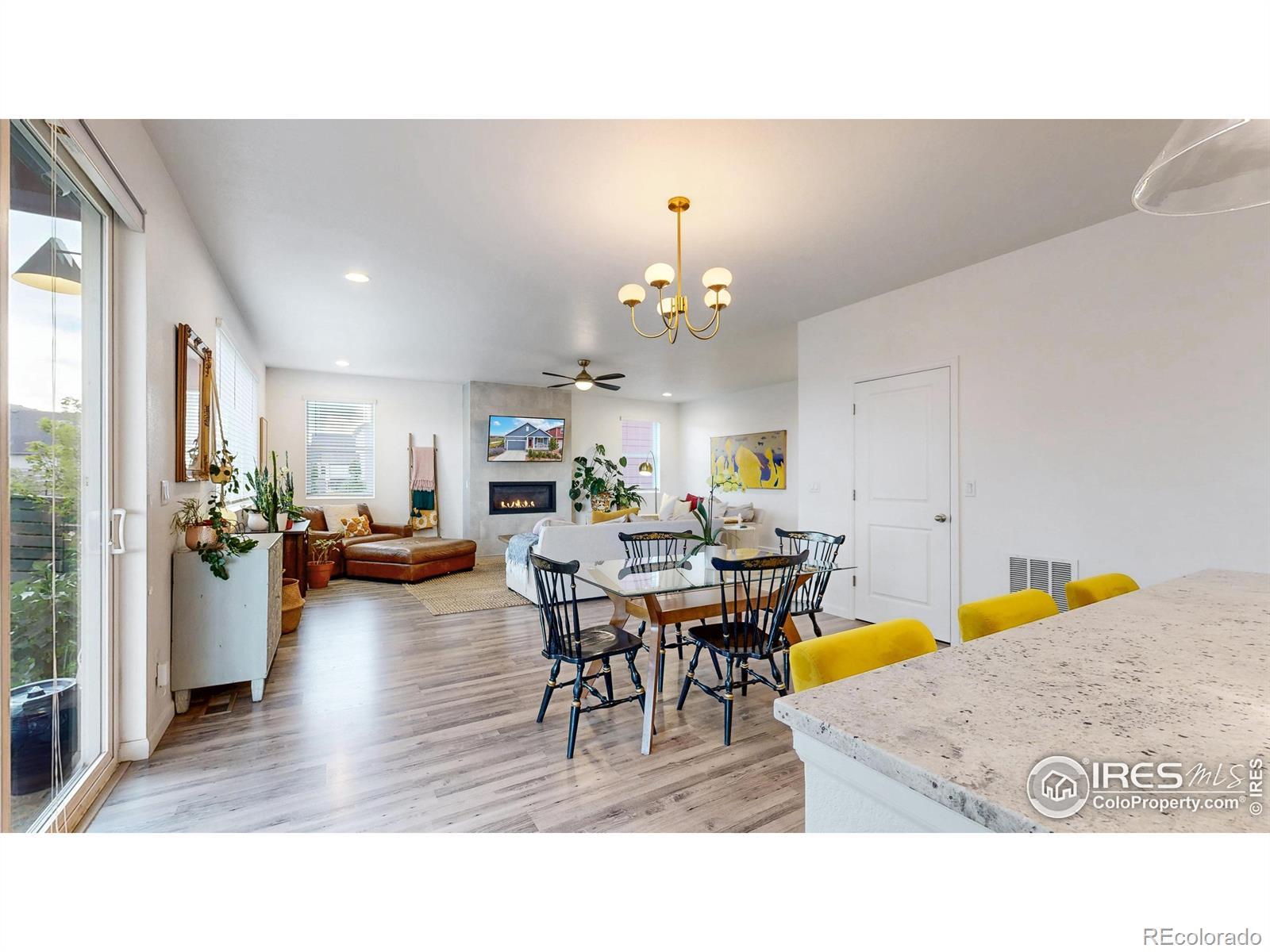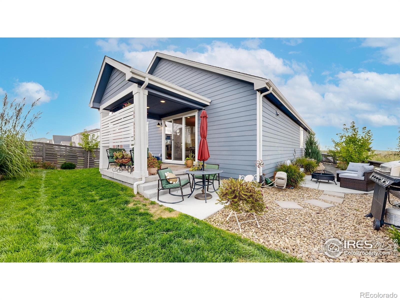 This better than new 2023 ranch-style home is perfectly positioned at the end of a quiet street with no neighbor on one side, giving you extra privacy and open views you won't find elsewhere. The beautifully landscaped backyard features multiple areas to entertain, including a covered patio, where you can enjoy the incredible Colorado sunsets and clear views of Longs Peak. Inside, the open-concept layout features luxury vinyl plank flooring, a cozy gas fireplace, and numerous stylish custom features throughout. Great location within Loveland near shopping, restaurants, movie theater, and more. Living in award-winning Kinston means you're just a short stroll to The Hub, where you can grab morning coffee, craft cocktails, and a casual bite, or take advantage of the private community area for Kinston homeowners . With its unbeatable location, modern features, and gorgeous mountain views, this home has much to offer. Schedule a showing today!