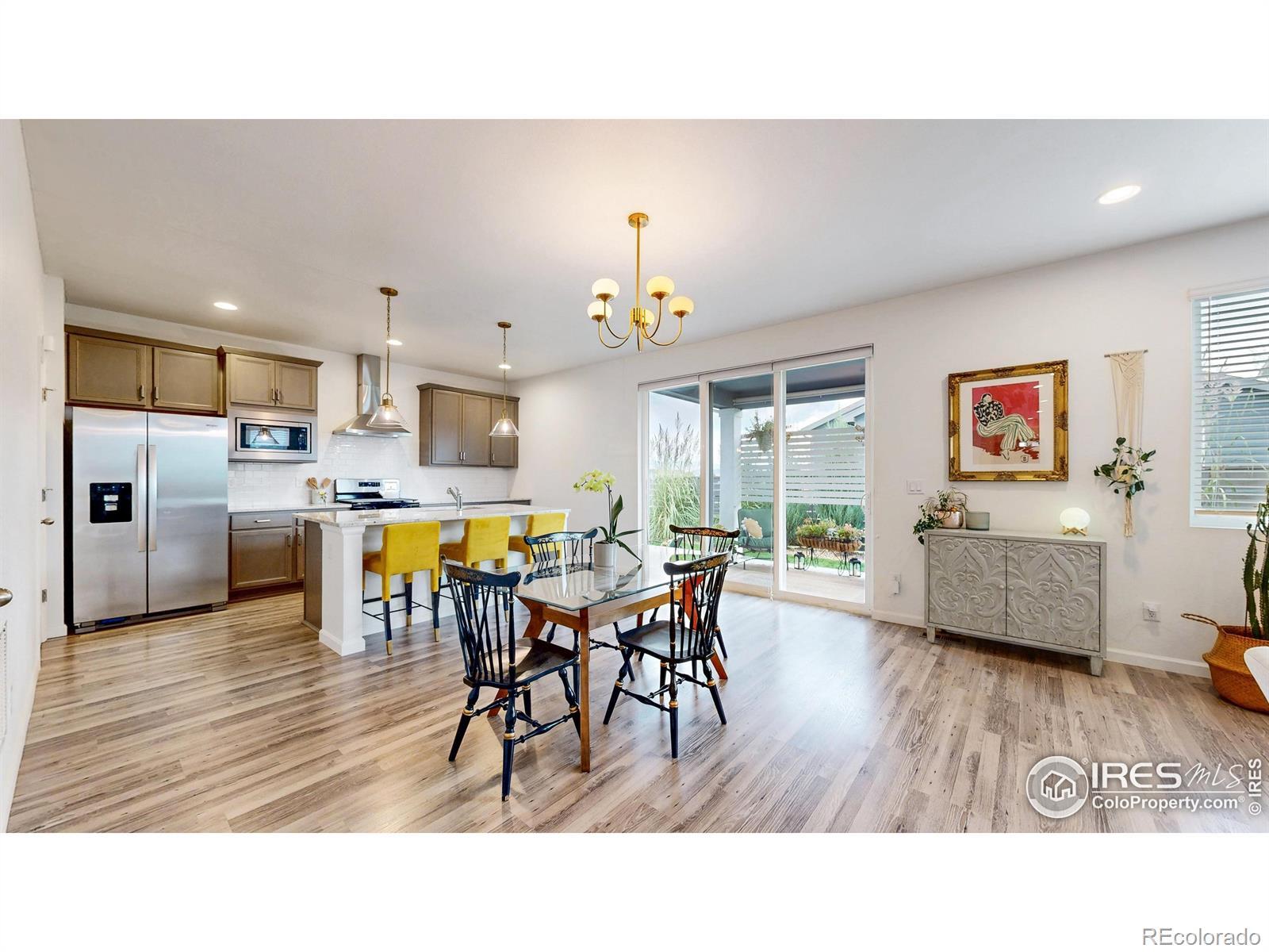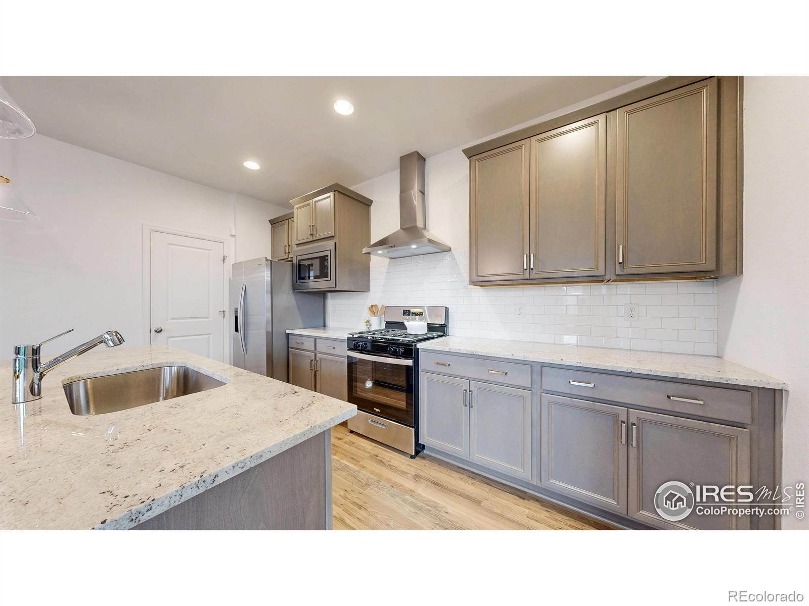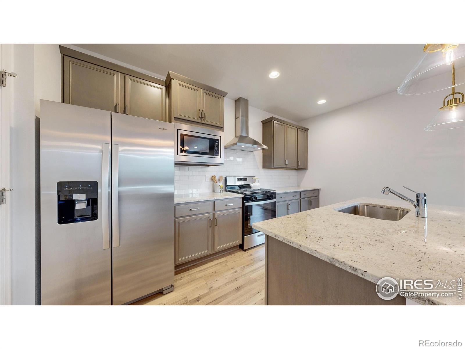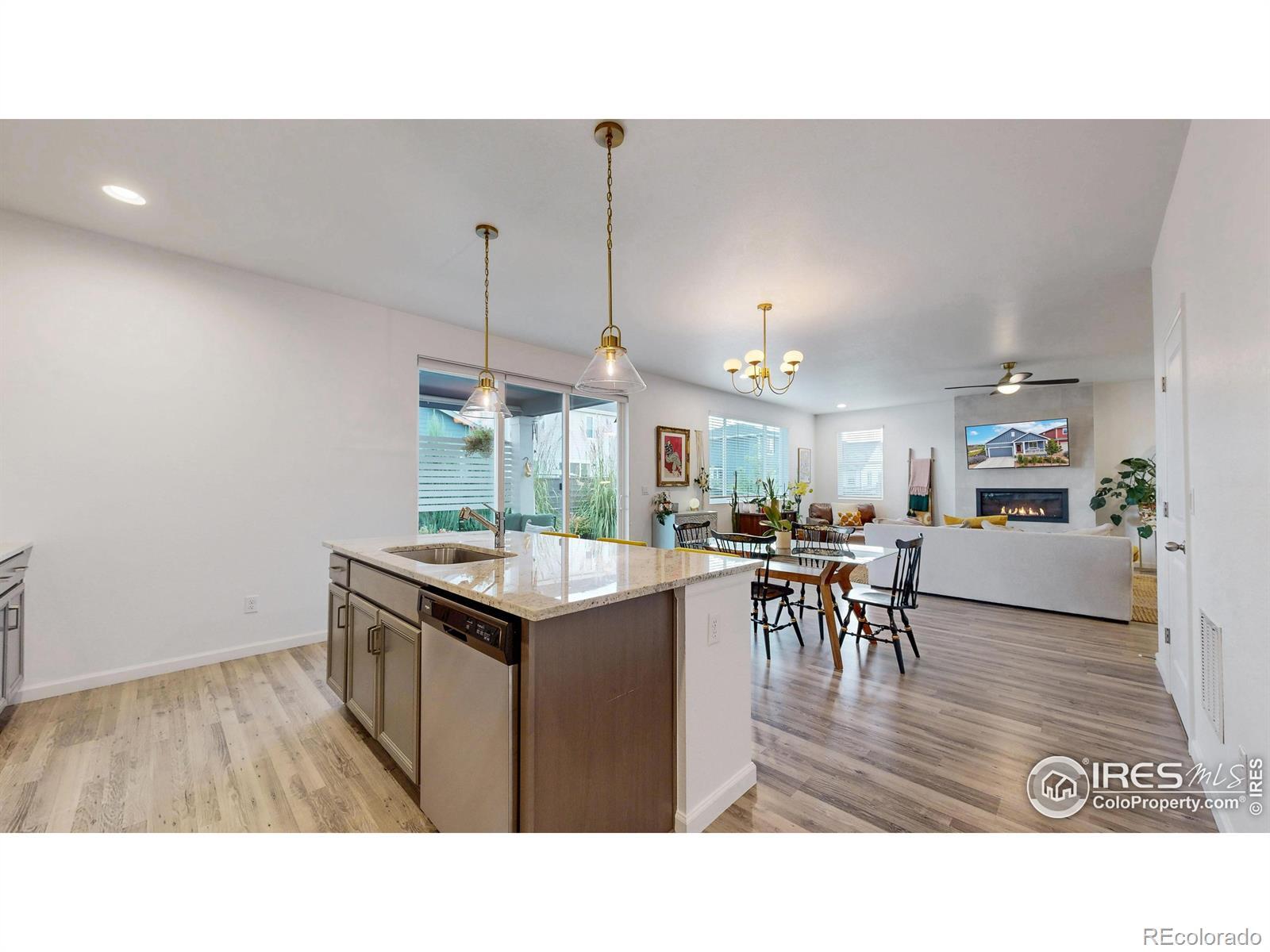 This better than new 2023 ranch-style home is perfectly positioned at the end of a quiet street with no neighbor on one side, giving you extra privacy and open views you won't find elsewhere. The beautifully landscaped backyard features multiple areas to entertain, including a covered patio, where you can enjoy the incredible Colorado sunsets and clear views of Longs Peak. Inside, the open-concept layout features luxury vinyl plank flooring, a cozy gas fireplace, and numerous stylish custom features throughout. Great location within Loveland near shopping, restaurants, movie theater, and more. Living in award-winning Kinston means you're just a short stroll to The Hub, where you can grab morning coffee, craft cocktails, and a casual bite, or take advantage of the private community area for Kinston homeowners . With its unbeatable location, modern features, and gorgeous mountain views, this home has much to offer. Schedule a showing today!
