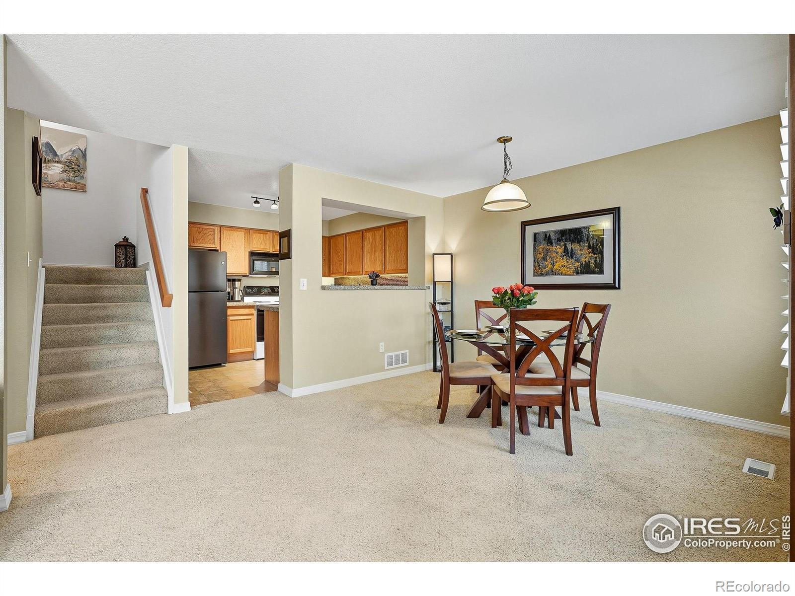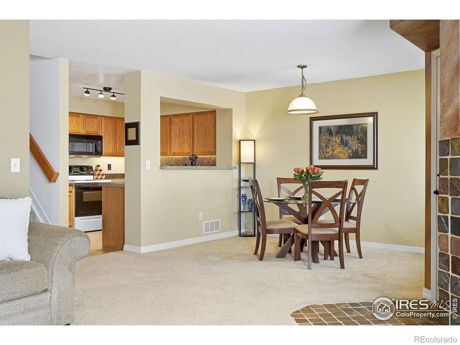 Welcome to 13215 Holly Street Unit E in Thornton Colorado. This beautifully maintained 2-bed, 2.5-bath townhome offering 1,870 sq ft of comfortable and functional living in a private, tree-lined setting. The open, light-filled floor plan features a spacious kitchen with granite counters, breakfast bar, and an inviting eat-in space. Relax by the cozy gas fireplace or venture out to the serene patio-perfect for morning coffee or a charming container garden. Upstairs, the airy primary suite boasts vaulted ceilings, an oversized walk-in closet, and abundant natural light, while the generous secondary bedroom includes its own en-suite bath for ultimate privacy. An unfinished basement provides ample storage or room to expand. Tucked in a quiet corner of the community, this home offers peaceful views and low-maintenance living, all in a desirable Thornton location.