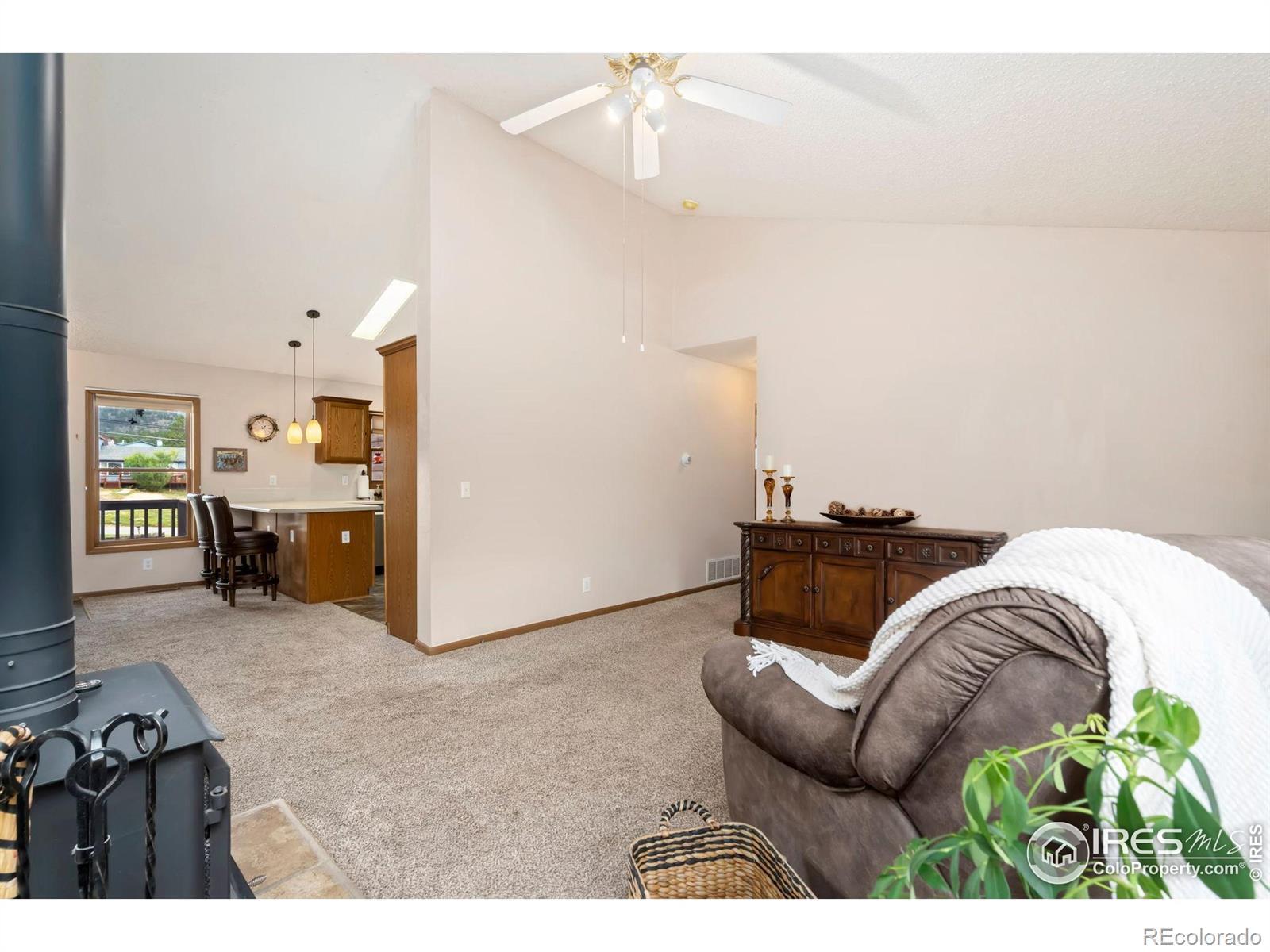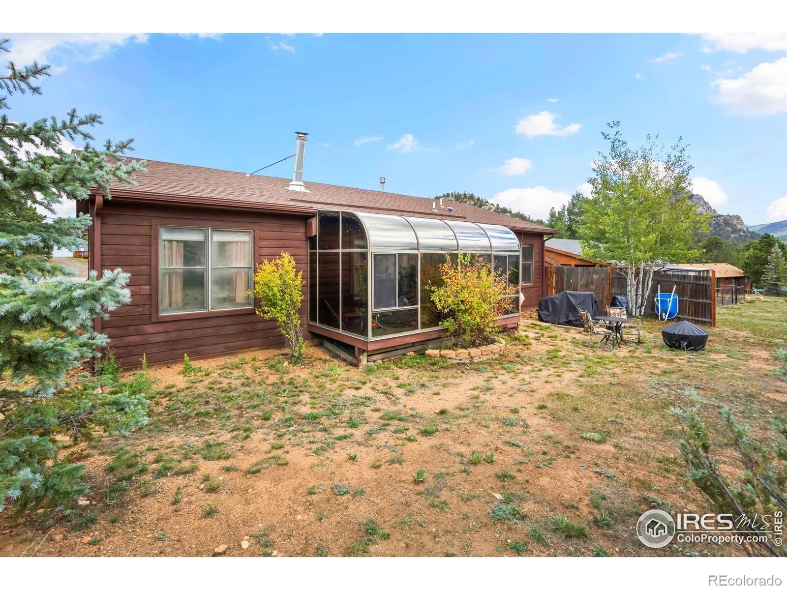 Experience the ease of single level living in this beautifully maintained 3-bedroom, 2-bath home, ideally located on nearly half an acre in picturesque Estes Park. The open-concept kitchen flows effortlessly into the dining and living areas, creating a perfect space for both everyday living and entertaining. Stay cozy through the winter with a brand new wood-burning stove. The spacious primary suite includes a private en-suite bath, while two additional bedrooms share a full bathroom. A dedicated laundry area adds convenience, and the oversized two-car garage offers ample space for vehicles, storage, or a workshop. A bright and airy sunroom adds bonus living space and provides passive solar warmth, making it a favorite spot to relax.