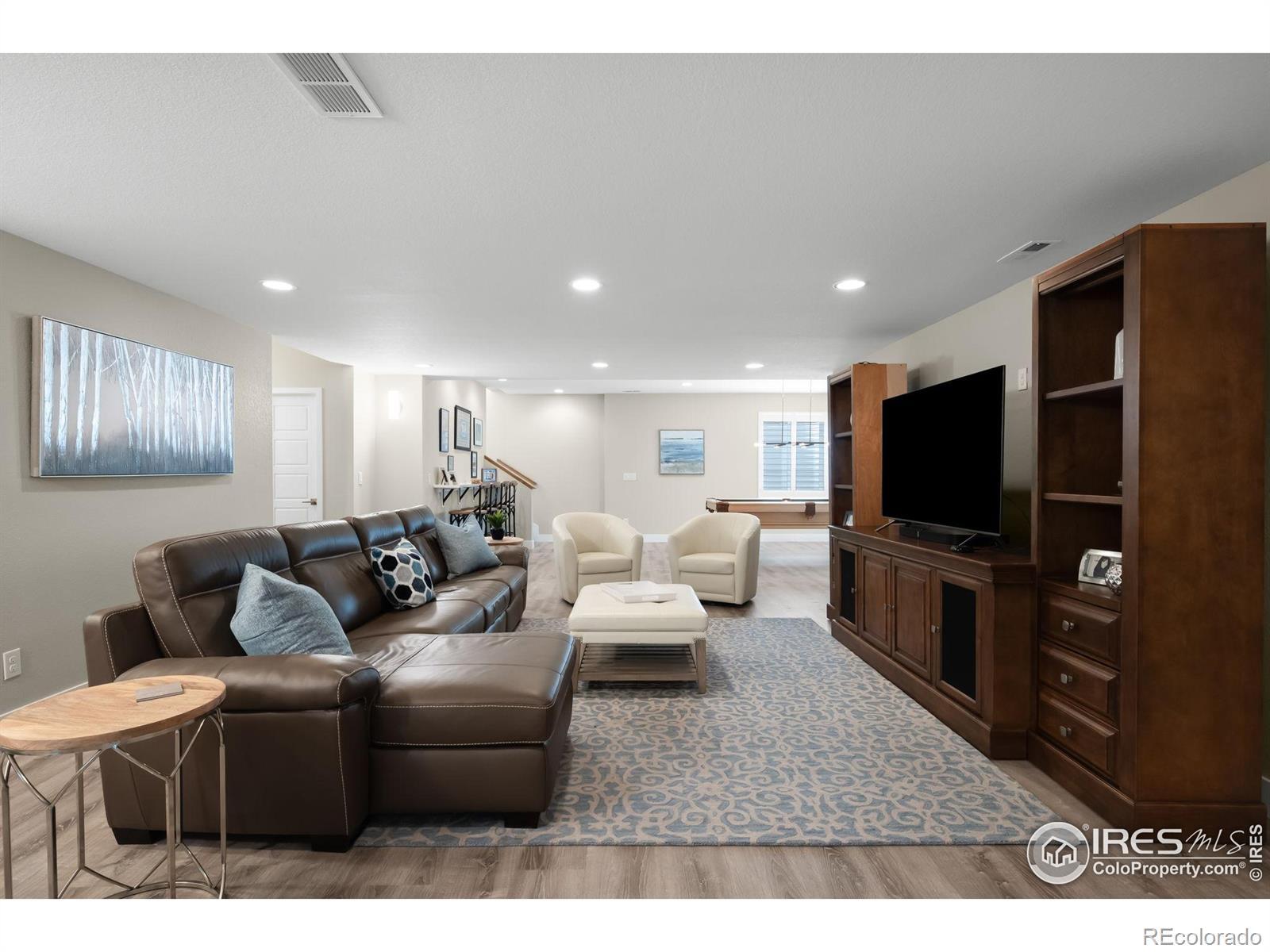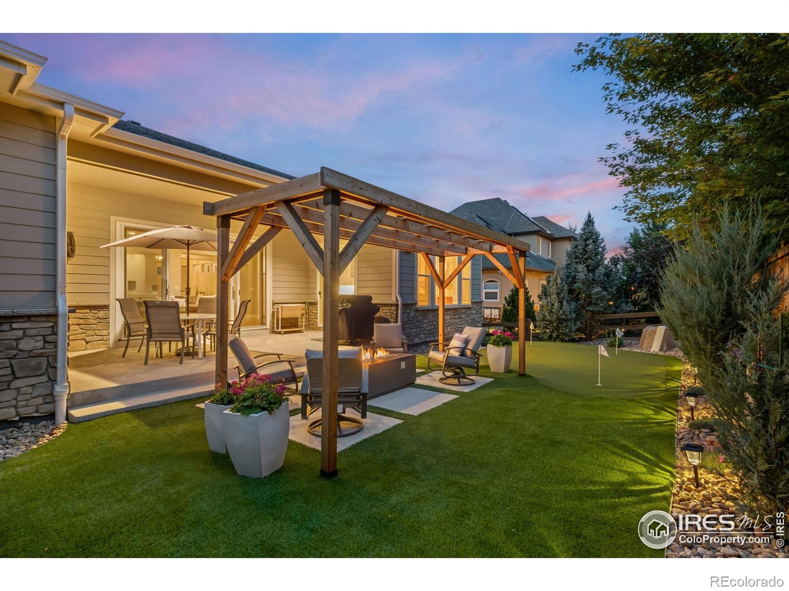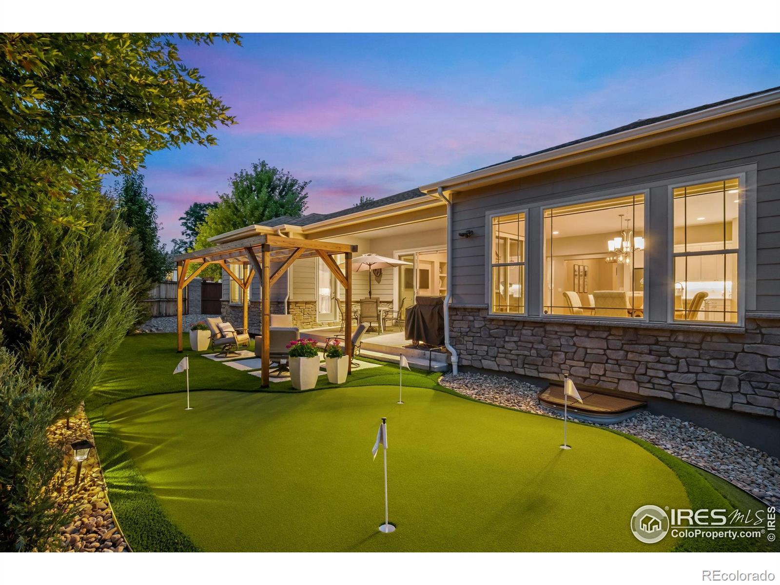 Golden Ranch Retreat - Modern Elegance Meets Colorado Living. This custom ranch-style home in Golden reflects simple elegance and the best of Colorado's indoor-outdoor lifestyle. With no special taxing district and an unbeatable location near Van Bibber Open Space, downtown Denver, and the foothills, every convenience and adventure is just minutes away. Rolling Hills Country Club and West Woods Golf Course are close by, as are miles of road bike and walking trails. Step inside to soaring 10-foot ceilings, 9-foot doors, and rich maple floors that set the tone for timeless design. The chef's kitchen is a true centerpiece-featuring a fully extended quartz island, Bosch appliances, electric cooktop (plumbed for gas), and generous seating whether entertaining dozens or dining for two. An elegant entry, dual sliding glass doors, and thoughtful flow bring the outdoors in at every turn. The covered patio, pergola lounge, putting green, and low-maintenance landscaping make this home perfect for both lock-and-leave ease or long summer evenings under the stars. The primary suite offers patio access and a spa-like bath with a soaking tub, custom shower, and designer cabinetry. Downstairs, the finished basement was built for entertaining with a spacious rec room, wet bar, pool table/game space, and study nook, along with additional bedrooms, flex/exercise space, and a full bath. A 3-car finished garage with epoxy floors, dual-zone HVAC, whole-house surge protector, Hardy Board siding, and professional landscaping are just a few of the many thoughtful details. Pride of ownership shows in every custom feature-shade store remote roller shades, split-rail shutters, and modern finishes throughout. This home embodies the perfect balance of sophistication, comfort, and Colorado lifestyle.