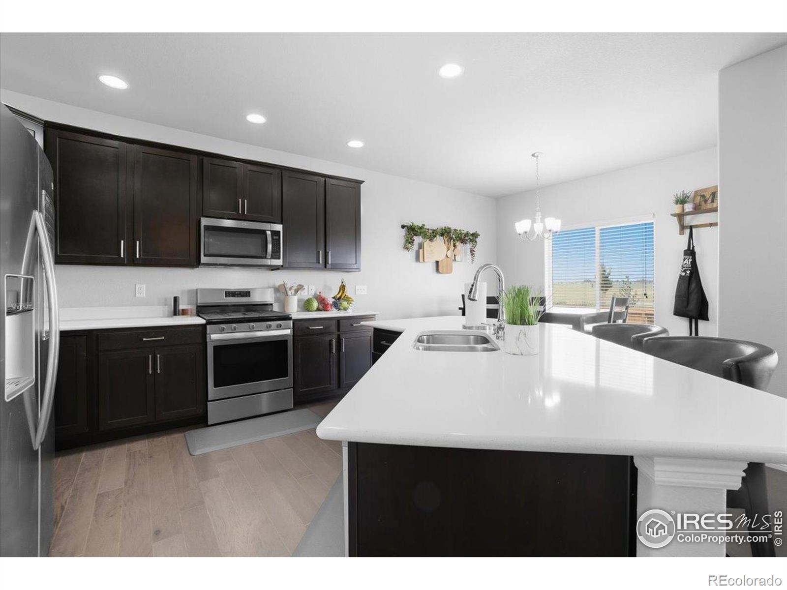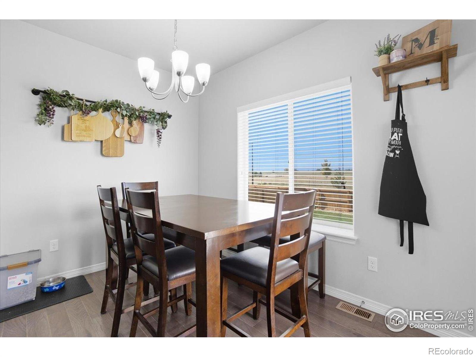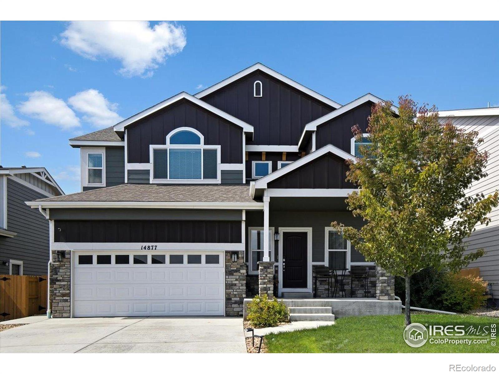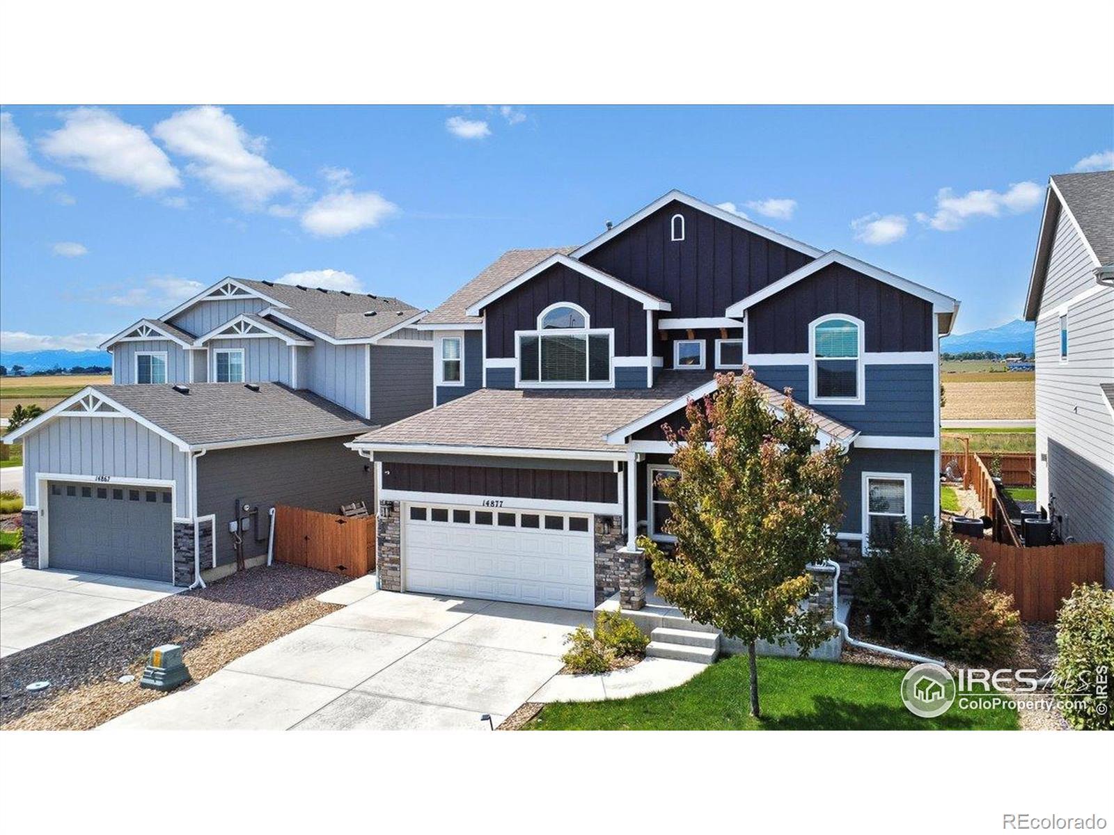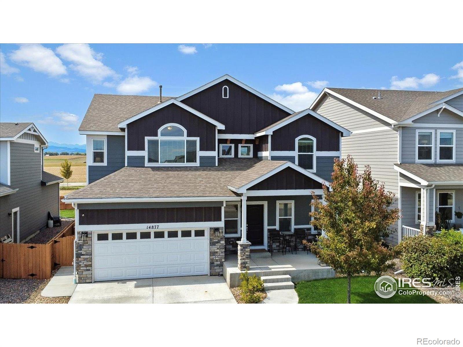 Situated on a prime lot, backing to unobstructed 180 degree mountain views, this former Model Home offers extensive builder upgrades. From the moment you arrive, you'll notice the inviting curb appeal with its well-kept landscaping and welcoming front entry. Inside, the entryway greets you with vaulted ceilings, and the open floor plan is filled with natural light, highlighting the spacious living areas. The kitchen serves as the heart of the home, featuring modern appliances, quartz counters, crown molding, ample cabinetry, and a large center island ideal for cooking and gatherings. The 5 burner gas cooktop, and engineered hardwoods, exemplify the tasteful upgrades that highlight the home. The primary suite provides a private retreat with a generously sized bedroom, DUAL closets including a walk-in closet, and a spacious 5 piece en-suite bath. Main floor office with double sliding barn doors, ideal for working from home or an additional living space. The fully finished basement includes a generously sized living area, two additional bedrooms, plus a bathroom. The backyard is a true highlight, offering incredible views and peace, a rarity at this price point. With its thoughtful layout, tasteful finishes, and excellent location near schools, parks, and easy access to I-25, this home is an incredible opportunity.