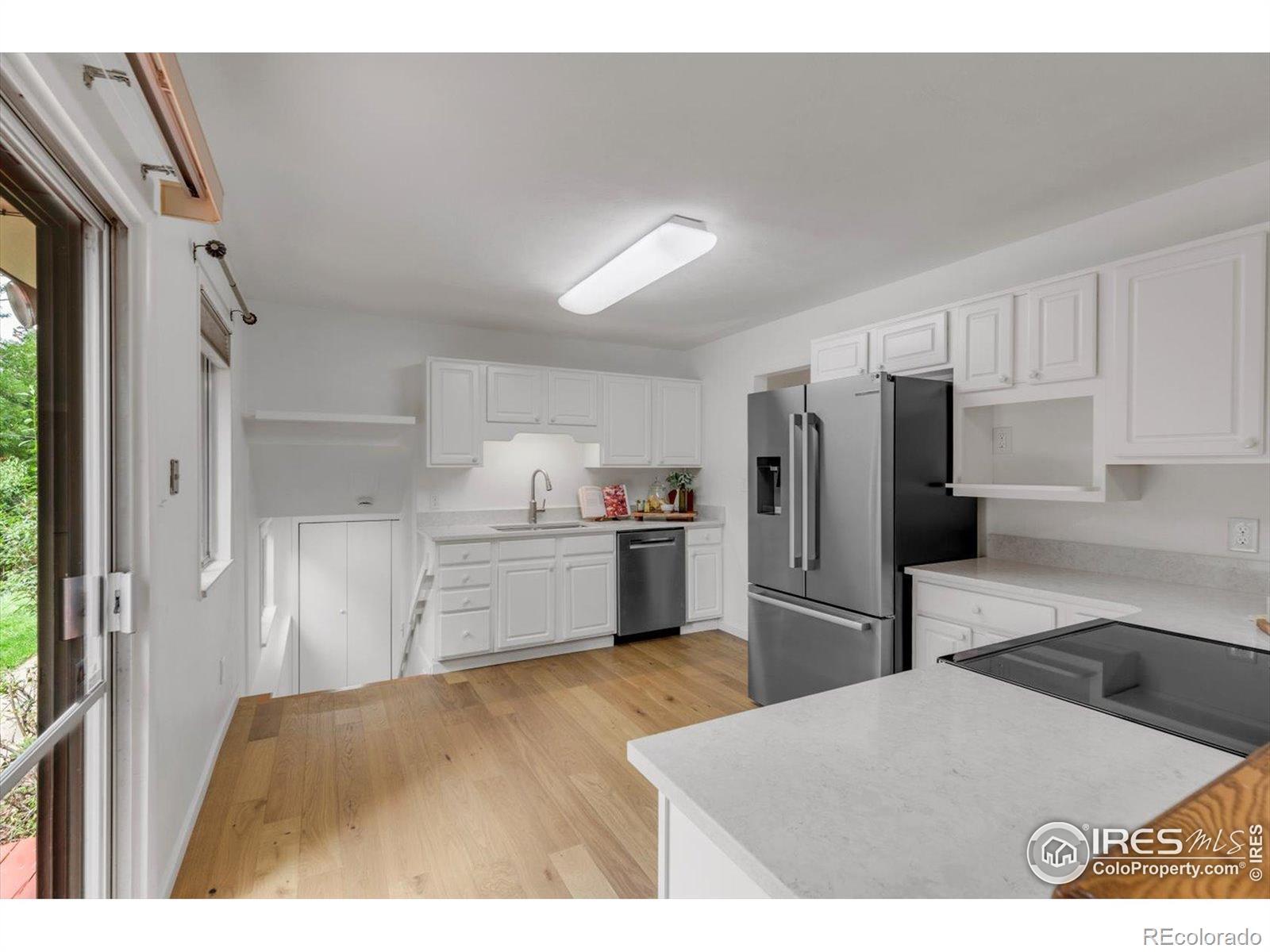 Wonderfully remodeled and well cared for home located on a large corner lot in South Boulder's coveted Table Mesa neighborhood! Tucked away on a quiet street, this beautifully updated residence is located within Colorado's highest-rated public school district with easy walk or bike access to all levels of K-12 schools, plus Whole Foods, King Soopers, restaurants, shopping, endless hiking and biking trails, and only a block away from Veile Lake and the soon to be remodeled South Boulder Rec Center. Step inside to find all-new engineered hardwood flooring and plush carpet throughout, complemented by a freshly painted interior and modern lighting. The remodeled kitchen shines with stunning quartz countertops, stainless steel appliances, and sliding doors that open to a spacious deck, perfect for entertaining or relaxing while taking in the breathtaking Bear Peak and Flatiron views.The private, fenced backyard is a serene retreat, complete with new sod and a sprinkler system for easy maintenance. Both bathrooms have been tastefully remodeled, featuring elegant granite topped vanities, tile flooring, and tile enclosures. With a roof and furnace both under 10 years old, there's nothing left to do, just move in and enjoy the best of Boulder living. This is a rare opportunity to own a truly turnkey home in this price range in one of Boulder's most desirable neighborhoods.