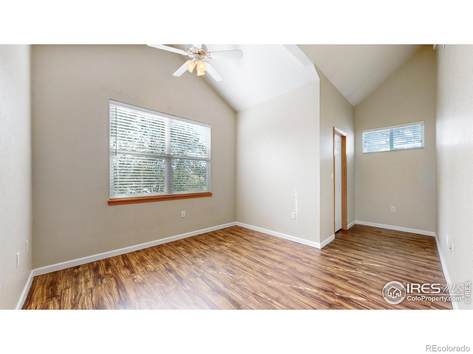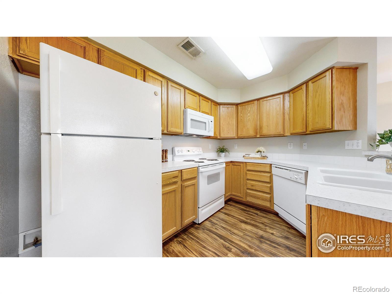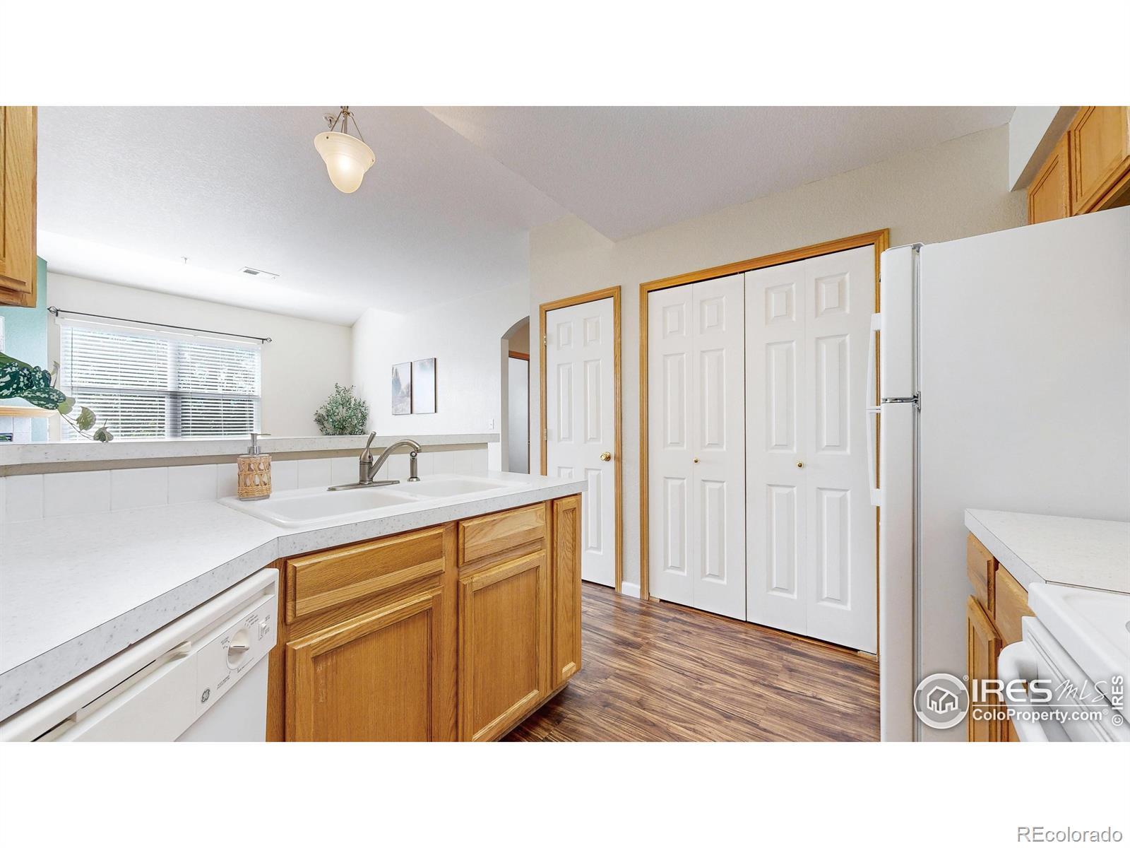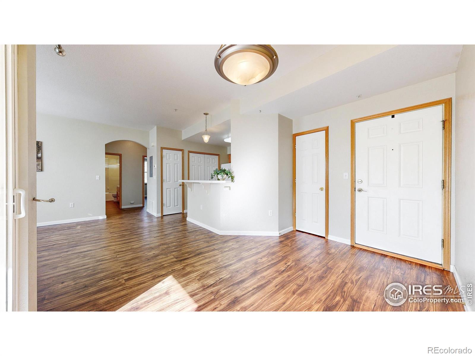 Welcome to this beautifully maintained second-floor condo in the highly sought-after Promontory community on Boardwalk Drive. This move-in-ready home offers a bright, open layout with vaulted ceilings and a cozy gas fireplace in the great room. Upgraded luxury vinyl plank flooring flows seamlessly throughout, adding a clean, modern touch. You'll love the spacious kitchen, complete with abundant counter space, generous storage, and a convenient pantry. The adjoining dining area opens to a private balcony-perfect for enjoying your morning coffee or evening unwind. Two roomy bedrooms and a full bath provide both comfort and functionality, while the attached one-car garage adds everyday convenience. Ideally located near Landings Park, shopping, dining, and outdoor recreation-with quick access to I-25 and Loveland-this condo offers low-maintenance living and outstanding value in one of Fort Collins' most desirable condo communities.