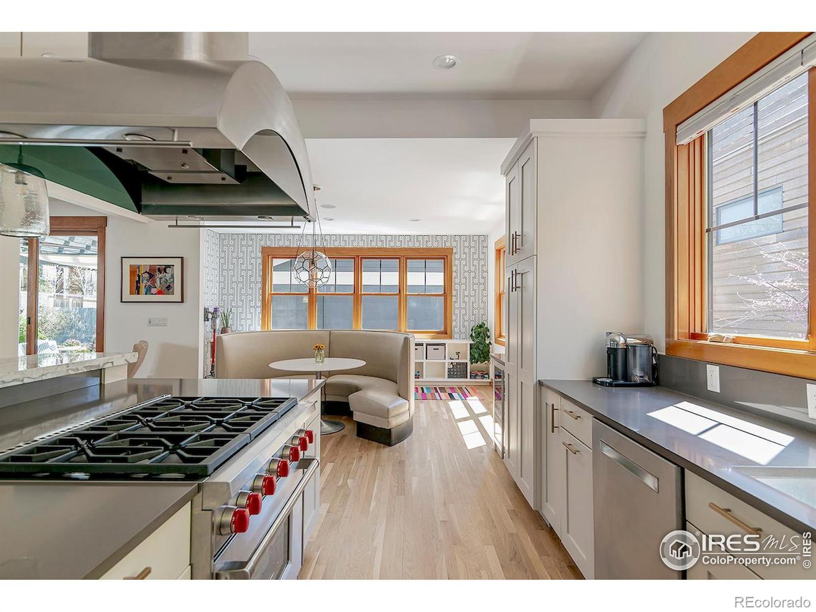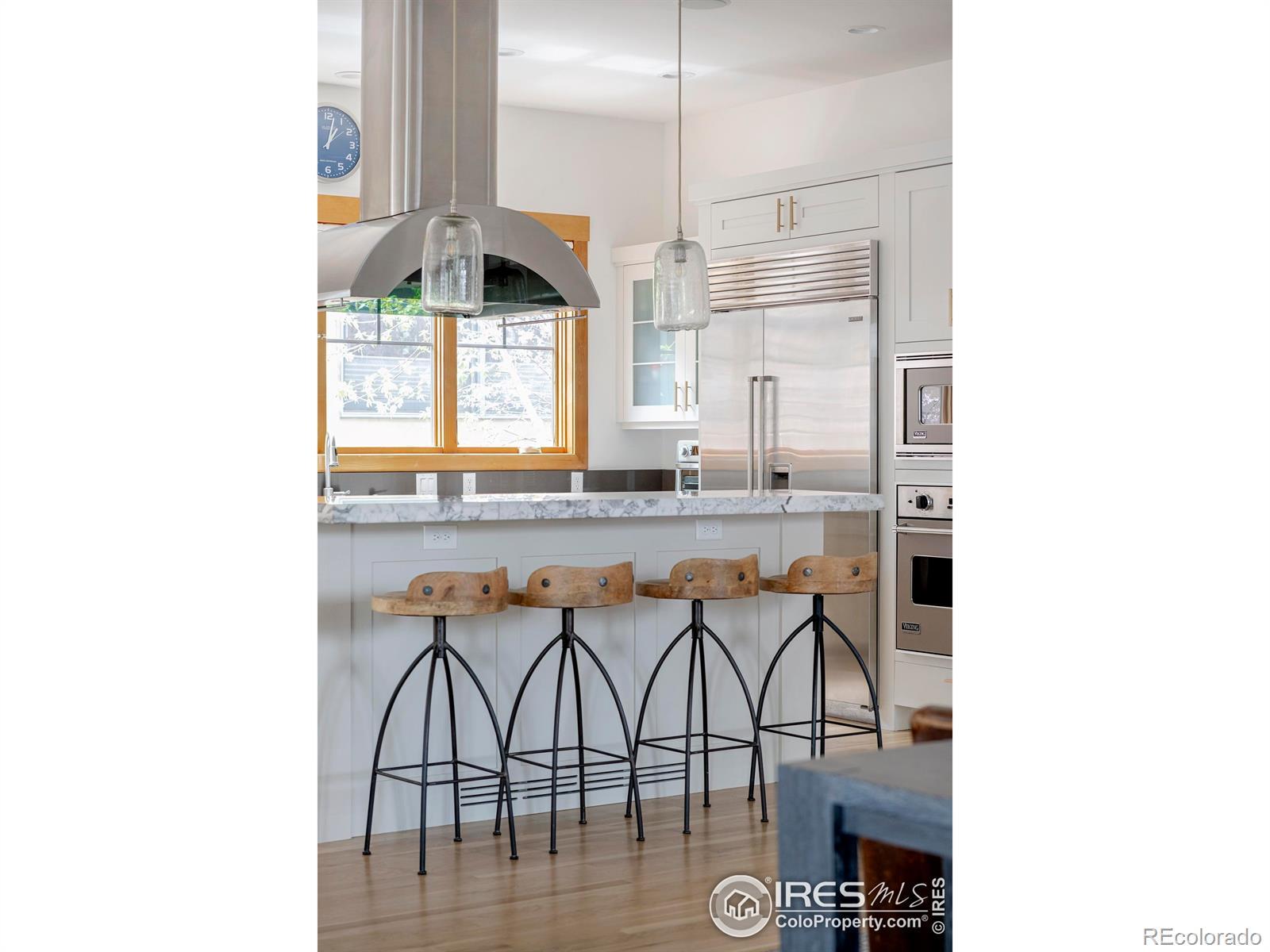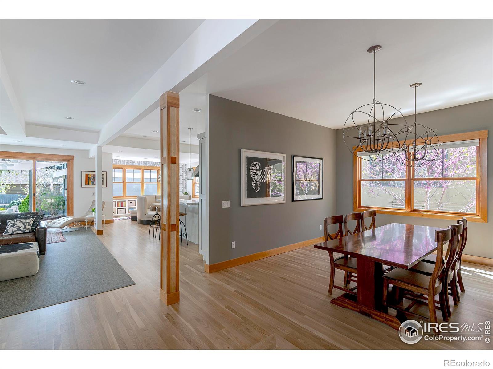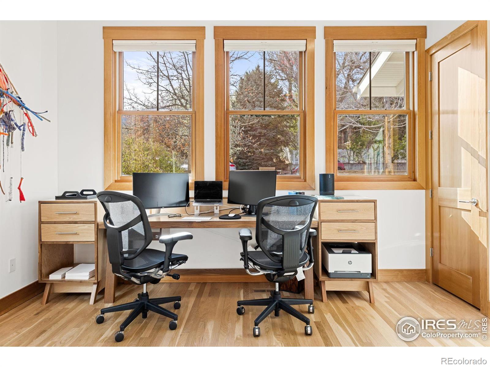 Welcome to 3080 7th Street, a beautifully reimagined modern Craftsman-style home nestled beneath a canopy of mature trees in Newlands, one of Boulder's most sought-after neighborhoods. Perfectly blending timeless architecture with contemporary sophistication, this home invites you in with its stone front surround and welcoming covered front porch. Step inside to discover light-filled interiors, clean lines, newly refinished hardwood white oak floors and thoughtful updates that speak to both style and function. The cooks kitchen is equipped with a Sub Zero refrigerator, Wolf range, Viking oven and Bosch dishwasher. The open concept allows for a true dining area, living room with a gas fireplace, plus a separate office for those that need some separation or work from home. The indoor/outdoor flow connects the spaces seamlessly through the large glass doors, inspiring so much more time outside in the very private and beautifully landscaped back yard. Don't miss the thoughtfully hidden hot tub that graciously blends in with the beautiful landscaping. Upstairs, you'll find 4 bedrooms, 3 bathrooms and the laundry room. The oversized primary suite offers a renovated 5 piece bathroom with a soaking tub and radiant heated floors. The 2nd bedroom suite offers an ensuite bathroom, and its own private terrace.The expansive finished basement with unusual 9.5" ft ceilings provides endless possibilities. With a kitchenette/wet bar including 2 mini fridges, a dishwasher, sink and plenty of cabinetry - this is the ultimate family room, work out out spot, ping pong tournament space or whatever you dream of. There is also a generous sized 5th bedroom, a full bathroom, a flex room, plus a 400 square foot unfinished space for storage, a workshop, art studio, or make your dream movie room.The neighborhood and location can't be beat - one block to North Boulder Park, moments the Goat Trail, Mt. Sanitas Trail, North Boulder Rec Center, Ideal Market Shopping Center and vibrant Pearl Street.