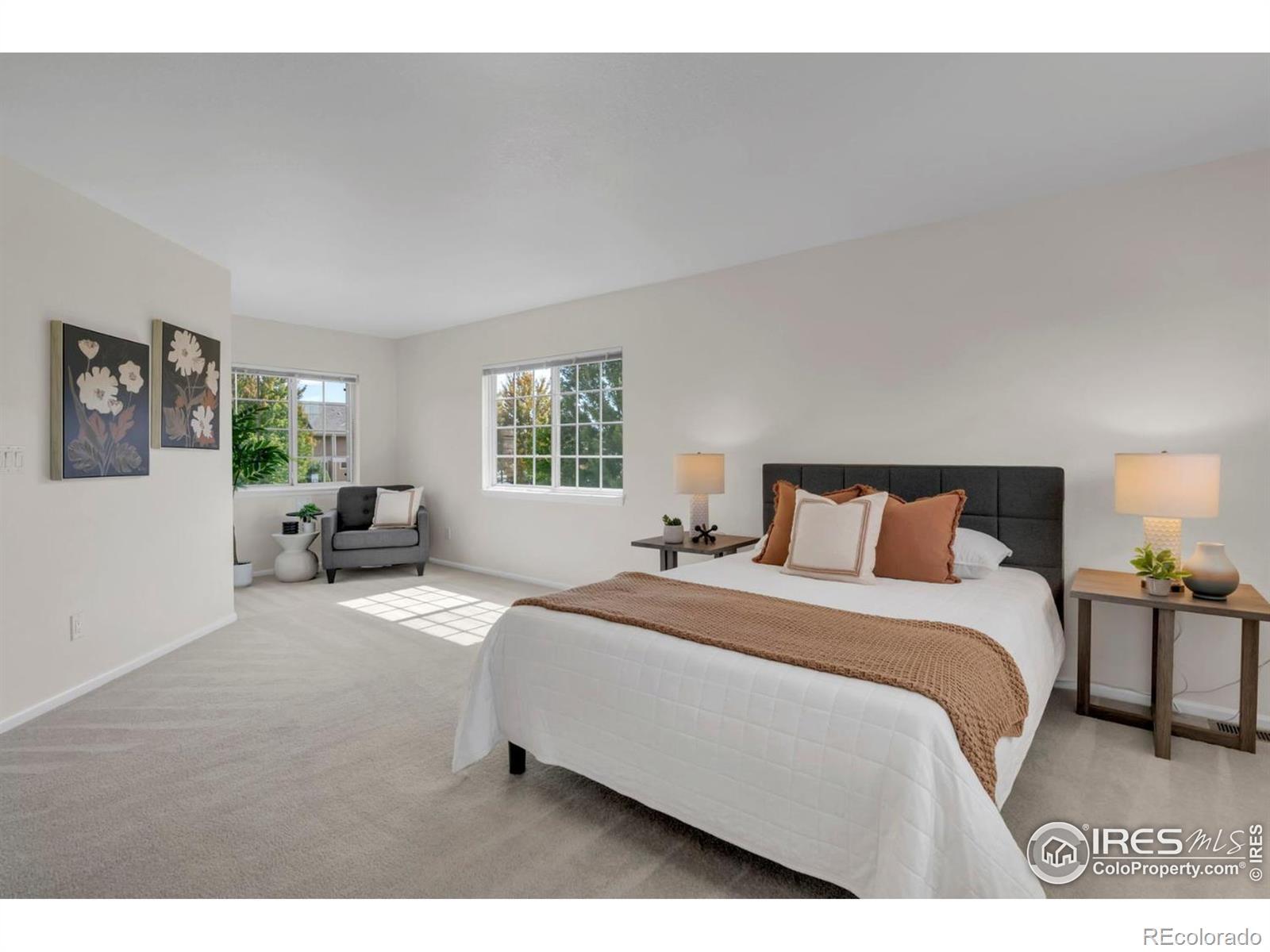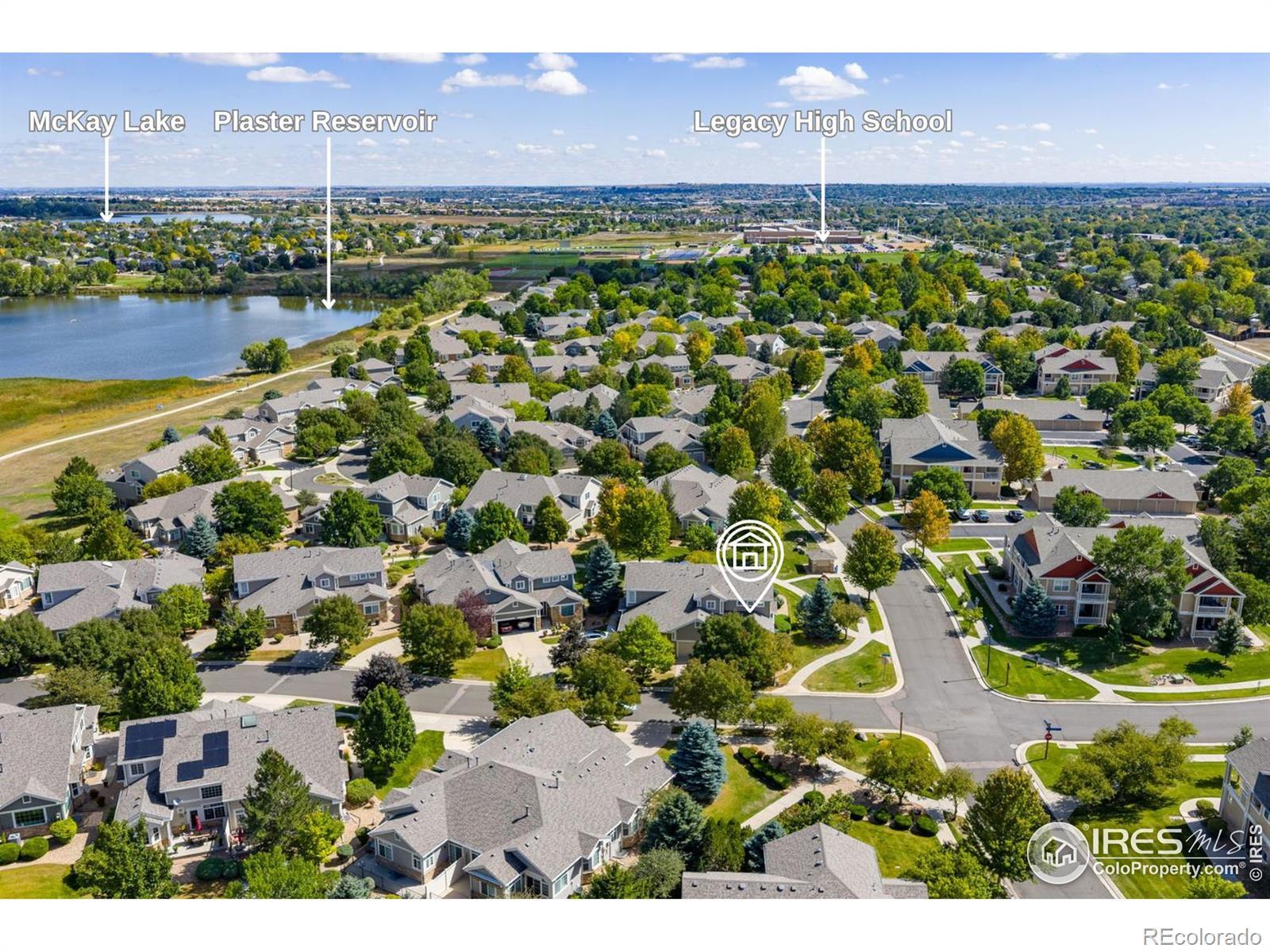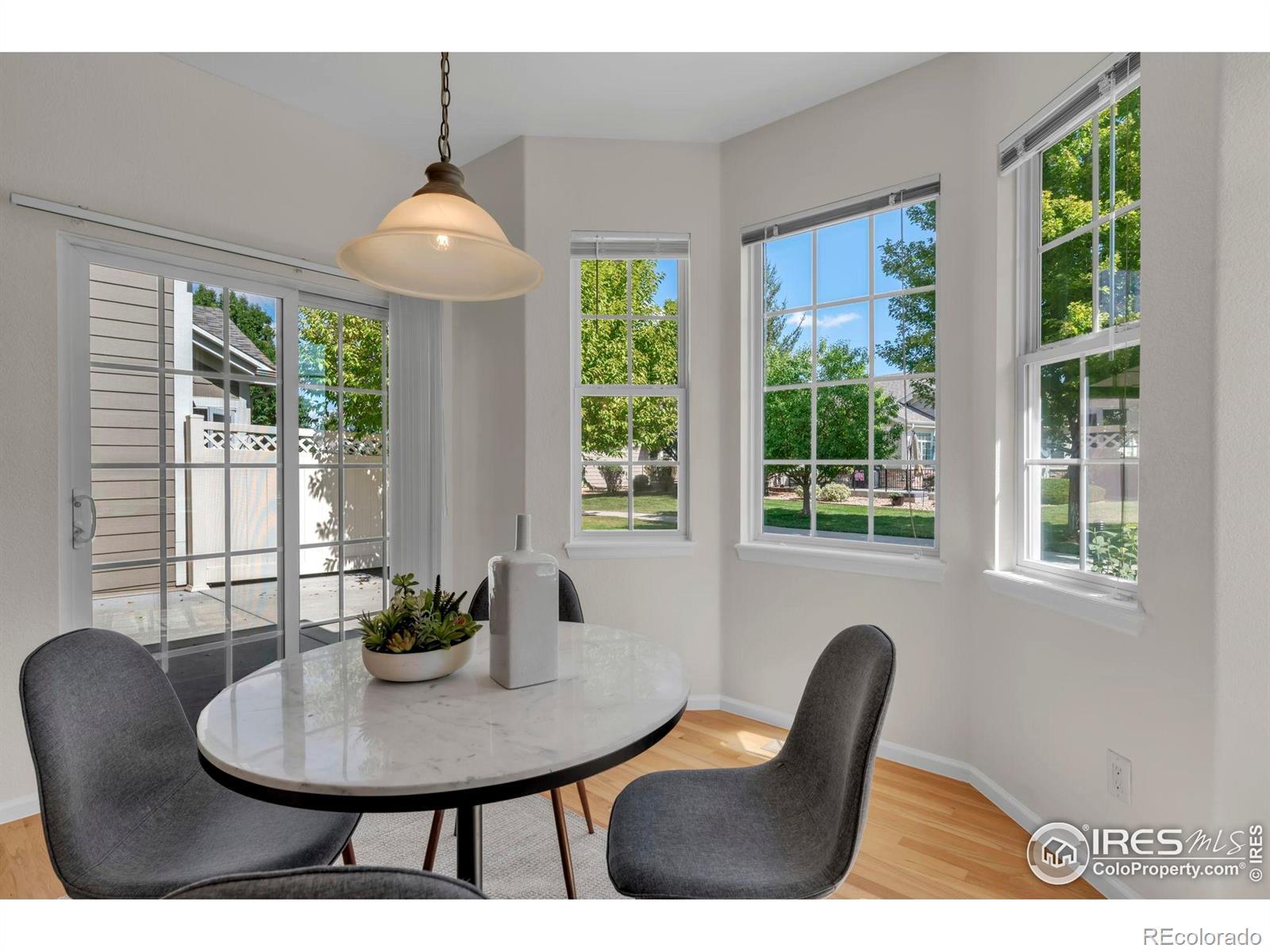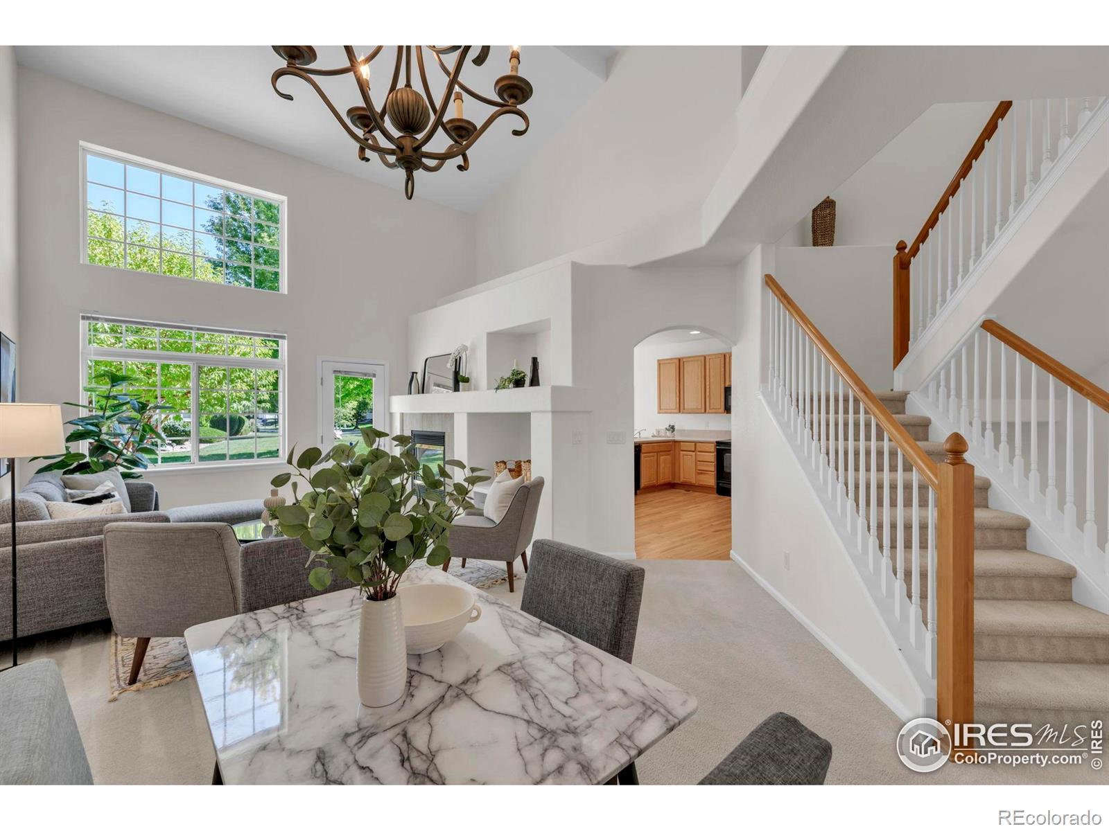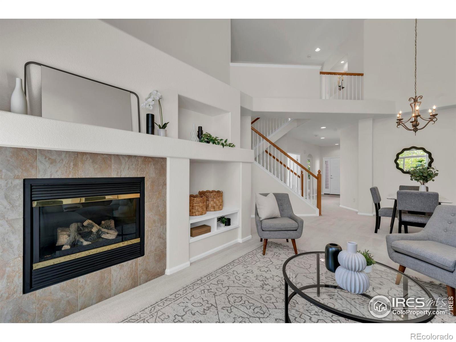 Located on a corner lot in the Broadlands community, this 3-bed, 2 bath townhome features a bright, open layout with fresh interior paint and brand-new mechanicals, making it move-in ready. The main level offers a dining room and a living room with soaring ceilings, anchored by a cozy fireplace and access to the back patio. The kitchen provides ample cabinetry, generous counter space, a pantry, and a sliding door to the patio. An adjoining breakfast nook, surrounded by windows, overlooks the community walking path. Also on this level are two versatile bedrooms, one ideal as a home office, along with a full bath and a convenient laundry/mudroom leading to the two-car garage. Upstairs, the spacious primary suite serves as a private retreat with an en-suite bath and walk-in closet. Over 1,300 square feet of unfinished basement space offers excellent potential for future expansion. The community amenities include an extensive network of walking trails around Plaster Reservoir, while golf enthusiasts will appreciate the proximity to Broadlands Golf Course. HOA dues provide access to the activities center, indoor and outdoor swimming pools, clubhouse, and fitness facility. With low-maintenance living in a central Broomfield location, this property also offers easy access to trails, Plaster Reservoir, the Paul Derda Rec Center, Broomfield Commons, FlatIron Crossing, Whole Foods, and The Orchard Town Center.