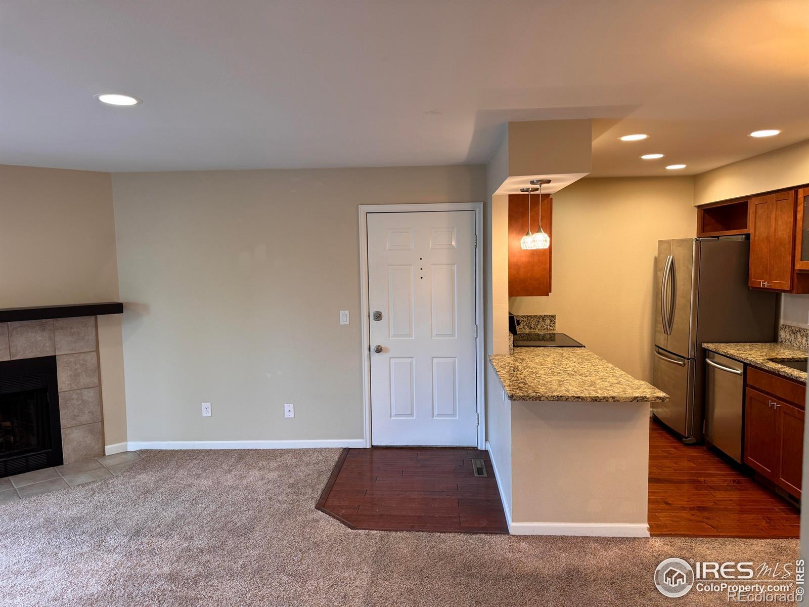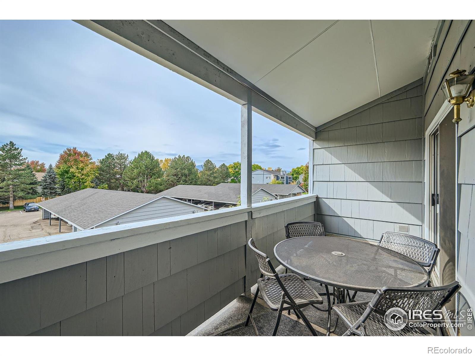 Top floor corner unit facing Southwest w/ Front Range Mountain views. Quiet, no footsteps above you. Stainless kitchen appliances & granite countertops. Living room w/ wood-burning fireplace. Both bathrooms updated. Private balcony w/ storage closet. Laundry room w/ washer & dryer included. Central A/C. Reserved carport space plus reserved off street space. Pets allowed. Community tennis courts, pool & clubhouse. Walk to Gunbarrel Commons Private Park w/ outdoor play set & basketball court. Short distance to Twin Lakes Open Space. Only 0.6-mile to Avery Brewing! Perfect for first time buyer, investor or CU student. HOA will approve luxury vinyl flooring with sound layer backing.