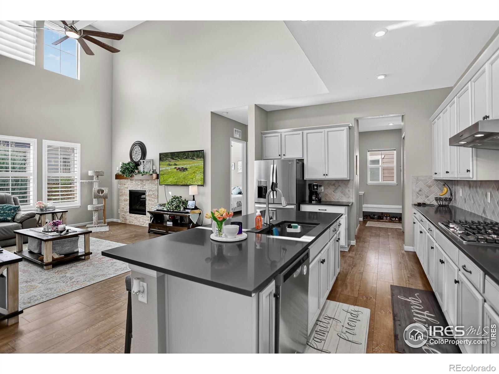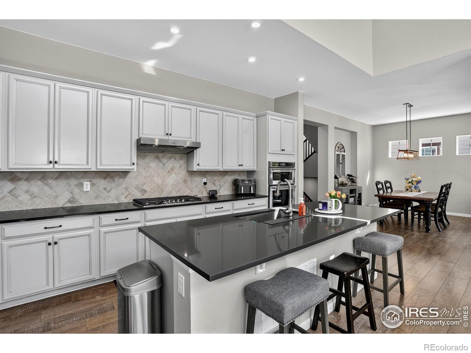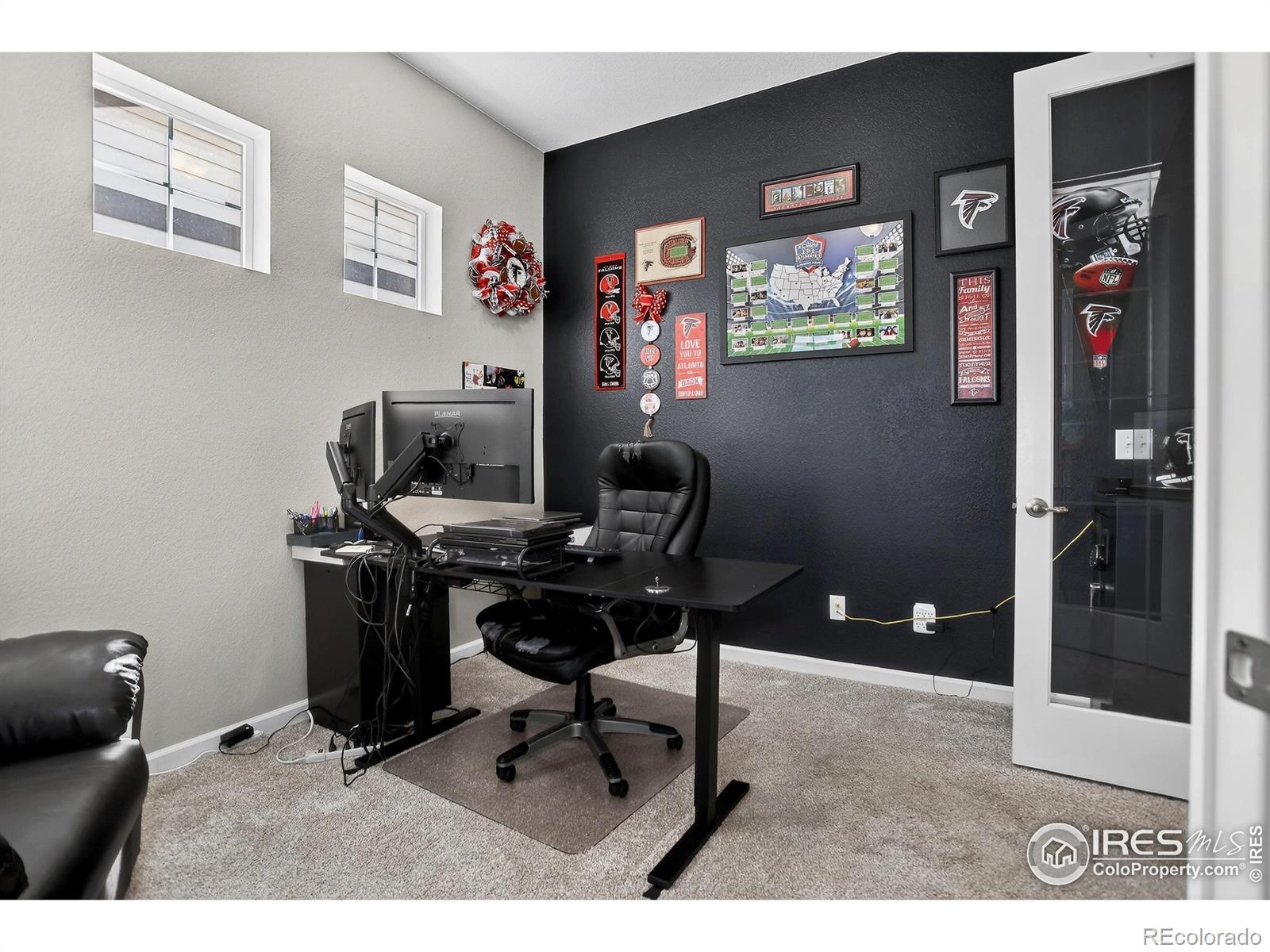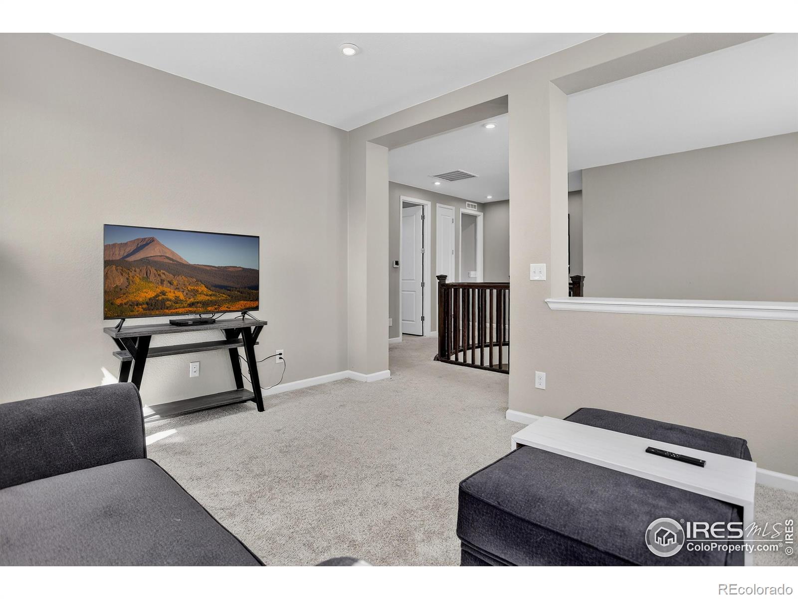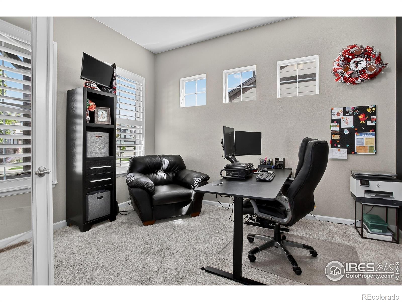 Price reduced over 30k! Beautiful newer Meritage home in Erie's coveted Colliers Hill. Enjoy over 3200 finished sq ft w/4 beds, main floor office & bedroom, 3 full baths & oversized 3-car garage! You'll love the Colorado outdoor living w/a covered patio, firepit & water feature and tons of trees for privacy! Full unfinished basement w/rough in bath for future expansion & storage! Large, bright & open kitchen w/gas cooktop, quartz counters & large pantry. Huge family room w/ stone tile gas fireplace. Main floor living space has LVP flooring, shutters; primary has two walk-in closets, separate vanities, huge shower. Includes permanent, year-round Trimlights; new roof in 2023! Colliers Hill offers amazing amenities including outdoor pool, clubhouse + exercise room, parks, hiking & biking trails!