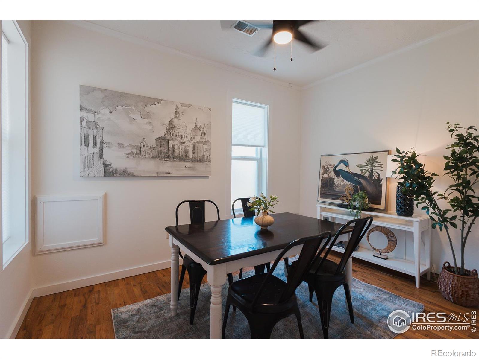 Impeccable remodel in Old Town Windsor. These homeowners have lovingly renovated every surface of this home. Boasting three bedrooms, two bathrooms and a total of 1509 square feet, updates include newly installed wood flooring on the main floor as well as new wood treads on the stairs, the original wood flooring has been refinished original wood flooring has been refinished, new lights have been installed, all new interior and exterior paint, new carpet, new water heater (2024), and perennial native flowers with drip systems throughout yards. Zoned for business and residential, this home is perfectly located just steps to Windsor Lake and Downtown Windsor with plenty of off-street and on-street parking. Make sure to take in the expansive outdoor space with two yards, large deck, second story balcony and deck, front porch, large driveway, and two storage sheds.This home is dialed in and ready for you to enjoy. No Metro district or HOA!