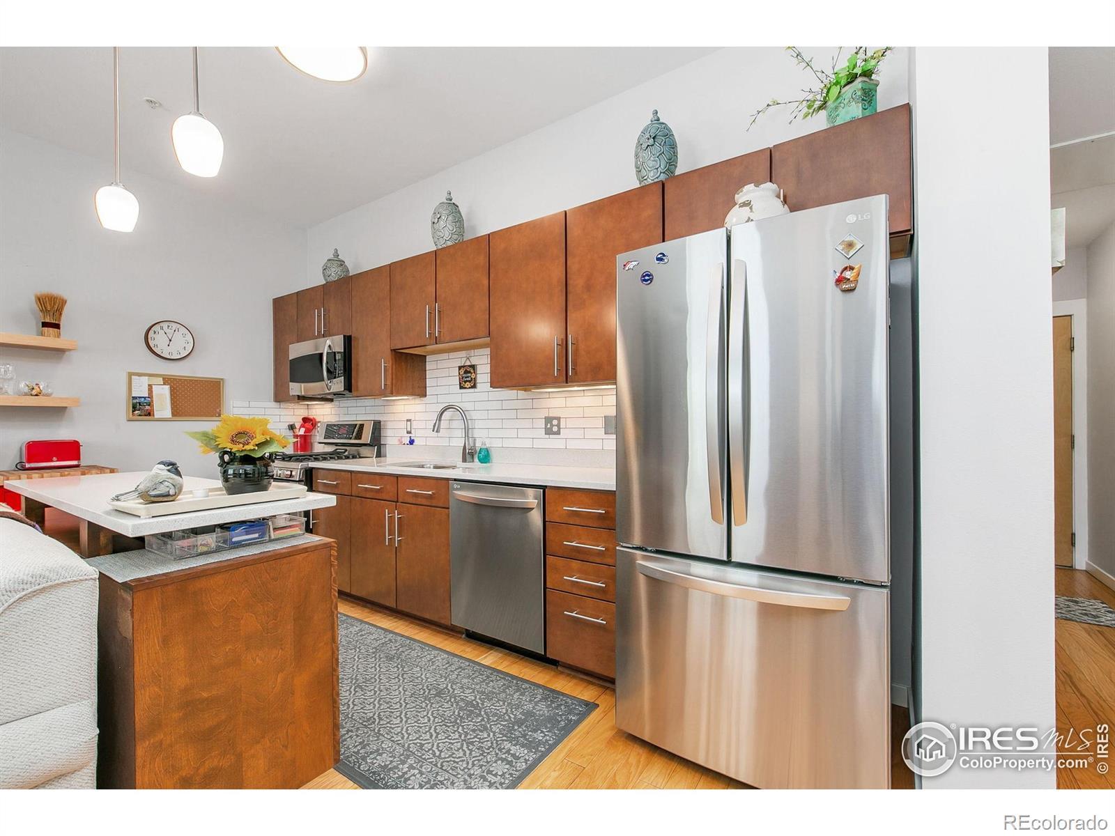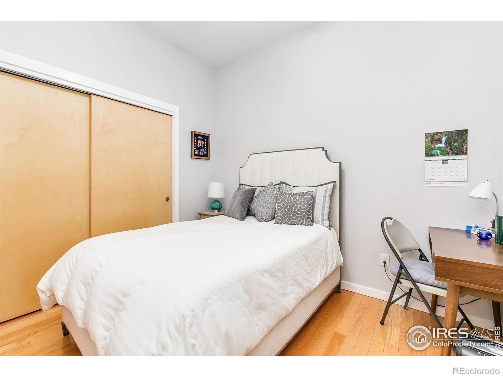 Lock-n-leave lifestyle in Old Town Fort Collins at an affordable price at this wonderful Penny Flats condo! The balcony of this home faces south so you'll enjoy plenty of natural light and sunshine while relaxing and enjoying the Old Town vibe and views of the city. So close to shopping and dining, the MAX transit bus for an easy ride to CSU and south Fort Collins, plus easy access to medical facilities and Highway 287 and I-25. Urban, contemporary loft with dark maple cabinetry, quartz counter tops and custom island, 10 ft ceiling adds to the feeling of space and airiness, engineered hardwood flooring, custom closet organizer in the primary suite and remodeled baths. Second bedroom/office is a great flex space you can set up however you'd like. It has a large closet for storage and is currently shown in the photos as a bedroom. Underground secure parking, 4' x 7' storage space, and lots of closet space within the home. Enjoy everything that Old Town Fort Collins can offer including Lee Martinez Park, local breweries, festivals and farmers markets, the Discovery Museum and numerous local eateries, entertainment venues and boutiques. Very affordable living - the HOA includes gas and water. Perfect option for both a full time home or a 2nd home in this great city. The flex room currently does not have a door but we do have a bid to add one! VA assumable loan available with a 2.25% interest rate - call for details!
