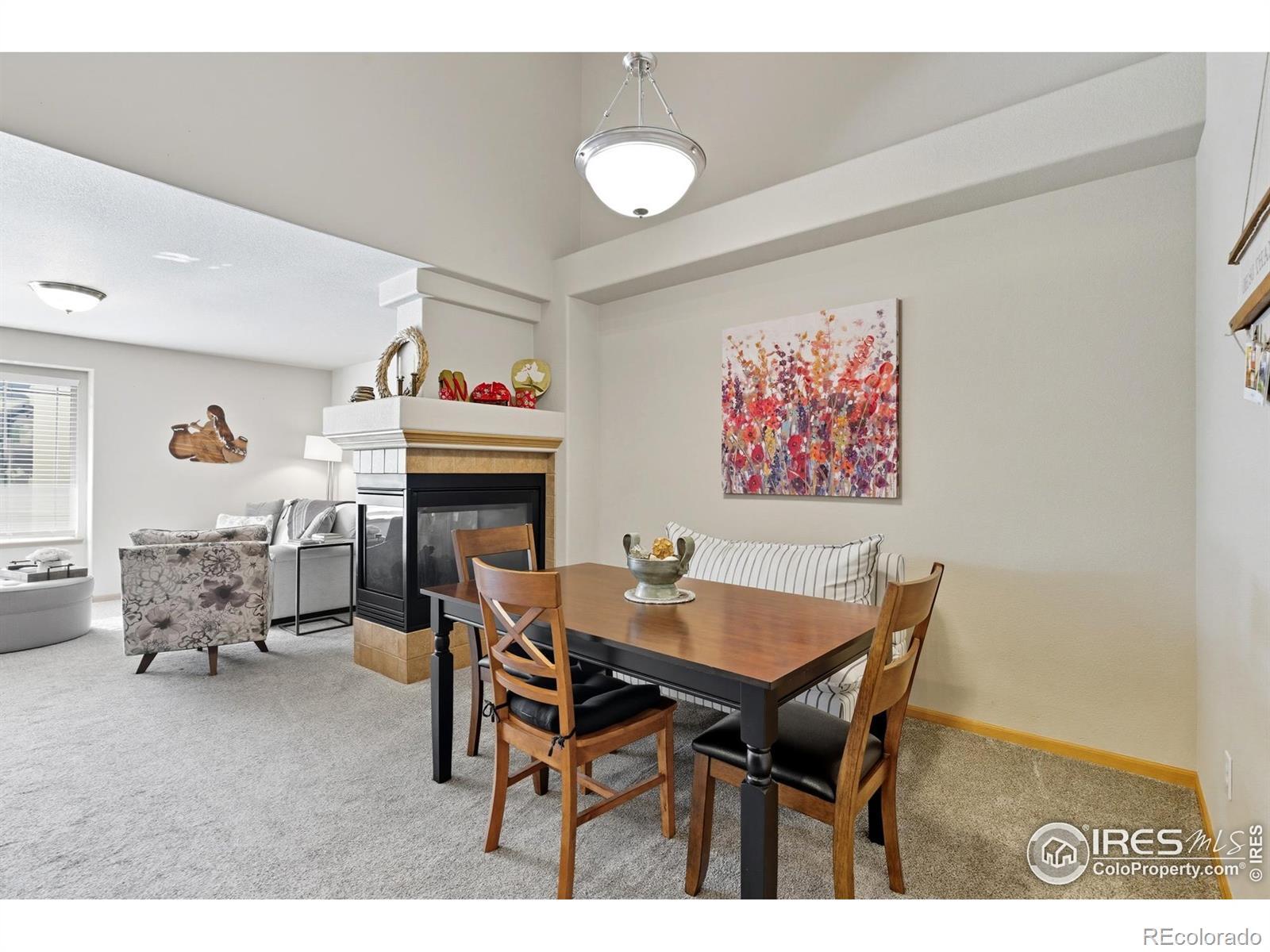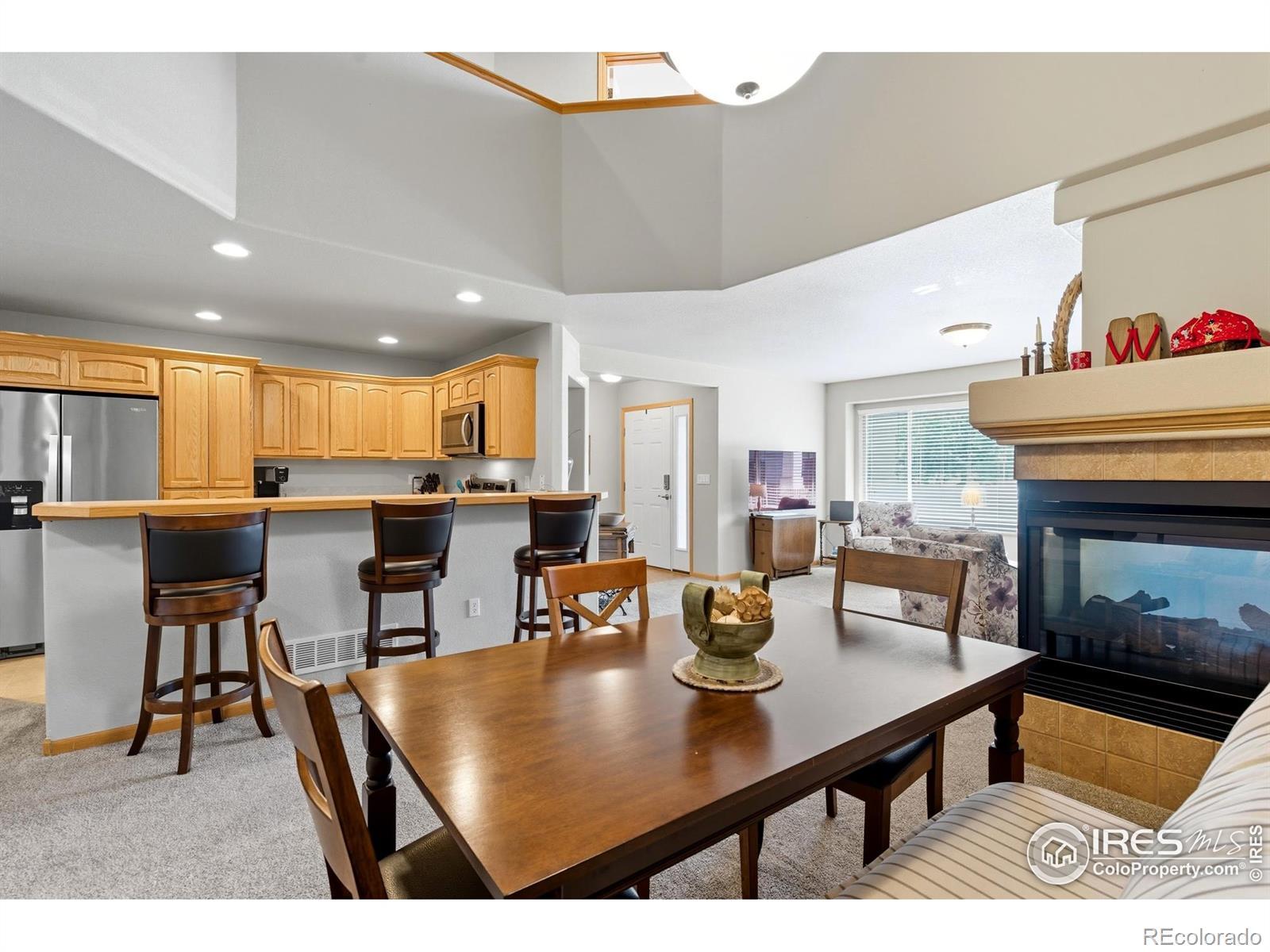 This charming townhome-style condo in Southeast Loveland is a true gem that will instantly feel like home! From the moment you step inside, you'll notice the thoughtful details throughout: a welcoming front porch, large sun-filled windows, a cozy multi-sided fireplace, arched doorways, a raised breakfast bar, and vaulted ceilings. The Master bedroom features a large 5pc master bath, walk-in closet, and a very unique private rooftop patio, just for you, right outside your sliding glass doors! The wide upper hallway has an open overlook enhancing the home's spacious, open-concept feel. Enjoy peace of mind with pristine carpet throughout (just 5 years old with no pets!), a new furnace, new A/C, and scheduled exterior painting this fall-already covered by the HOA. The attached 2-car garage adds convenience, and the full unfinished basement offers endless potential for future expansion. This neighborhood truly stands out, offering amenities that many communities don't! Relax at the pool, host friends in the clubhouse, and enjoy the friendly, well-maintained surroundings. With shopping and dining just minutes away and quick access to I-25 for an easy commute, this home is move-in ready and waiting for you. Don't wait, make this beautiful condo yours today!