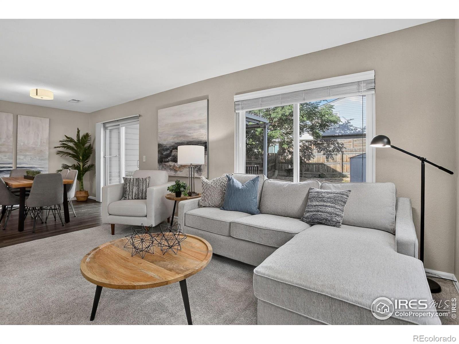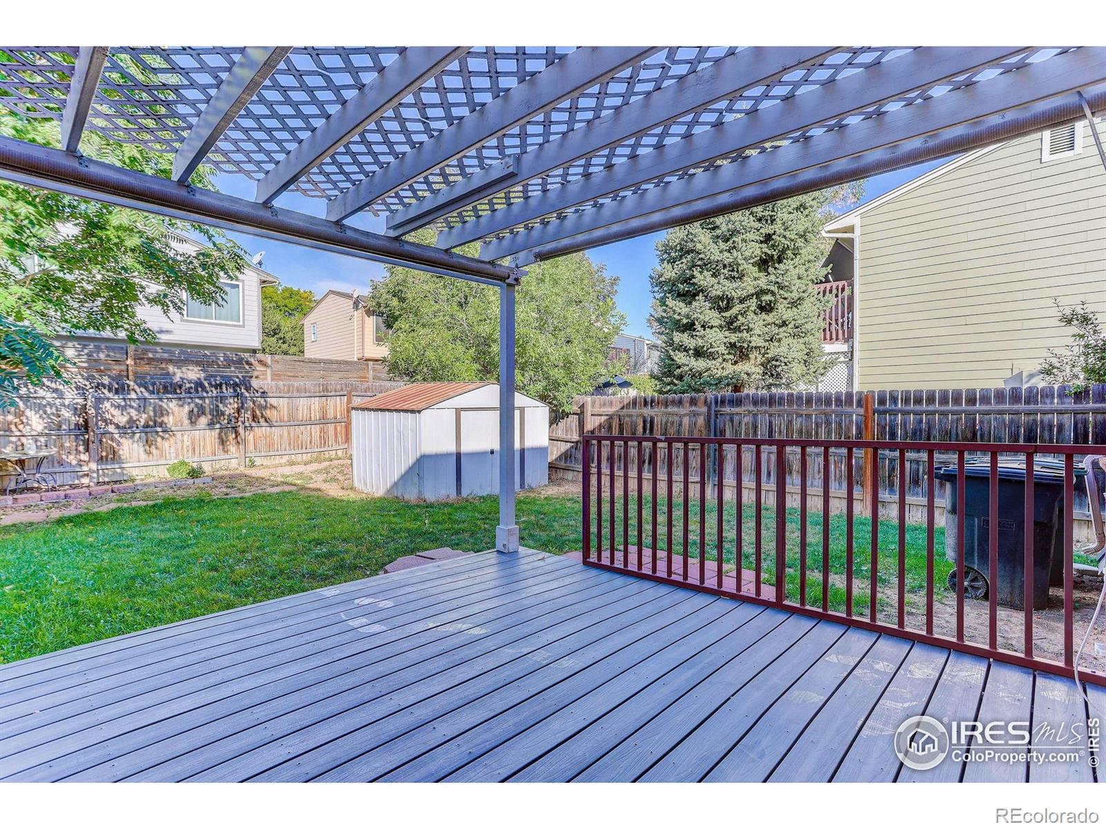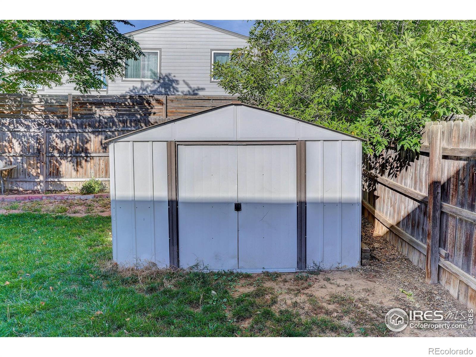 Cozy Thornton Duplex in a Great Location. This 1,575 sq ft duplex offers 3 bedrooms and 1.5 baths in a quiet neighborhood close to parks, trails, schools, and restaurants. The main level features a spacious living room, dining area, kitchen, and half bath. Upstairs, you'll find two bedrooms, a full bath, and convenient laundry. The finished basement provides a versatile third bedroom, family room, or home office. A sliding glass door off the dining room opens to a large deck with roll-down sunscreens-perfect for relaxing or entertaining. The backyard also includes a storage shed. A favorable 2-car garage is attached. The HOA covers exterior maintenance with roof, adding extra peace of mind.