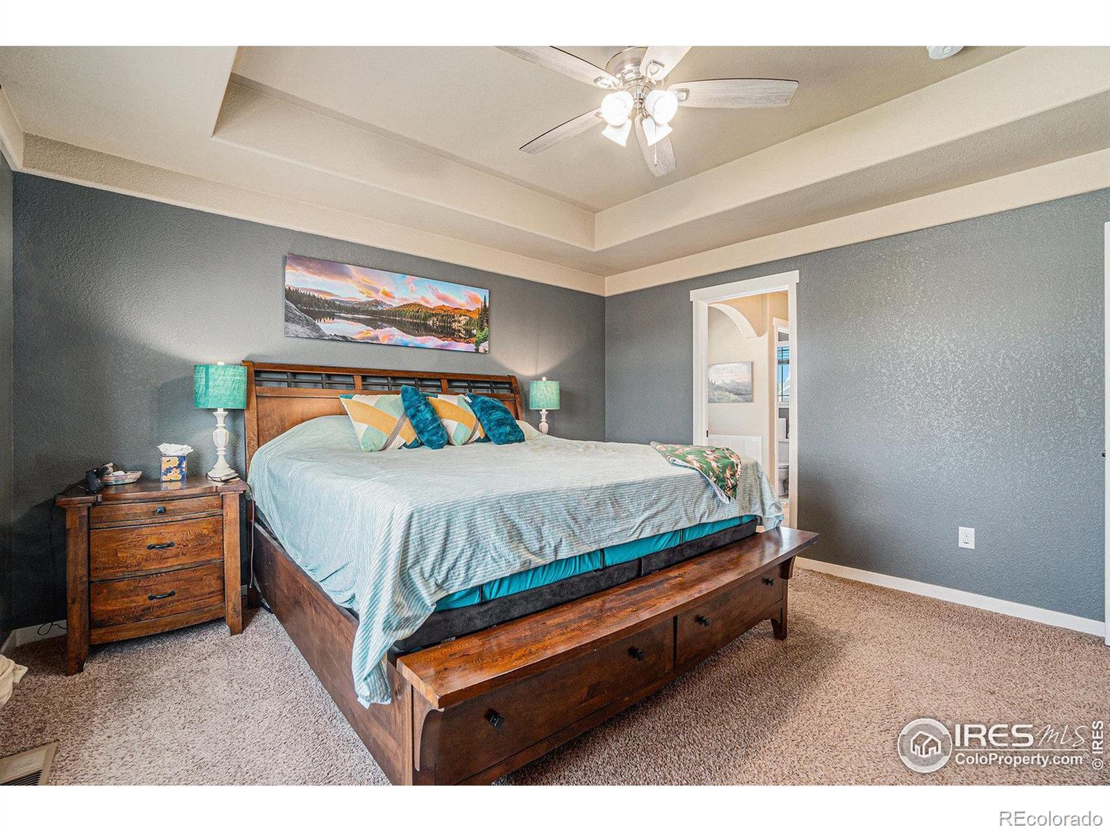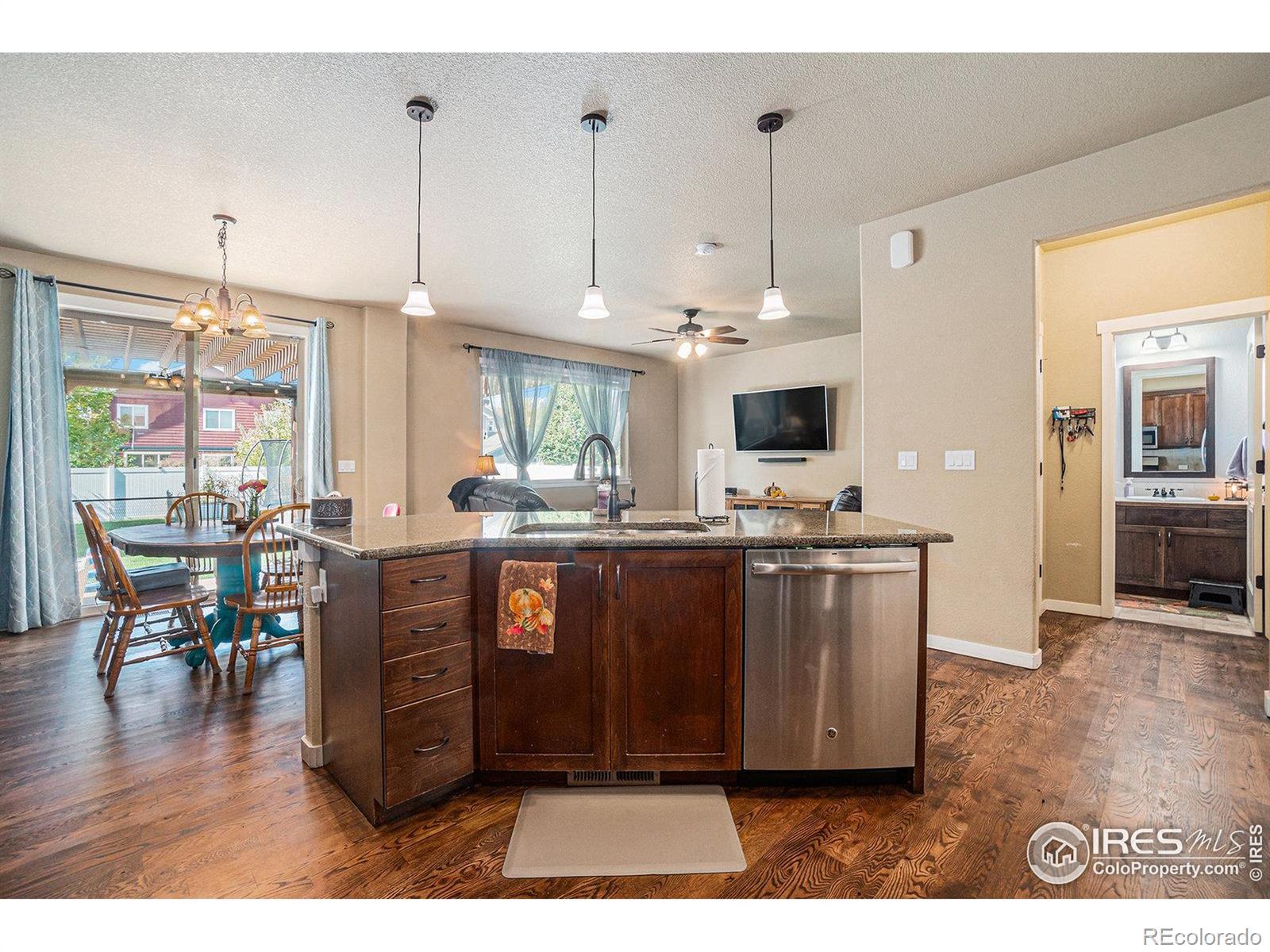 This wonderful home is located in the sought-after Peak View Estates neighborhood, tucked away on a quiet cul-de-sac just steps from the neighborhood park, brand new elementary school and nearby bike trails. Inside, you'll find freshly refinished hardwood floors (2024), granite countertops, and stainless steel appliances in a kitchen that opens comfortably to the main living space-perfect for everyday life and entertaining. New carpet in the living room adds a fresh, clean feel. Upstairs, the master suite includes a spacious walk-in closet and a full 5-piece bathroom with a soaking tub, separate shower, and dual vanities. The finished basement offers even more flexible living space with a large family room, an additional bedroom, custom wet bar and a full bathroom-ideal for guests, a home office, or a separate hangout area. The oversized, heated 3-car garage is a standout, with tall ceilings and overhead storage for all your gear, tools, or hobbies. Step outside to a beautifully landscaped, fully fenced backyard featuring a pergola with custom drop-down shades, raised garden beds with a drip irrigation system, and a 7'x16' storage shed for extra space. Additional features include a whole-house humidifier with UV air purifier, remote control blinds on the upper stairwell windows, solar attic fan and thoughtful upgrades throughout. This home blends comfort, functionality, and a great location-all ready for you to move in and enjoy.