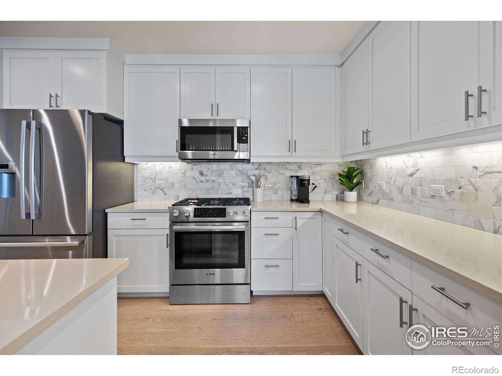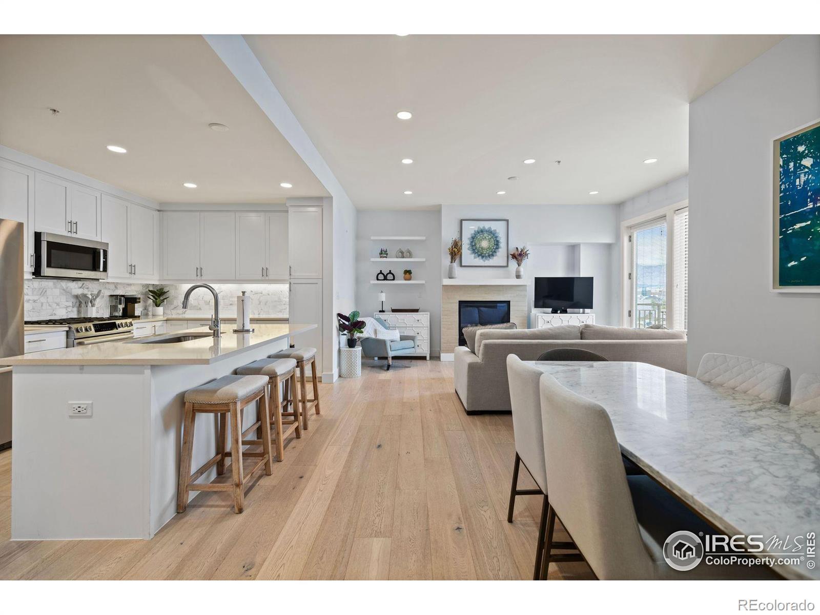 Penthouse Luxury Living with Foothill Views at The Peloton! Experience the best of Boulder in this stunning top floor residence where modern design meets everyday comfort. With expansive northwest foothill views, this home is as inspiring as it is inviting.The chef's kitchen is the heart of the home, featuring a generous island, sleek tile backsplash, and premium Bosch stainless steel appliances- perfect for entertaining, or gathering with friends. The kitchen flows seamlessly into the bright living area and out to the private patio, ideal for gazing at sunsets or paragliders taking off of the near-by foothills. Retreat to one of two spacious bedrooms, both with great views. From quartz countertops, relaxing soaking tub and dual vanities in the primary suite, every detail has been thoughtfully designed for relaxation. A bonus study nook adds flexibility for a home office, creative corner, or reading retreat. Practicality meets convenience with an oversized laundry closet, ample closets, and two rare garage parking spaces and a nice storage unit. Life at the Peloton means resort-style amenities at your fingertips: a heated rooftop pool and hot tubs with panoramic mountain views, private theater, state-of-the-art gym, and on-site dining at some of Boulder's favorite spots. Step outside and enjoy easy access to the 29th Street Mall, CU campus, Foothills Hospital, and neighborhood cafes. This penthouse is more than a home-it's a lifestyle. Don't miss your chance to own one of Boulder's most exceptional residences.