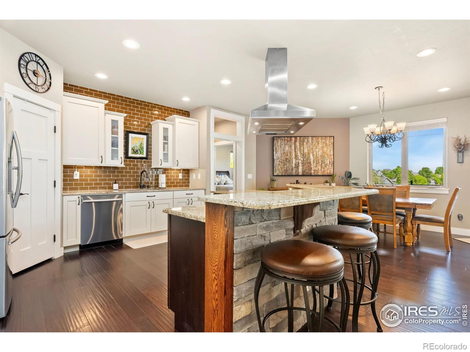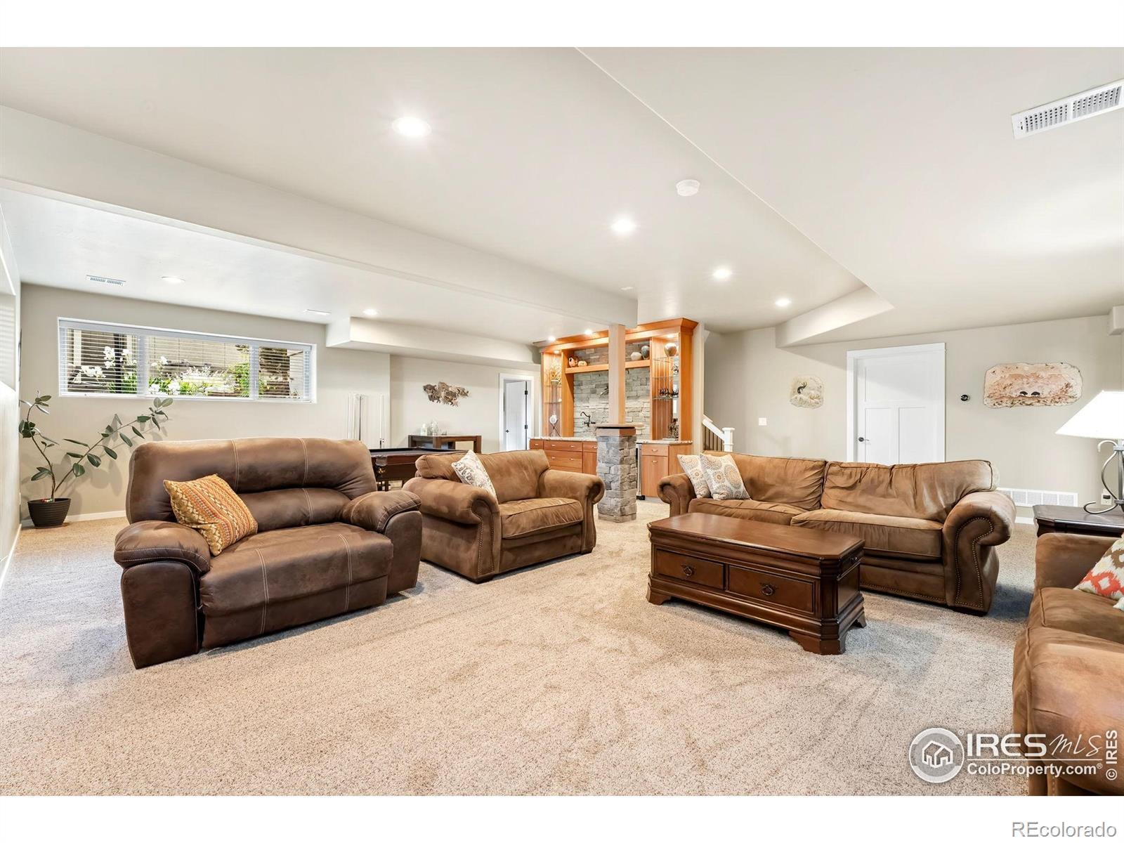 Welcome to this beautifully designed custom ranch in the Springs at Mariana, just 15 minutes from downtown Loveland and surrounded by Colorado's best outdoor activities - golf, boating, hiking, and more! With over 4,500 sq ft of living space and located on a premium lot backing to open space, this home offers both comfort and flexibility in a stunning setting. Step inside and be welcomed by vaulted ceilings, rich hardwood floors, and sun-filled rooms. The gourmet kitchen features a granite island, five-burner gas cooktop with a large hood and soft close cabinetry. The main floor primary suite feels like a retreat with brand-new carpeting, a spa-inspired bath with heated floors, a freestanding soaking tub and an oversized dual head walk-in shower. The fireplace, spacious closet, and deck access complete this space. Two additional bedrooms, an office, and a spacious laundry room can also be found on the main level. The walkout basement adds incredible living space with a secondary suite featuring its own entrance and heated bathroom floors. Two more bedrooms, a full bath, a large rec room, and abundant storage round out this level. And the oversized three-car garage offers even more convenience. Outside, enjoy a true backyard oasis with a covered deck, multiple seating areas, and frequent wildlife sightings. If you need more reasons to love this home, the private community park provides a small lake, gazebo, fire pit, butterfly garden, and walking trail for its members to use. With modern updates including a high-efficiency furnace and tankless water heater, this home blends elegance, comfort, and Colorado lifestyle in one exceptional package.