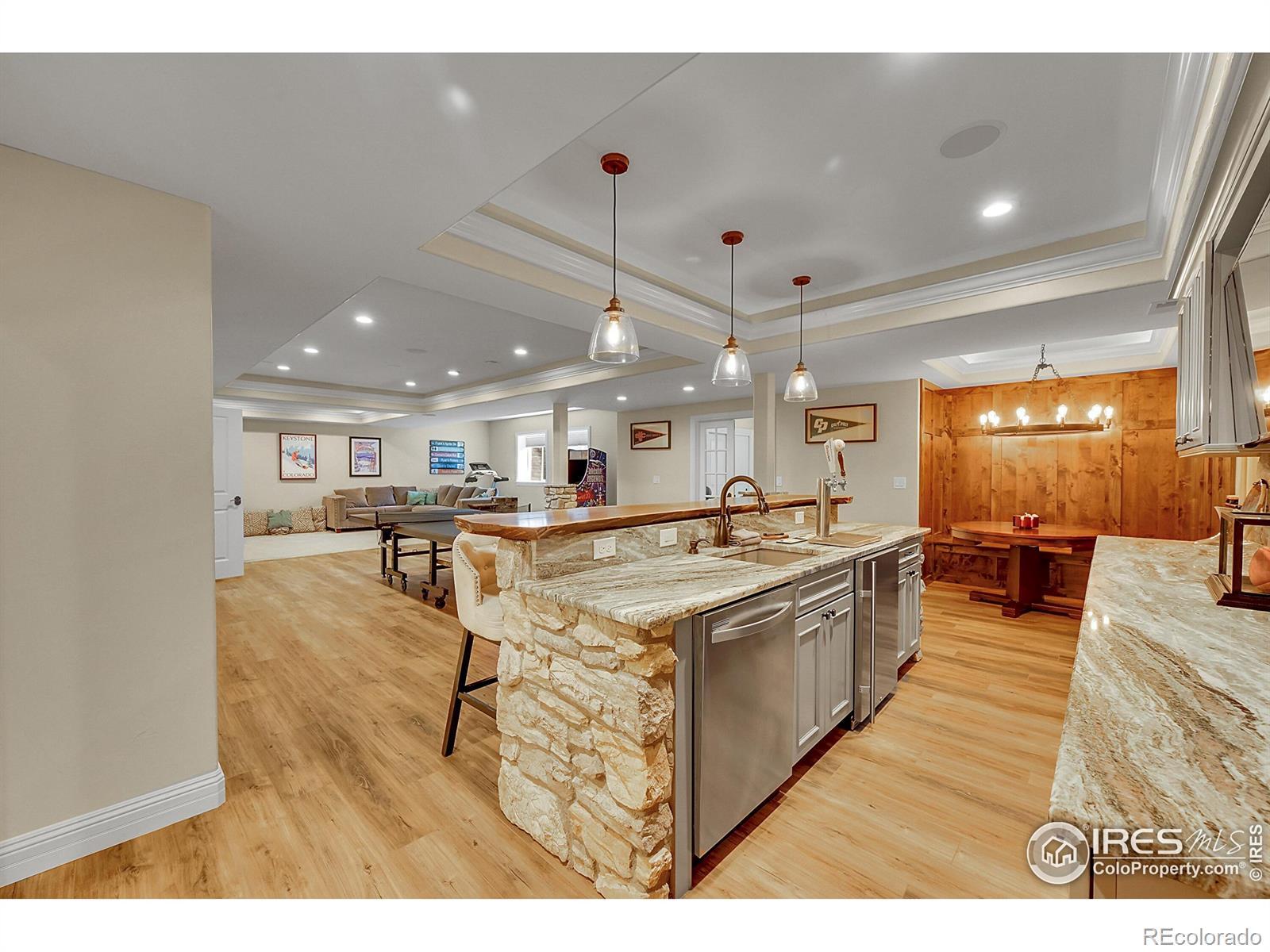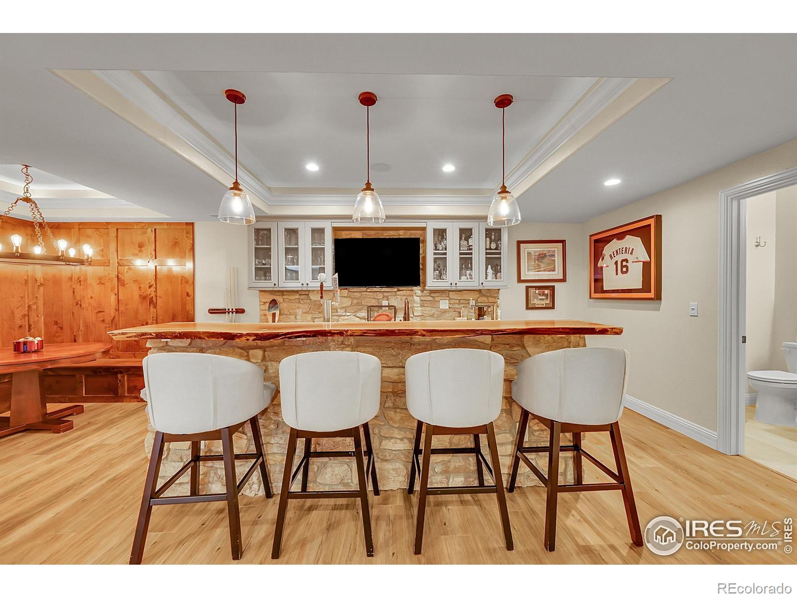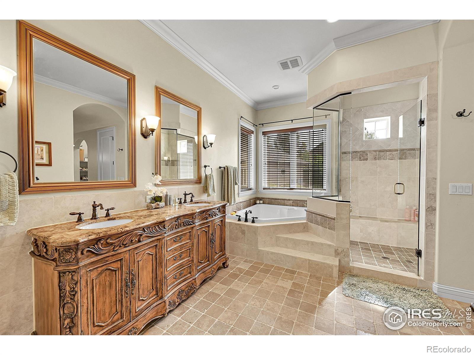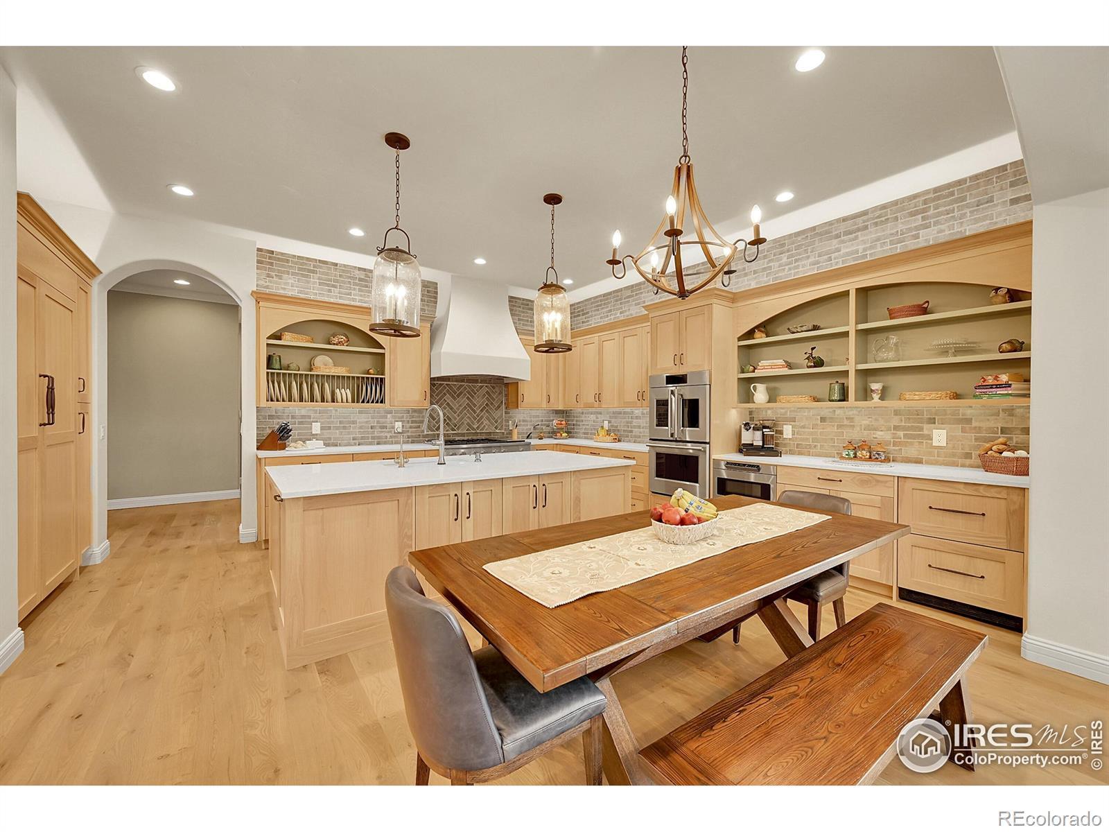 PRICED BELOW MARKET VALUE! CUSTOM HOME: European country-inspired architecture into a masterpiece of refined craftsmanship. Step inside to find a stunning main-floor primary suite, dual home offices & a thoughtfully designed layout that balances comfort, entertainment, and effortless everyday living. Over $240K in premium interior renovations elevate this home, beginning with wide-plank 6" live-sawn white oak hardwood floors and a chef's dream kitchen that redefines culinary excellence. Crafted for both function & flair, the kitchen features custom shaker-style white oak cabinetry, quartz countertops, a professional 6-burner cooktop with griddle, a striking 36" vent hood & a French-door double oven with Wi-Fi Air Fryer. Thoughtful additions like a built-in mixer lift station, pull-out spice and snack drawers, double dishwashers, and a Thermador cabinet-depth refrigerator/freezer make this space a culinary haven. Entertain in style with a formal dining room & a dry bar with floating glass shelves-perfect for butler-style serving and seamless access to the kitchen and pantry. Head downstairs to the fully finished basement, where a state-of-the-art entertainment center, flat panel AV monitor wall, and an upscale wet bar await-complete with wine fridge, kegerator, beverage center, dishwasher, and sink. Exterior freshly painted September 2025, a new roof & two new humidifiers (2024). Outside, professional landscaping featuring large boulders & mature trees creates a peaceful, country-like setting-your own private retreat within a thriving community. Enjoy a lifestyle like no other with access to multiple pools, tennis & pickleball courts, baseball field, outdoor rink, parks, playgrounds, gym, & miles of scenic trails & open space. Conveniently located near Boulder, the Rocky Mountains, I-25, C-470, DIA, & downtown Denver.