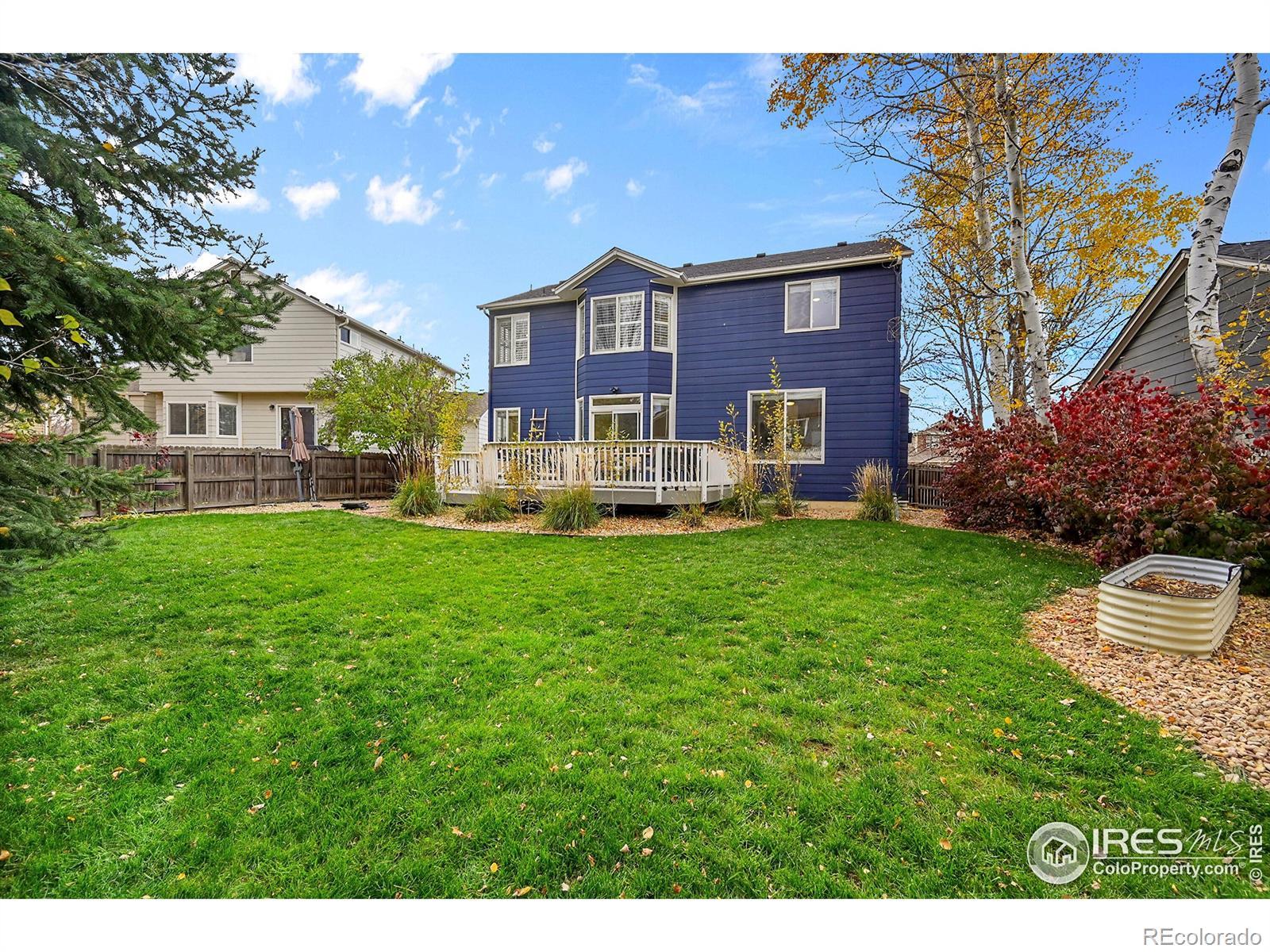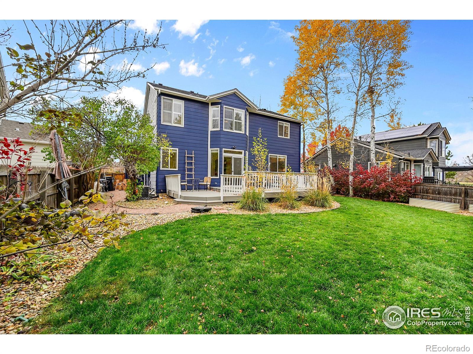 This beautiful and well maintained 3 bedroom plus loft, 2.5 bathroom home, situated on a quiet cul de sac, is located just a short walk away from Red Hawk Elementary and Country Fields park. Enjoy 1,999 sqft of finished living space and an unfinished basement that offers plenty of storage or potential for additional living space in the future. The main floor features an open floor plan with a spacious living room, dining room, nook, and upgraded kitchen with newer quartz counter tops and stainless steel appliances. Upstairs you will find beautiful engineered hardwood floors, a large loft (that could easily be converted to a bedroom), a large primary bedroom with vaulted ceilings and a five piece bathroom, and 2 more bedrooms that share a jack n jill bath with a dual vanity. Attractive custom color paint throughout. Enjoy sitting on the front porch and visiting with wonderful neighbors, or on the large back deck and beautiful and private back yard. Great home for entertaining and gatherings of your family and friends. Low HOA fees and no Metro Taxing District taxes! Exterior color is navy blue!