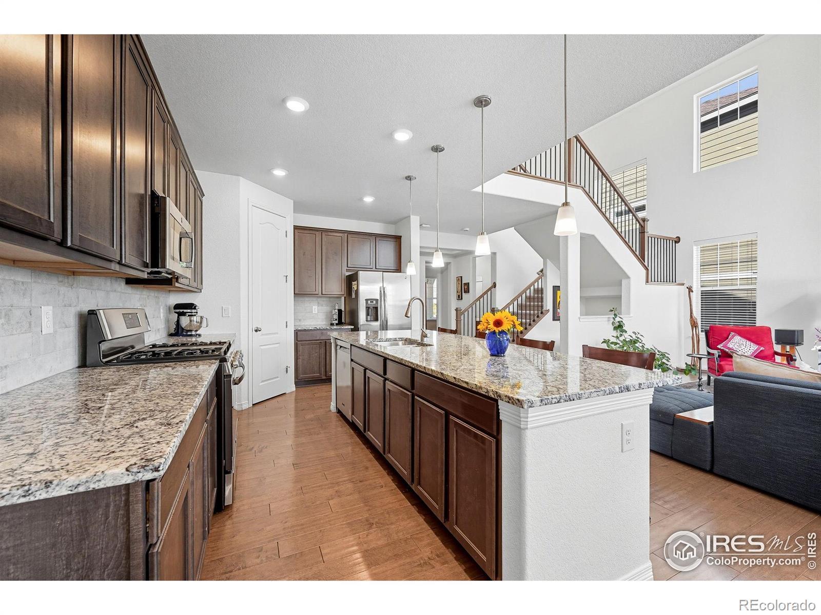Experience the best of Colorado living in this beautifully designed Boulder County home, where natural light, open space, and modern style create the perfect balance of comfort and sophistication. The heart of the home is a dramatic two-story great room featuring soaring ceilings, expansive windows, and a custom-tiled gas fireplace that provides both warmth and ambiance. Seamlessly connected, the gourmet kitchen is designed for entertaining with stainless steel appliances, slab granite countertops, and an oversized island that invites gatherings of all kinds. Rich cabinetry and thoughtful finishes elevate the space while offering functionality for everyday living. Upstairs, the private primary retreat is a true escape. Here you'll find a spa-inspired bath with a soaking tub, tiled walk-in shower, dual granite vanities, and two generous walk-in closets. The upper level also includes a Jack-and-Jill bath shared by two bedrooms, plus a guest suite complete with its own ensuite bathroom. An upstairs laundry room and a mudroom off the garage-equipped with cubbies, bench seating, and coat storage-make daily routines simple and organized. Step outside to enjoy year-round outdoor living on the spacious covered patio, thoughtfully outfitted with custom blinds for shade and comfort. Whether hosting friends, relaxing with a book, or taking in Colorado's crisp evenings, this space is designed to be enjoyed in every season. The location completes the package-just a short walk to Meadowlark K-8 and Star Meadows Park. With its prime setting, versatile layout, and high-end details throughout, this home perfectly blends elegance, convenience, and the Boulder County lifestyle.