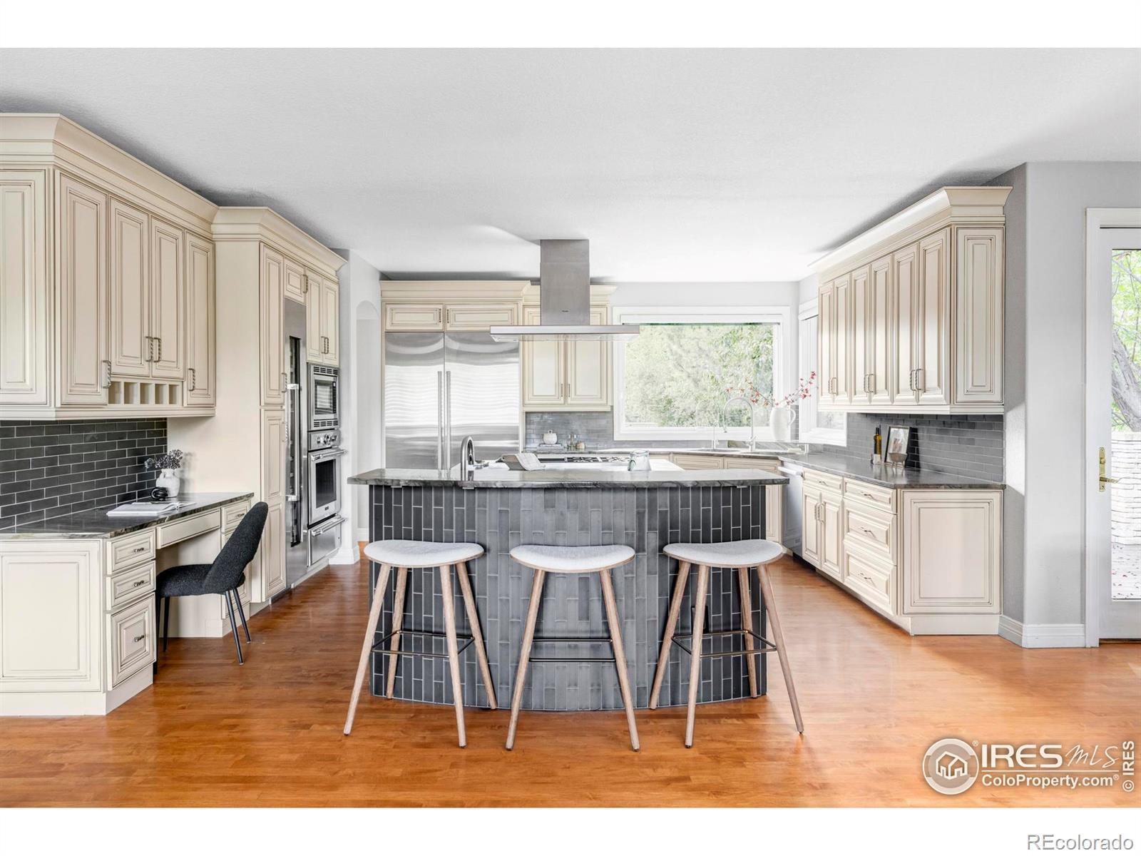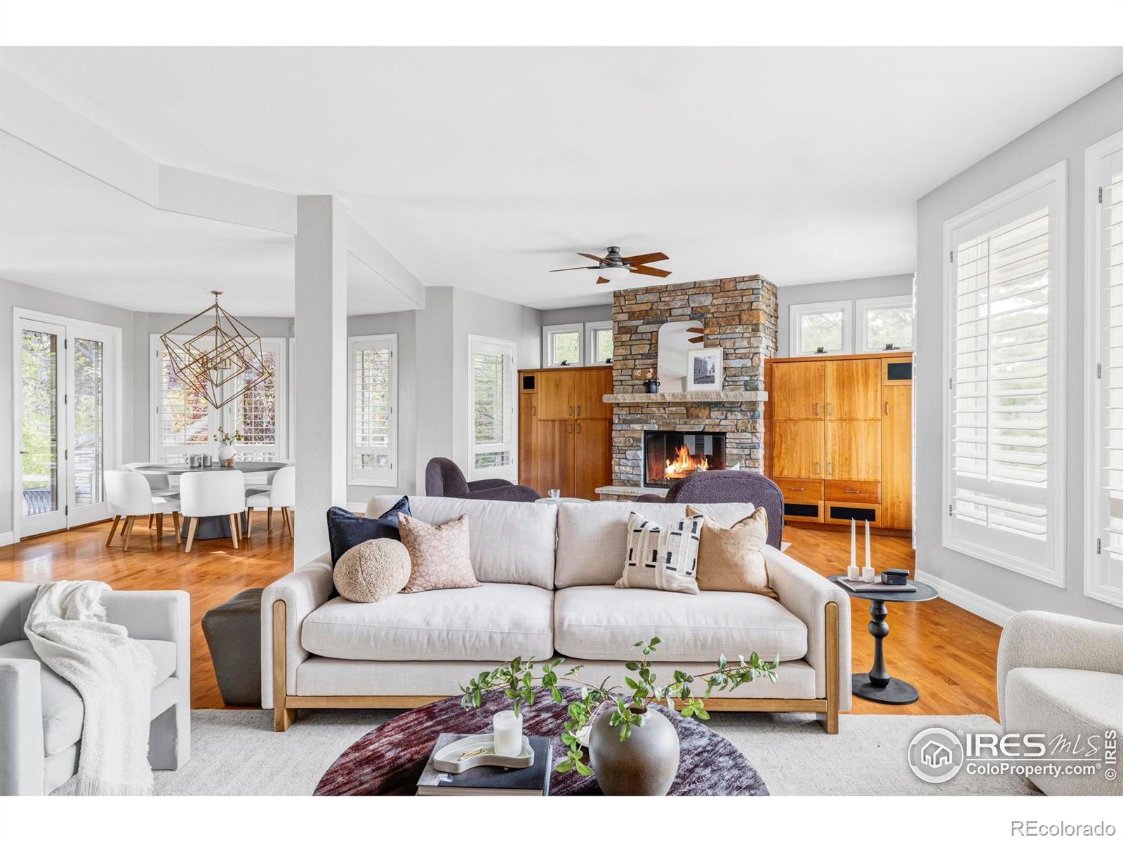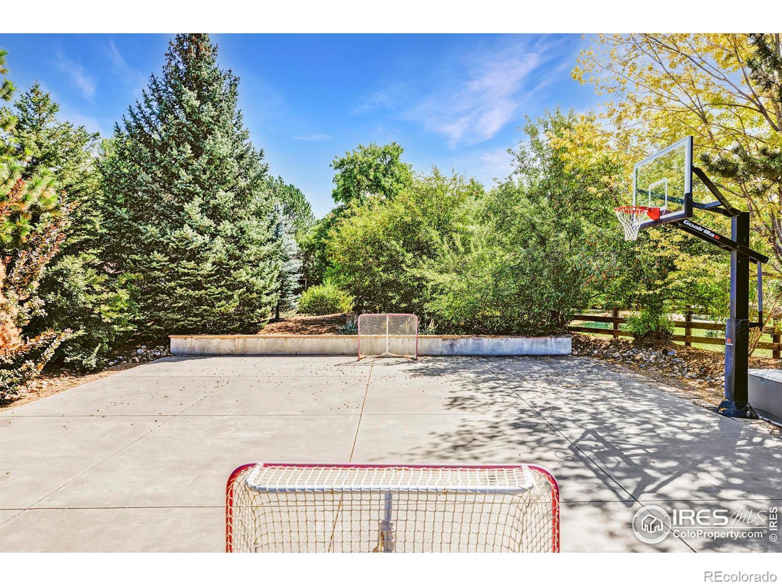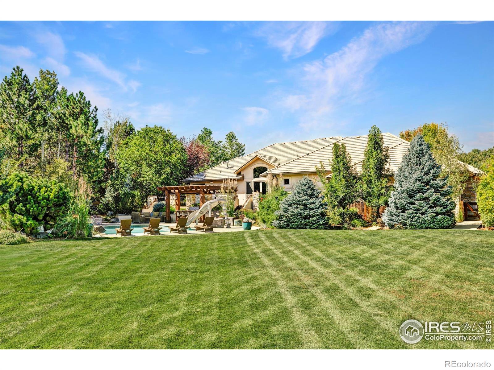 Set on 1.35 acres in Boulder's White Hawk Ranch, 9022 Jason Court offers resort-style amenities and expansive living. This 8,512-square-foot, six-bedroom, seven-bathroom residence pairs privacy with connection, featuring sprawling lawns, a pool and sport court, and interiors anchored by a main-level primary suite with multiple spaces for gathering, entertaining, and retreat. A marble foyer sets the tone with timeless finishes and generous scale. To the left, a dedicated office enjoys floor-to-ceiling windows, while ahead, the formal dining room impresses with tall ceilings and French doors to the backyard. A serving area with a walk-in pantry connects to the chef's kitchen, where two large islands-one with bar seating, the other with a six-burner range-create the ultimate culinary workspace. Custom cabinetry, a sunny breakfast nook, and sinks overlooking the grounds complete the kitchen, which flows into the living room with stone fireplace, built-ins, and a wall of windows. Hardwood floors extend throughout the main level, including into the private living quarters. The primary suite features a fireplace, sitting area, spa-like bath with dual vanities, soaking tub, walk-in shower, and an oversized closet. Two additional en suite bedrooms, a powder room, and a mudroom with custom storage and laundry facilities complete this level. The lower level is designed for recreation, with a vast rec room featuring fireplace and wet bar, exercise room, powder room, two bonus rooms, and a private guest suite. Two more bedrooms share a full bath. Outdoors, a deck overlooks the fenced yard with pool, hot tub, outdoor kitchen, sport court, gardens, and terraces. A circular drive, motor court, and three-car garage add convenience and curb appeal. Located on a quiet cul-de-sac, this estate combines neighborhood charm with proximity to Boulder and Lafayette's shopping, dining, schools, and trails-an exceptional opportunity to enjoy Colorado living at its most refined.