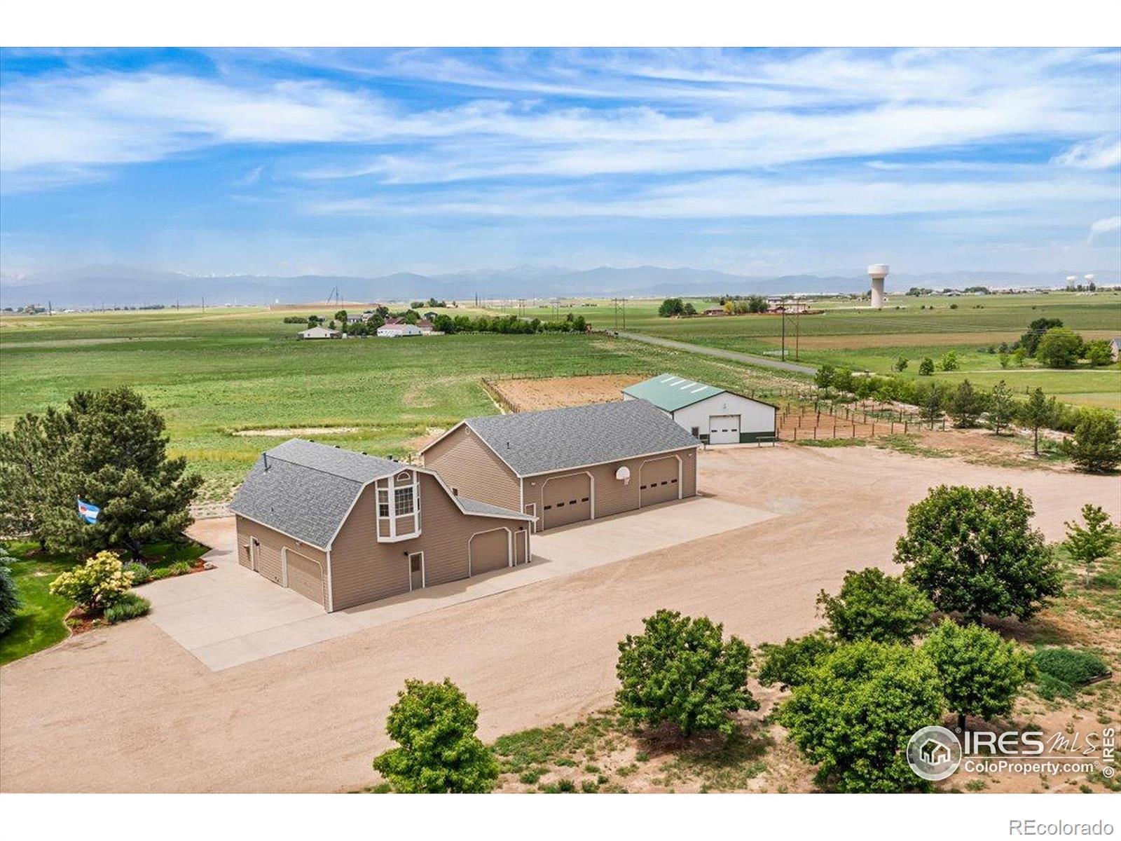 Welcome to your private oasis, nestled on 35 picturesque acres of Colorado countryside, offering unobstructed panoramic views of the Rocky Mountains. This extraordinary estate in Northern Colorado offers a rare combination of luxury living, guest accommodations, equestrian amenities, and versatile workshop spaces -perfect for those seeking space, serenity, and sophistication. At the heart of the property is a stunning 5,700-square-foot custom-built home that seamlessly blends craftsmanship, comfort, and breathtaking views in every direction. Designed with expansive living and entertaining in mind, the home features seven spacious bedrooms and five bathrooms, expansive decks and patios, a walk-out basement with wet bar, home theatre, and mature landscaping including a pond. The guest house is deal for visitors or multigenerational living. The one-bedroom suite is outfitted with vaulted ceilings, fireplace, a full kitchen, a cozy TV room, three quarter bath, and a three-car garage. It also includes a walk-in freezer, making it an excellent setup for hunters or those who love to entertain. The 2,400-square-foot (partially heated) shop provides exceptional space for hobbies, storage, or business use. Outfitted with one half bathroom, two 12-foot overhead doors and 220V power, it's a dream for car collectors, craftsmen, RV, or small business owners. Equestrians will fall in love with the eight-stall horse barn complete with individual runs, water, tack space, fenced riding arena, and ample roaming acreage. Whether you're training, riding for pleasure, or boarding horses, this property offers everything needed to support your equine lifestyle. Easy proximity to three golf courses, shopping, five minutes to I25, 45 minutes to Denver International Airport, and ten minutes to downtown Windsor, Colorado.