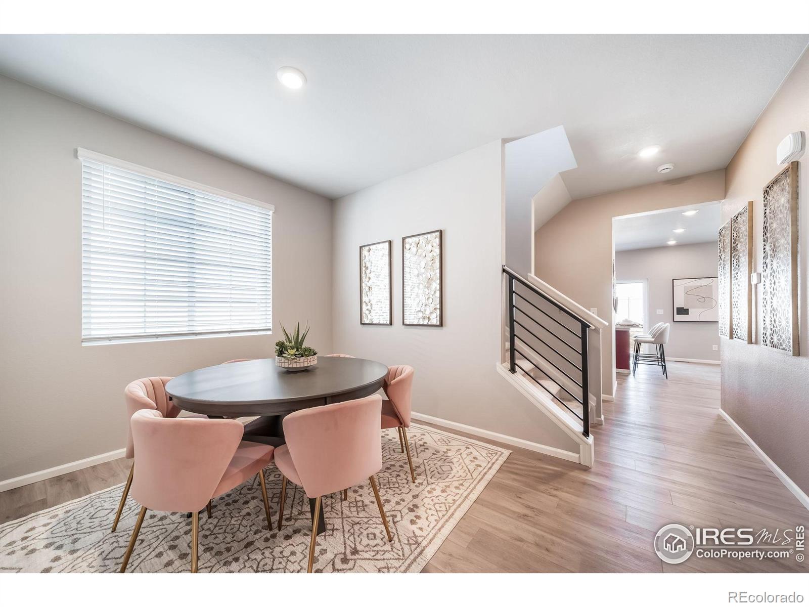 Welcome to the Triumph - at Thompson River Ranch. Enjoy $20K toward your new home when using our preferred lender! Restrictions apply, see sales counselor for details. The Triumph floorplan blends modern design with artisanal touches in a home built for flexibility, affordability, and efficiency. This single-family, 2-story layout spans 2,582 sq. ft. in total and offers 5 beds, 3.5 baths, an unfinished basement, and an oversized 2-car tandem garage with storage. Inside, the main floor includes a flex room, dining area, powder room, spacious great room, and a kitchen with stainless steel appliances, walk-in pantry, and large eat-in island. Upstairs, four secondary bedrooms share two full baths, one with dual vanities. The primary suite features a large bedroom, dual vanities, linen closet, and walk-in closet. The laundry is also upstairs for everyday convenience. The unfinished basement offers room for storage or future customization. Located in the heart of Thompson River Ranch, just south of the Promenade Shops at Centerra, you'll live where amenities meet lifestyle. Enjoy two outdoor pools, a fitness clubhouse, disc golf, playgrounds, scenic trails, and year-round community events-all in a master-planned setting that feels like a permanent vacation. Actual home may differ from artist's renderings or photos.