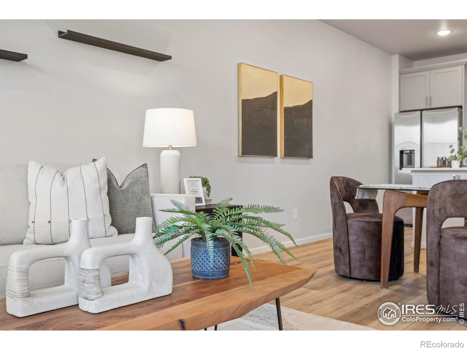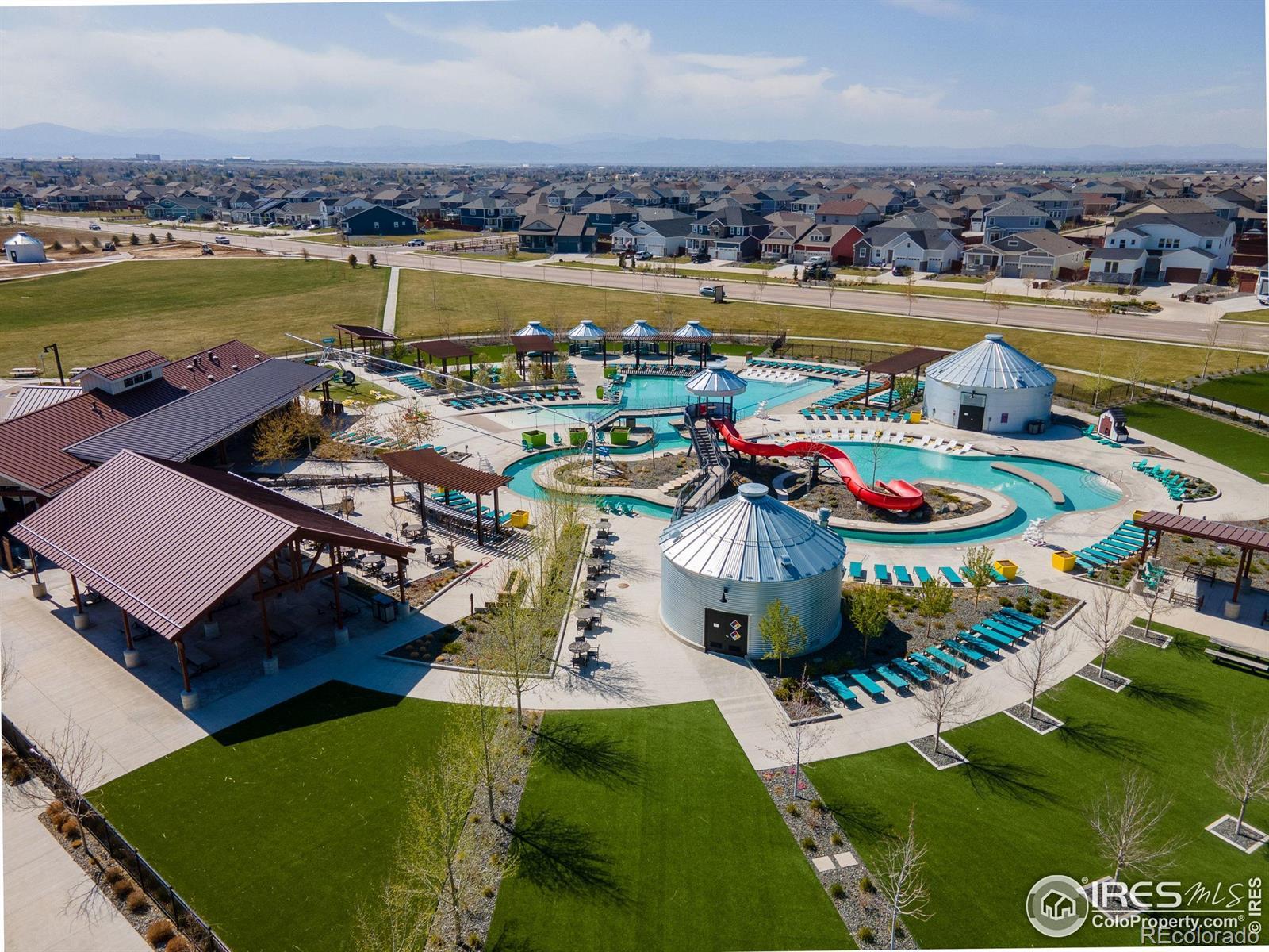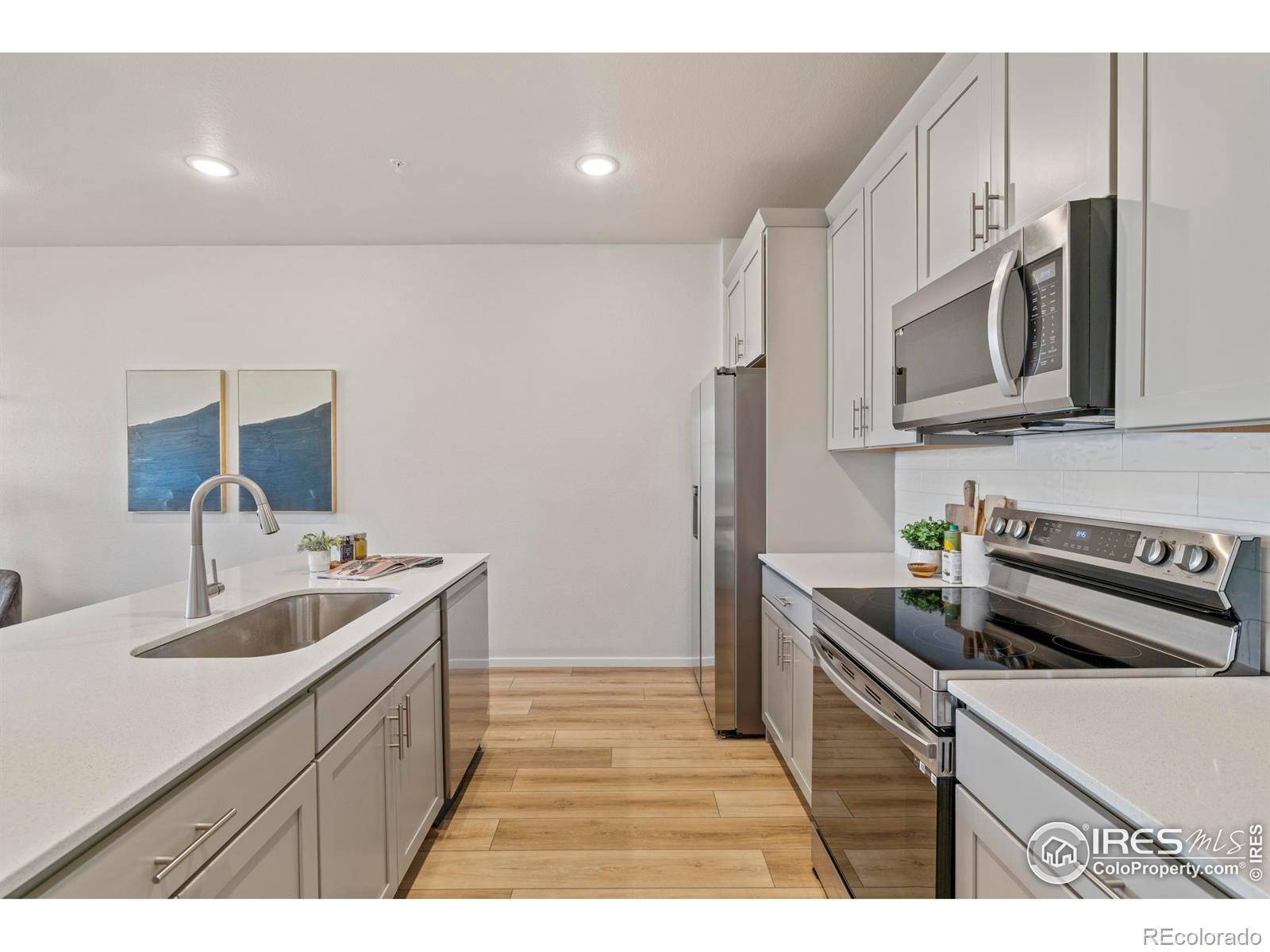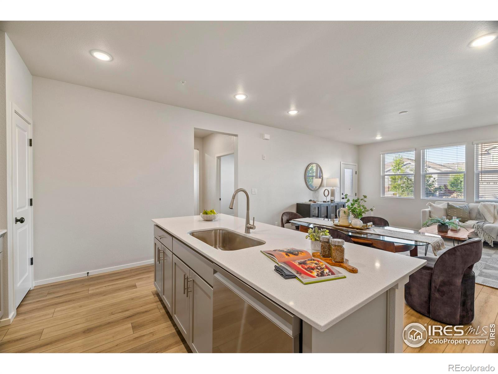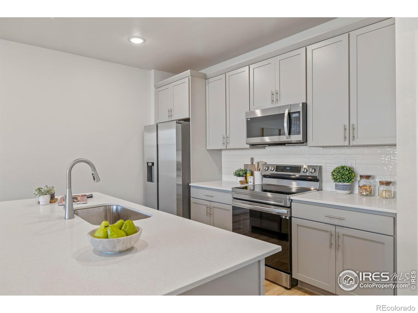 PRICED BELOW the builder's current inventory of 2 bed/2 bath attached homes, this 2022-built end-unit condo offers both immediate equity and long-term income potential. Whether you're looking for a turnkey primary home, a low-maintenance lock-and-leave, or an attractive rental investment, this ground-level property checks every box. Designed with a modern farmhouse feel, the 2-bedroom, 2-bath layout delivers comfort, style, and accessibility-with ramp entry and no stairs. Set in a quiet location that fronts to grassy open space, the east-facing patio offers a peaceful retreat with shade for summer evenings. From here, you're steps from scenic trails, neighborhood dining, and the Raindance River Resort Pool-complete with lazy river, water slide, and walk-in beach. Inside, the bright open floor plan features a welcoming living area, a gourmet kitchen with quartz counters, shaker cabinetry, center island, pantry, and stainless appliances, plus a dining area for everyday meals or entertaining. The spacious primary suite showcases luxury vinyl flooring, a spa-inspired bath with a walk-in tiled shower, dual vanities, and a generous closet. The secondary bedroom offers flexibility for guests, an office, or short-term rental potential-complete with its own full bath. Additional highlights include attached one-car garage with direct entry through the laundry area, keyless entry + storage closet and additional street parking right out front for easy hosting. Located within one of Northern Colorado's most desirable master-planned communities, you'll enjoy golf cart access to restaurants, parks, and resort-style amenities. Absolutely turnkey and move-in ready-priced to sell with unmatched value compared to new construction. Don't miss the 3D walkthrough on the property website!