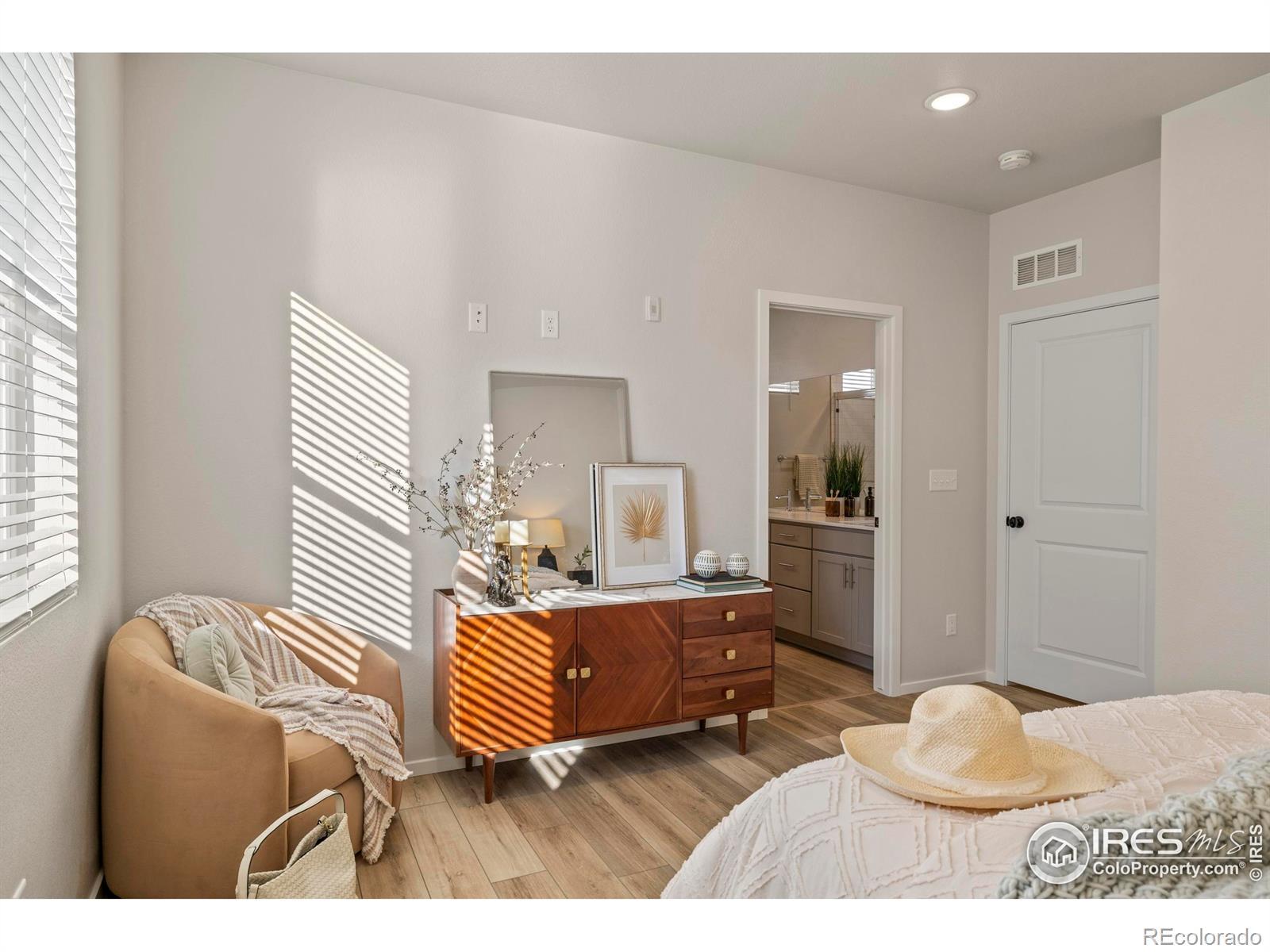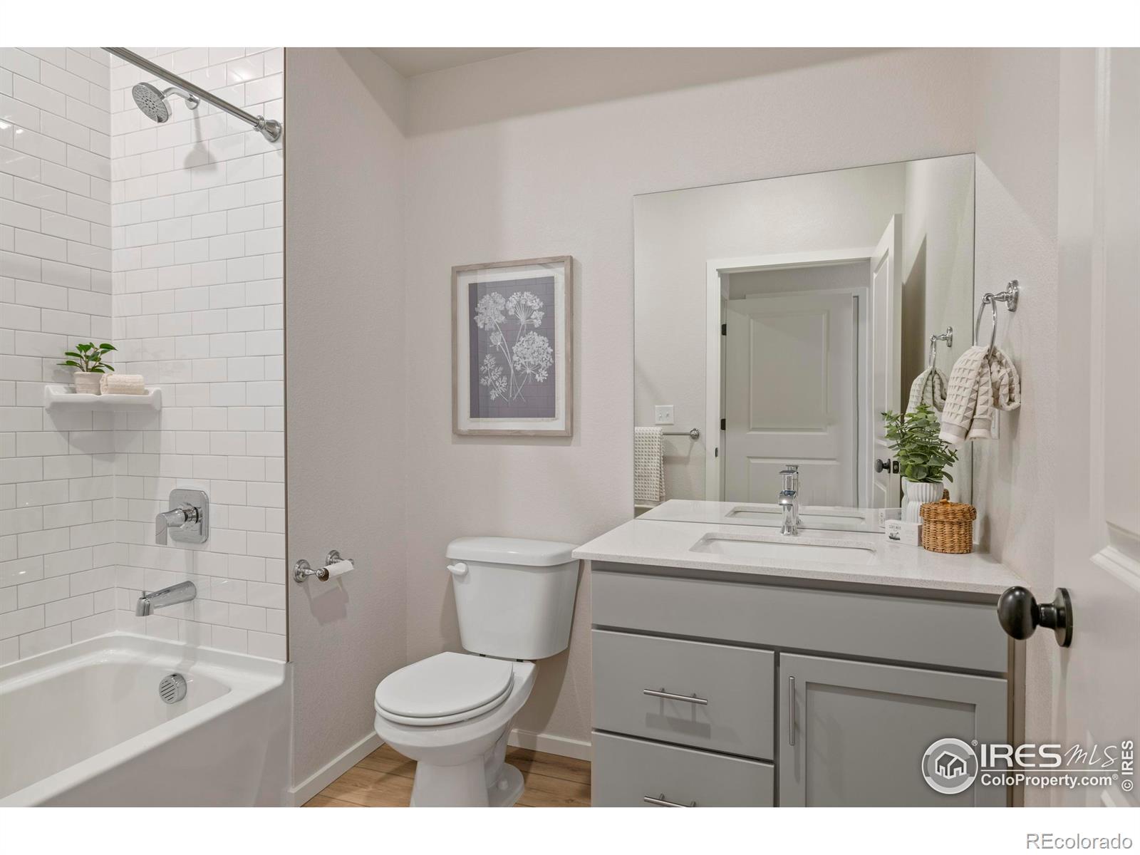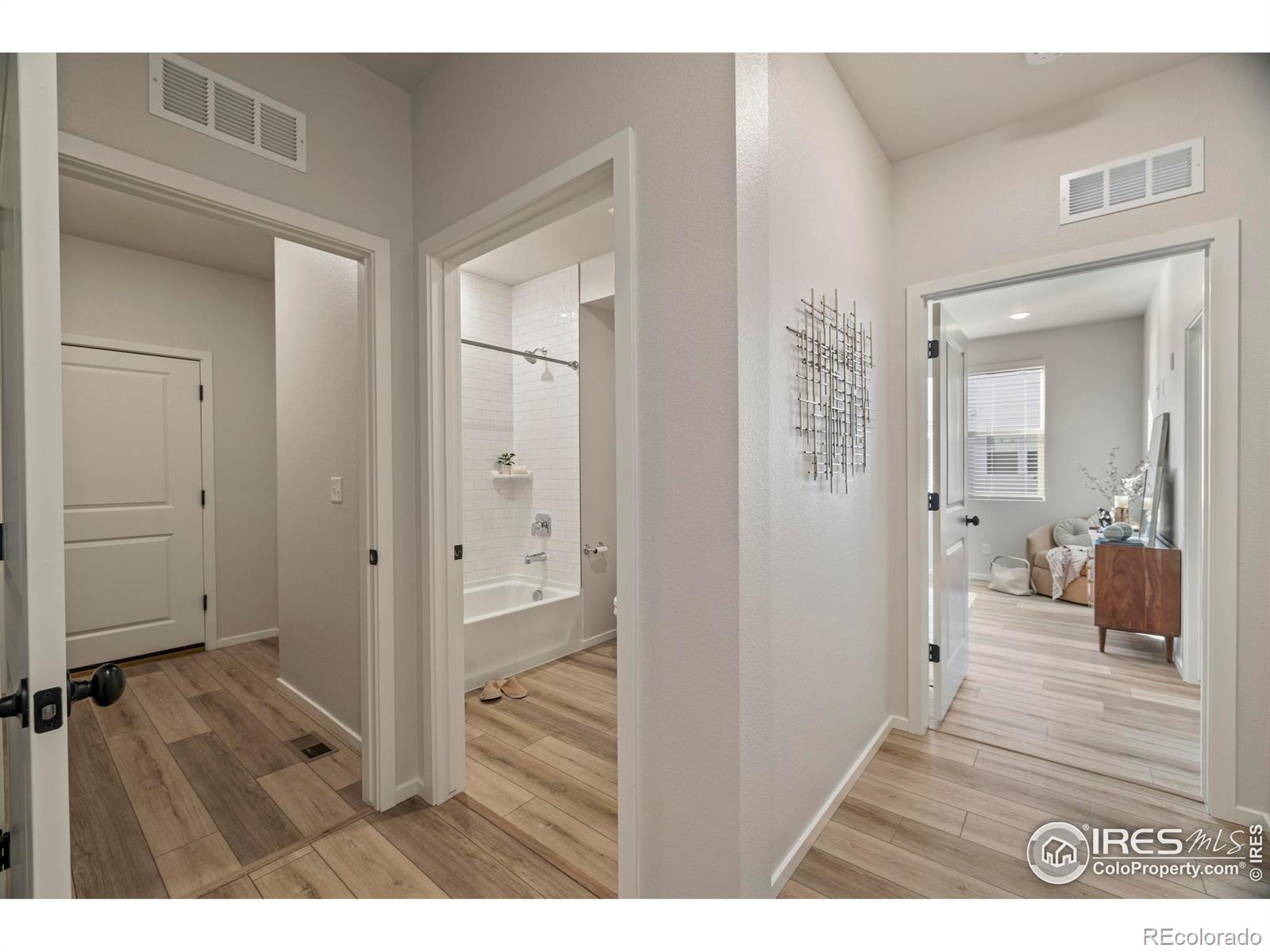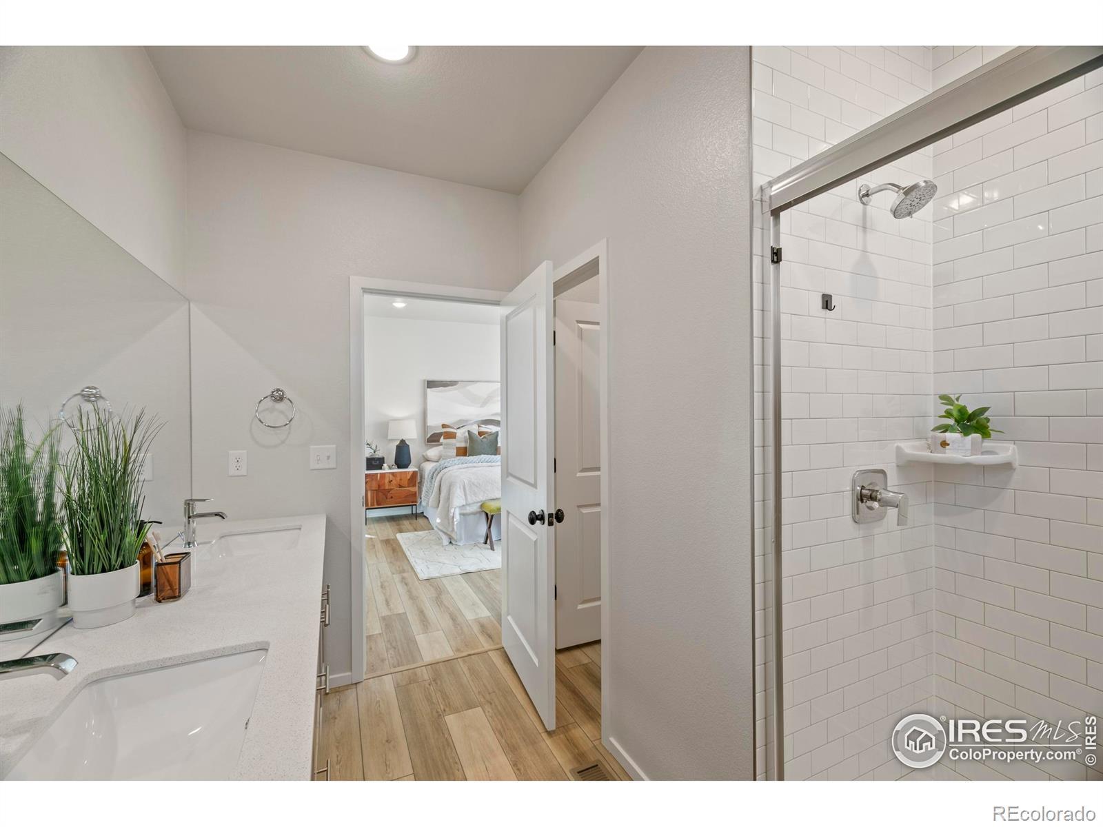 PRICED BELOW the builder's current inventory of 2 bed/2 bath attached homes, this 2022-built end-unit condo offers both immediate equity and long-term income potential. Whether you're looking for a turnkey primary home, a low-maintenance lock-and-leave, or an attractive rental investment, this ground-level property checks every box. Designed with a modern farmhouse feel, the 2-bedroom, 2-bath layout delivers comfort, style, and accessibility-with ramp entry and no stairs. Set in a quiet location that fronts to grassy open space, the east-facing patio offers a peaceful retreat with shade for summer evenings. From here, you're steps from scenic trails, neighborhood dining, and the Raindance River Resort Pool-complete with lazy river, water slide, and walk-in beach. Inside, the bright open floor plan features a welcoming living area, a gourmet kitchen with quartz counters, shaker cabinetry, center island, pantry, and stainless appliances, plus a dining area for everyday meals or entertaining. The spacious primary suite showcases luxury vinyl flooring, a spa-inspired bath with a walk-in tiled shower, dual vanities, and a generous closet. The secondary bedroom offers flexibility for guests, an office, or short-term rental potential-complete with its own full bath. Additional highlights include attached one-car garage with direct entry through the laundry area, keyless entry + storage closet and additional street parking right out front for easy hosting. Located within one of Northern Colorado's most desirable master-planned communities, you'll enjoy golf cart access to restaurants, parks, and resort-style amenities. Absolutely turnkey and move-in ready-priced to sell with unmatched value compared to new construction. Don't miss the 3D walkthrough on the property website!