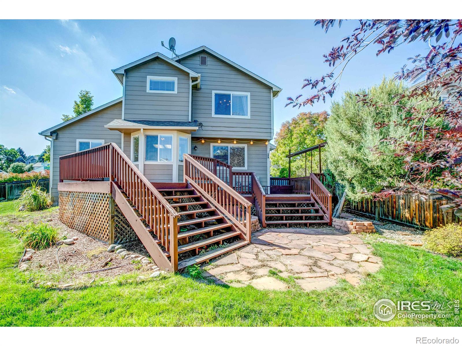 Location! This lovely 2 story home is minutes to shopping and dining on the College/Harmony corridors with easy access to trails, pool and elementary school. Situated on a corner lot that sides to a cul-de-sac with a wide gate for access to the backyard from the street. The main level boasts wood and tile flooring, vaulted ceiling and updated lighting. Upstairs has 3 bedrooms (one with French doors, crown molding, chair rail and walk-in closet can double as an office or sweet nursery!) The primary suite has large jetted tub, separate shower, water closet and walk-in closet. The vaulted ceiling gives an air of grandeur. The surprise of this home is the fantastic basement area! Finished with a wet bar with wine storage and a 3/4 bath with Steam Shower!! There is still room for storage with a large, accessible crawl space. The multi-level rear deck is made for entertaining with an extended flagstone patio! The Easterly facing deck allows for shade in the afternoon. This home is presented with a First American Home Warranty for Buyer at closing.