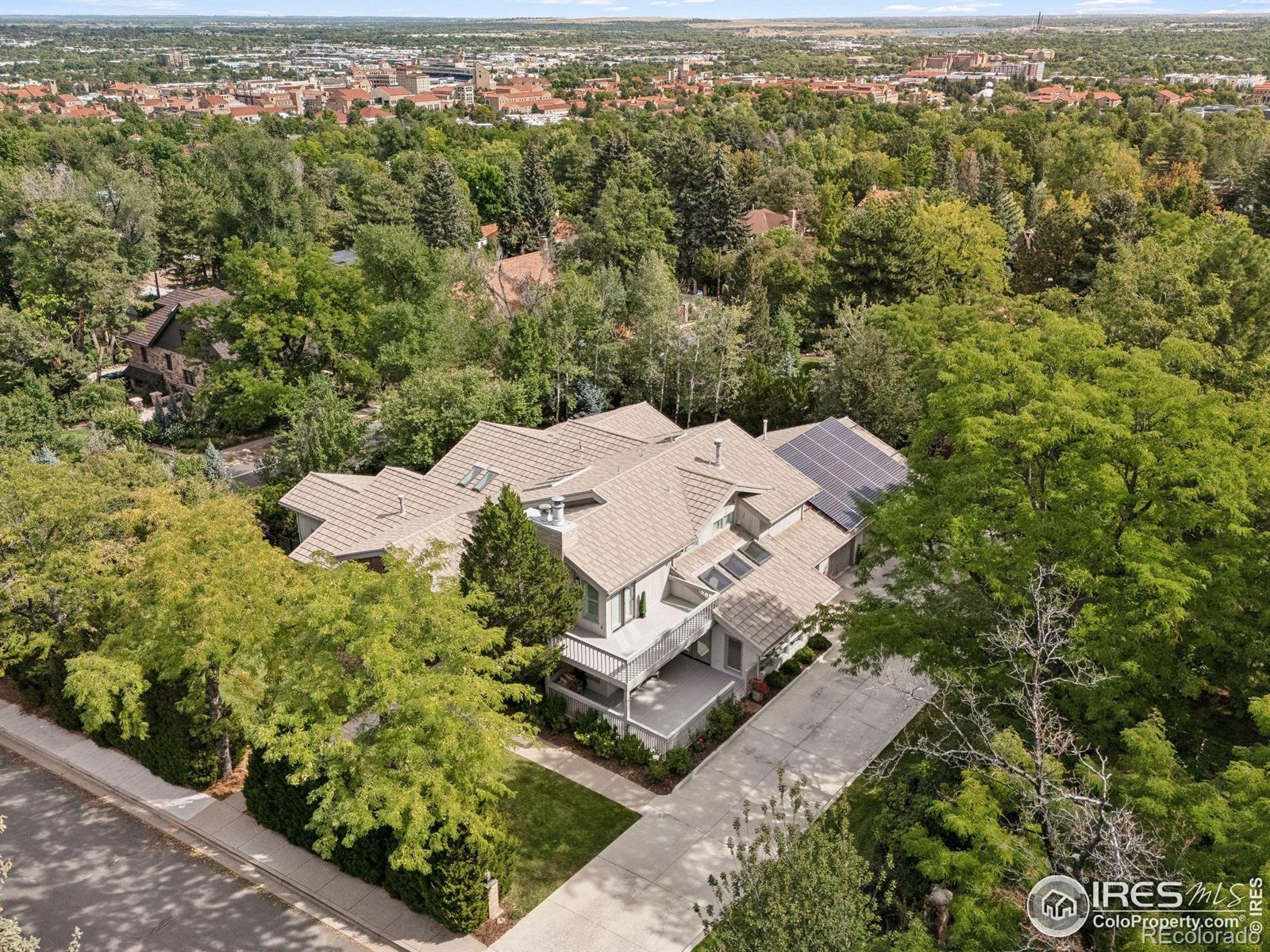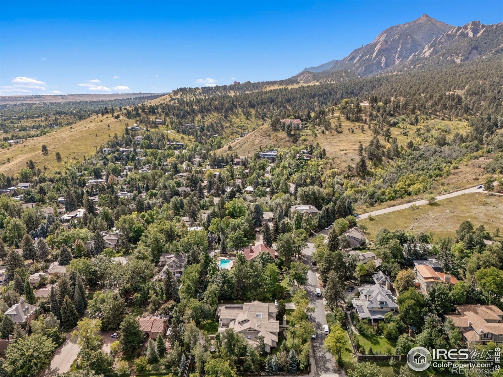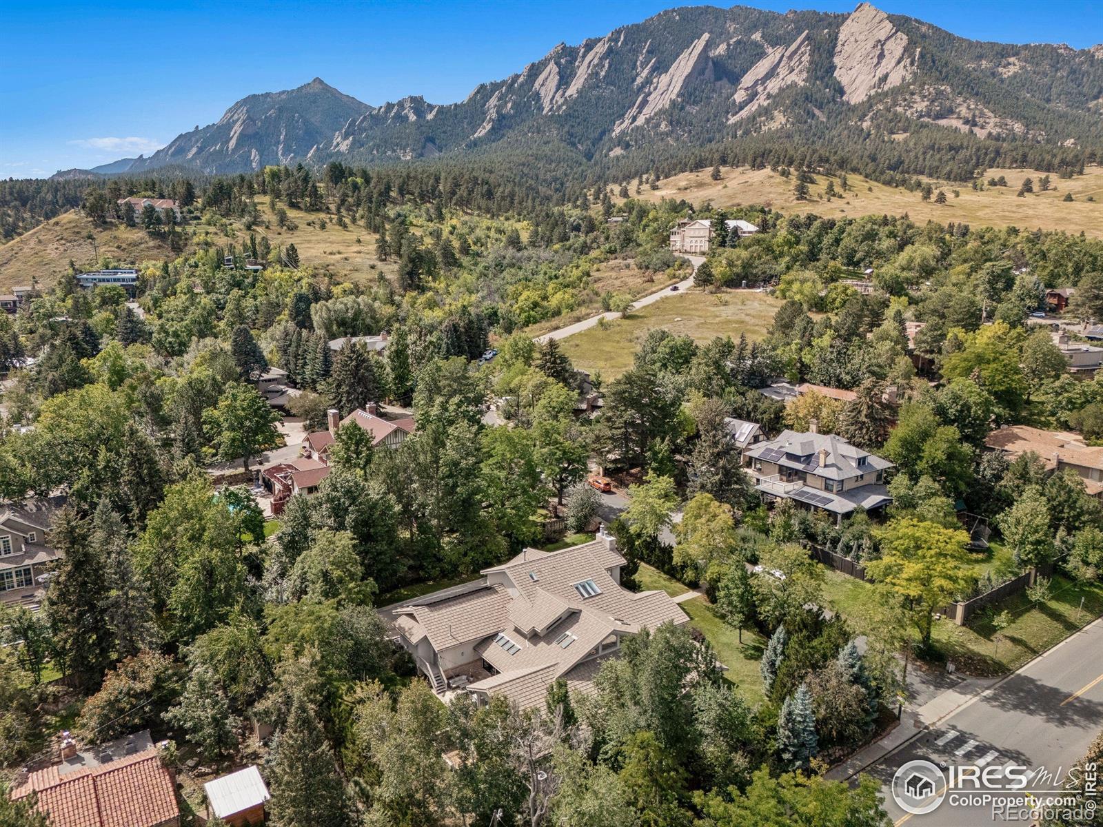 Experience Boulder's most coveted lifestyle in this exceptional residence, just steps from Chautauqua Park and Auditorium. Set on a generous half-acre lot with over 7,200 square feet, the home combines timeless design with modern updates, recently completed by Donohoe Builders, and interiors by Deidre Oliver of Oliver Designs. The main level welcomes with a marble foyer leading to an open, light-filled floor plan. At its heart, a chef's kitchen features a striking white quartz waterfall island, Sub-Zero refrigeration, six-burner Wolf range, two Bosch dishwashers, and a built-in coffee-espresso maker. Adjacent spaces include a sitting room with sliding doors to the backyard, a stylish office with moss rock fireplace, a 5-person spa room with hot tub and outdoor shower, and a living and dining area with vaulted ceilings and wall-to-wall windows framing breathtaking Flatiron views. Upstairs, the primary suite offers a private deck, wood-burning fireplace, and luxurious bath with soaking tub, Carrera marble shower, dual walk-in closets, and laundry. A guest bedroom with adjacent full bath is ideal as a nursery, office, or overnight guest stay. The lower levels provide three additional bedrooms with walk-in closets, two shared full baths, a dedicated office with deck, media room, gym/recreation space, and flexible living areas with backyard access. Outdoors boasts, mature landscaping, a flagstone patio and multiple private decks. Thoughtful interior details like custom lighting, skylights, walnut and white marble flooring, plantation shutters, and Pella windows create an inviting, modern environment. With hiking trails, concerts, and community events just steps away, plus Pearl Street's dining and shopping a minutes drive from home, this property offers a rare combination of sophistication, comfort, and connection to Boulder's iconic natural and cultural lifestyle.