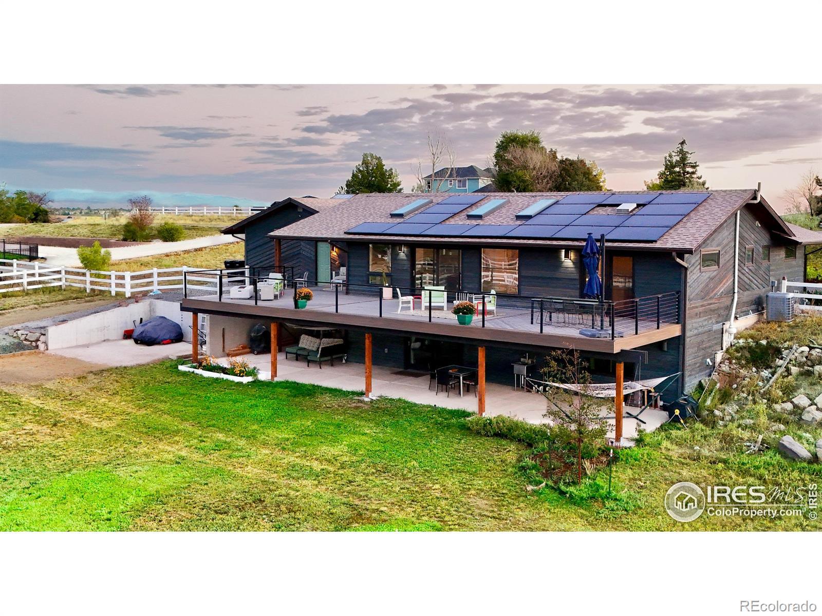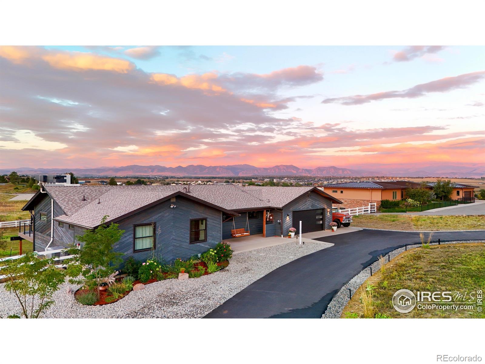 This Luxury Designer 4-bedroom, 3.5-bath, 3,360 sqft home on 2.15 acres is a true fly-in property with rare direct taxiway access to Erie Municipal Airport (EIK). Completely rebuilt from 2021 through 2025, every system and finish has been meticulously updated, blending peace of mind with refined luxury. Step inside and you're greeted by soaring 14-foot ceilings, solar-powered skylights, and light-filled spaces designed for both everyday comfort and unforgettable entertaining. The chef's kitchen showcases Tedd Wood luxury-line walnut cabinetry, a 48" Thermador professional gas range with double ovens, custom pantry, and an illuminated Patagonia granite island. A built-in wine bar and coffee bar add to the home's effortless hospitality. The main-level primary suite is your sanctuary, with a spa-inspired bath featuring a two-person BainUltra soaking tub, oversized walk-in shower, and heated mirrors. Designer finishes and luxury fixtures are found around every corner. Outdoor living is abundant here, with nearly 1,000 sqft of Trex decking capturing views of the Flatirons and snow-capped Rockies. Each day begins with golden sunrises across the mountains and ends with breathtaking sunsets - a living art show you'll never tire of. Watch hot air balloons drift across the horizon in the morning and unwind under fiery Colorado skies at night.This property also delivers unmatched flexibility: taxi your plane from your backyard, design your own hangar, or build an ADU above it for guests, income, or multi-generational living. Practical upgrades include an owned solar array, Level 2 EV charger, RV hookups, smart-home automation, and every major system updated. Conveniently located just 25 miles from Denver International Airport and 10 miles from Rocky Mountain Metropolitan Airport, this address balances serenity with accessibility.190 Cessna isn't just a home - it's a lifestyle of freedom, beauty, and possibility, rebuilt with intention and ready for its next story.