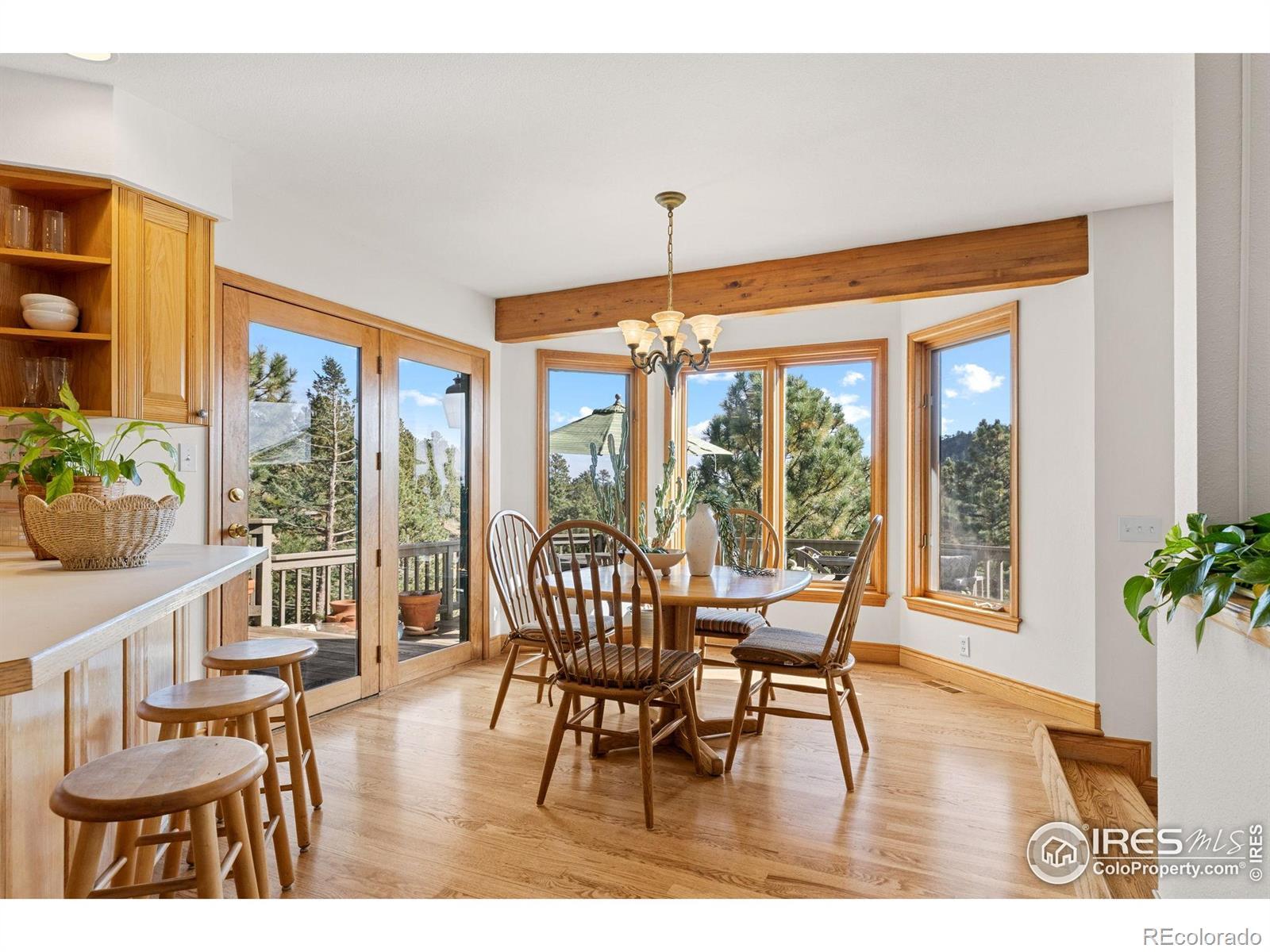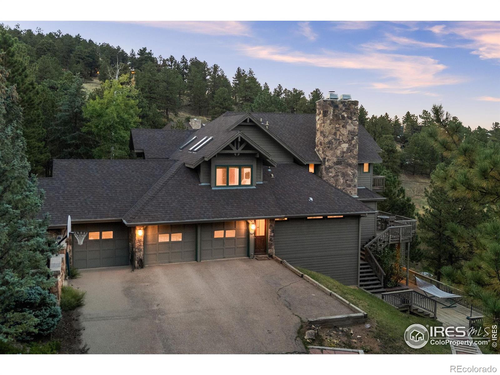 Enjoy your own mountain oasis in the coveted Pine Brook Hills neighborhood of Boulder. Experience tranquility and convenience in this ideally located home on a 1.8-acre lot, offering peaceful mountain living with easy access to Boulder's amenities just 5 minutes up Linden from Broadway. This semi-custom residence, cherished by its original owners, features 5,656 square feet of thoughtfully designed living space with stone accents and hardwood floors. Through the grand entry enjoy a formal living room, dining room, sunny kitchen with a breakfast nook, casual living room with a moss-rock fireplace. Retreat to the sophisticated den with wainscot paneling & wood beams or another office/guest bedroom with a 3/4 bath. The home offers 5 bedrooms and 6 bathrooms, including a luxurious primary suite on the upper level, complete with moss rock fireplace, a 5-piece bath with a view, dual walk-in closets, and a private balcony for sunrises and moonrises. The upper level also features 2 Jack & Jill bedrooms and a laundry room. The walk-out lower level, completed in 2000, is perfect for entertaining and enjoyment with wide plank hardwood floors, 13' ceilings, large windows, and sliding doors leading to a patio. This level includes a 400 square ft multi-purpose landing, a powder room, a lavish 600 sq ft rec room with stone fireplace, kitchenette/bar, wine cellar, and guest bedroom with private 3/4 bath. Storage is ample with a significant storage room and another room for music/hobbies. With two furnaces, a large hot water heater, and a well-maintained roof, this home is well-equipped. Enjoy the natural beauty from your redwood deck or patio, and explore the property's flat areas and small cabin with twin bunks - the ultimate clubhouse. The south-facing driveway leads to the 3-car garage with mudroom entrance. Pine Brook Hills offers its own water source, Boulder Mtn Fire protection, BVSD bus svc, and Boulder County maintained roads. Move in and write your own magnificent story.