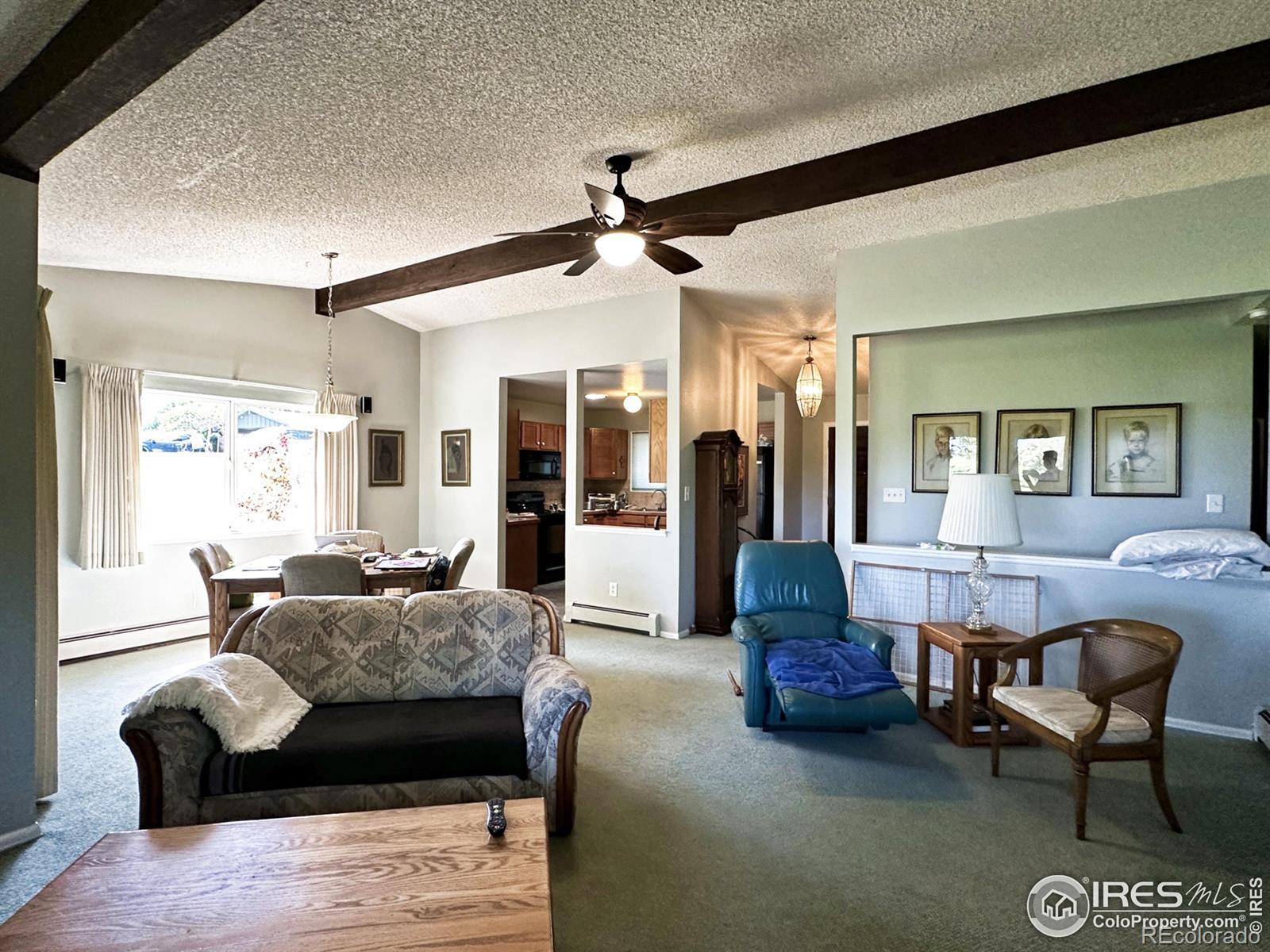 Adriel Hills is a peaceful residential community in Fort Collins, known for its mature trees, quiet setting, and resort-style amenities. The neighborhood includes a mix of single-family homes, townhomes, and condominiums, and is managed by the Adriel Hills Condominium Association, which provides exterior maintenance, snow removal, landscaping, and upkeep of common areas. This low-maintenance lifestyle appeals to many homeowners looking for convenience and a well-cared-for environment. This property consists of 3 beds, 2 baths (one primary on-suite), great living room with fireplace and vaulted ceilings, laundry room/utility room and 2 garage stalls (one stall has 2 open walls - may be considered a carport but could be enclosed. This is an end unit and the covered patio faces the par 3 golf course, which is exclusive to the residents. These units rarely come available and this one is a gem.