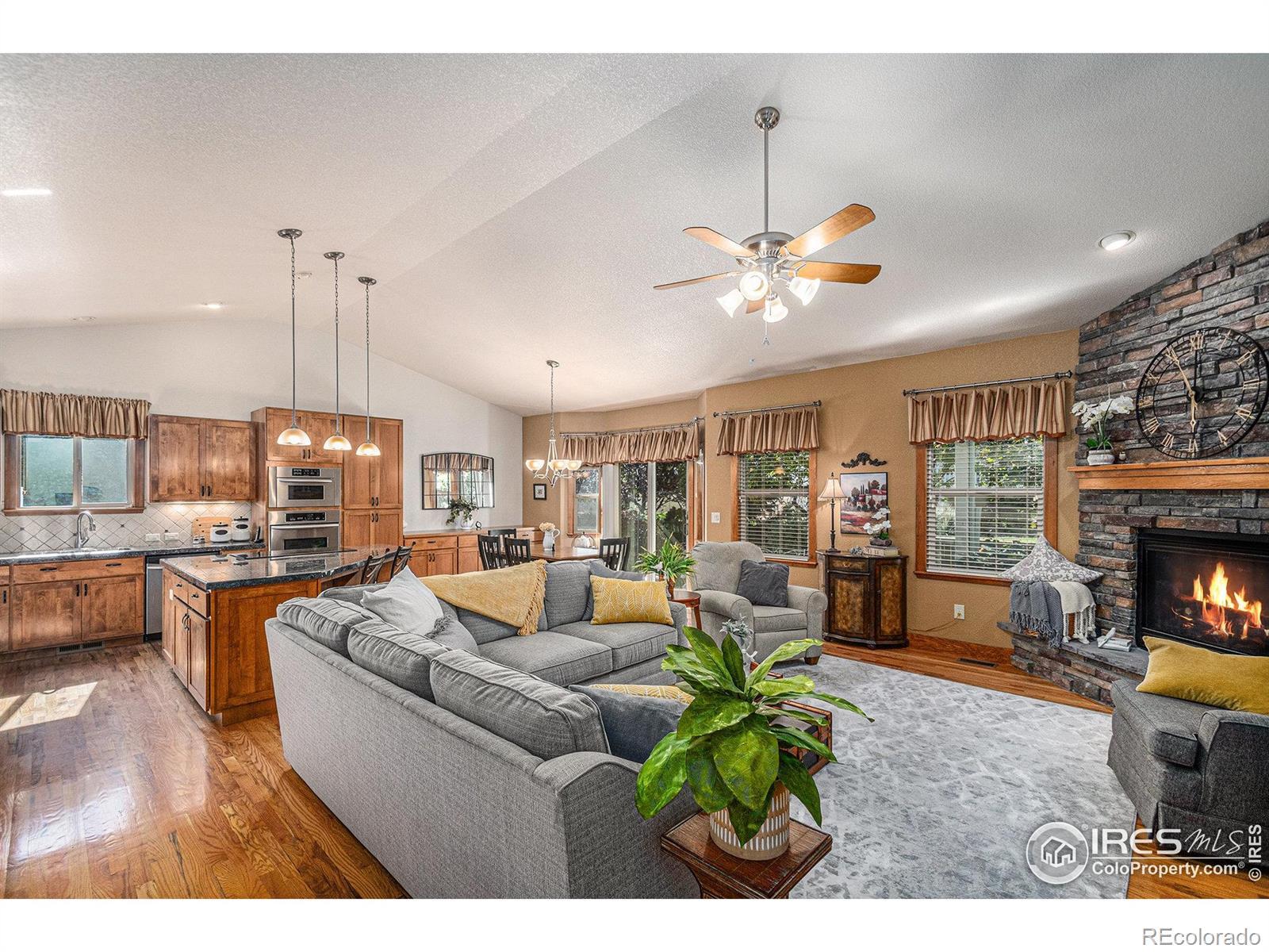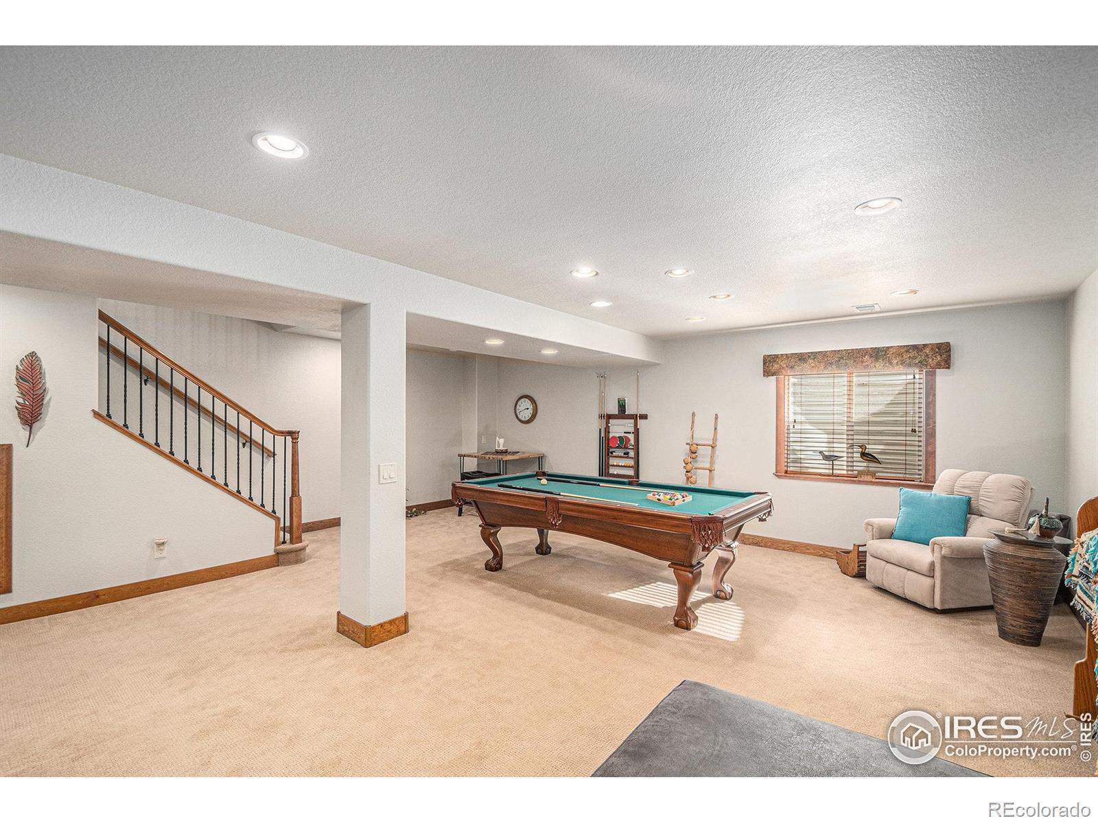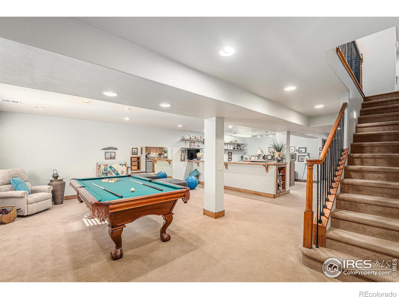 Welcome to this stunning ranch-style home in Loveland's highly sought-after Seven Lakes community! Just minutes from Lakes Heinricy, Boyd, Westerdoll, and Horseshoe, you'll enjoy endless opportunities for fishing, boating, and peaceful lakeside views. Inside, discover an inviting open floor plan with vaulted ceilings, beautiful hardwood floors, and high-end finishes throughout. The gourmet kitchen features a large center island, stainless steel appliances, a pantry, and plenty of cabinet space. The main-level primary suite offers a walk-in closet, a spa-like bath with a jetted tub, and a walk-in shower for ultimate relaxation. Downstairs, the finished basement is perfect for entertaining with a wet bar, hangout area and an included pool table (subject to offer). The oversized 3-car garage provides ample room for vehicles, gear, and hobbies. Outside, enjoy a fenced yard with sprinklers and a patio ideal for relaxing Colorado evenings. Come see it today!