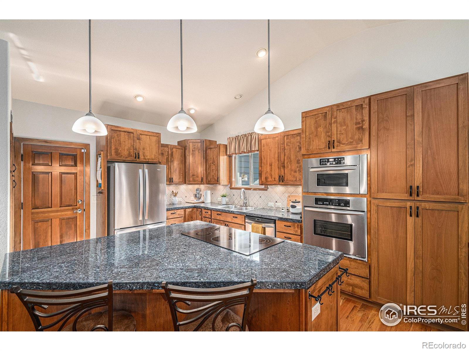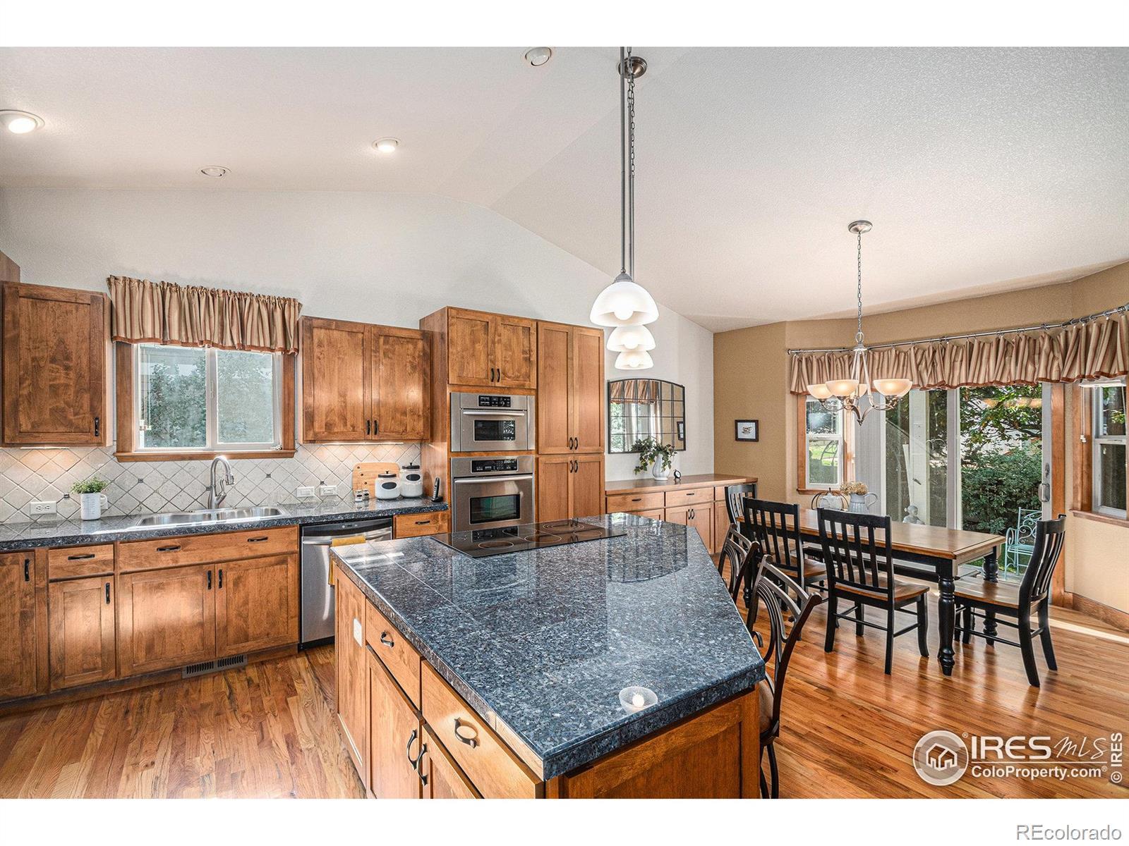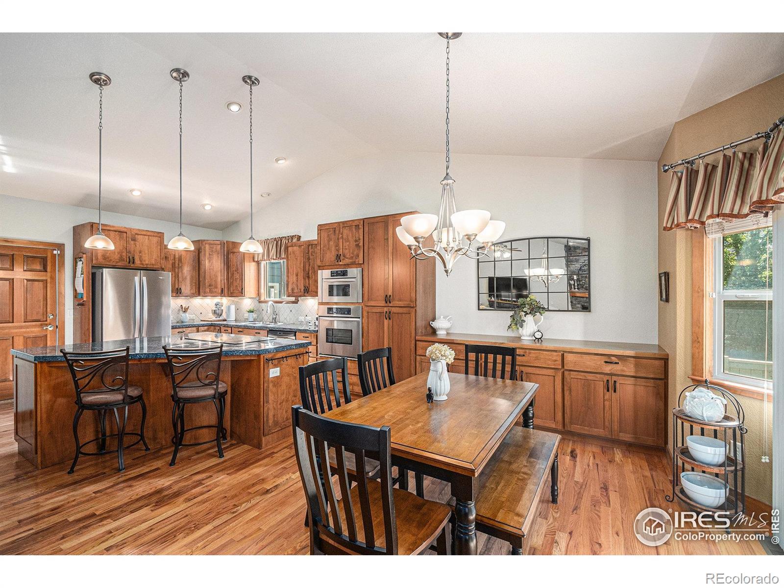 Welcome to this stunning ranch-style home in Loveland's highly sought-after Seven Lakes community! Just minutes from Lakes Heinricy, Boyd, Westerdoll, and Horseshoe, you'll enjoy endless opportunities for fishing, boating, and peaceful lakeside views. Inside, discover an inviting open floor plan with vaulted ceilings, beautiful hardwood floors, and high-end finishes throughout. The gourmet kitchen features a large center island, stainless steel appliances, a pantry, and plenty of cabinet space. The main-level primary suite offers a walk-in closet, a spa-like bath with a jetted tub, and a walk-in shower for ultimate relaxation. Downstairs, the finished basement is perfect for entertaining with a wet bar, hangout area and an included pool table (subject to offer). The oversized 3-car garage provides ample room for vehicles, gear, and hobbies. Outside, enjoy a fenced yard with sprinklers and a patio ideal for relaxing Colorado evenings. Come see it today!