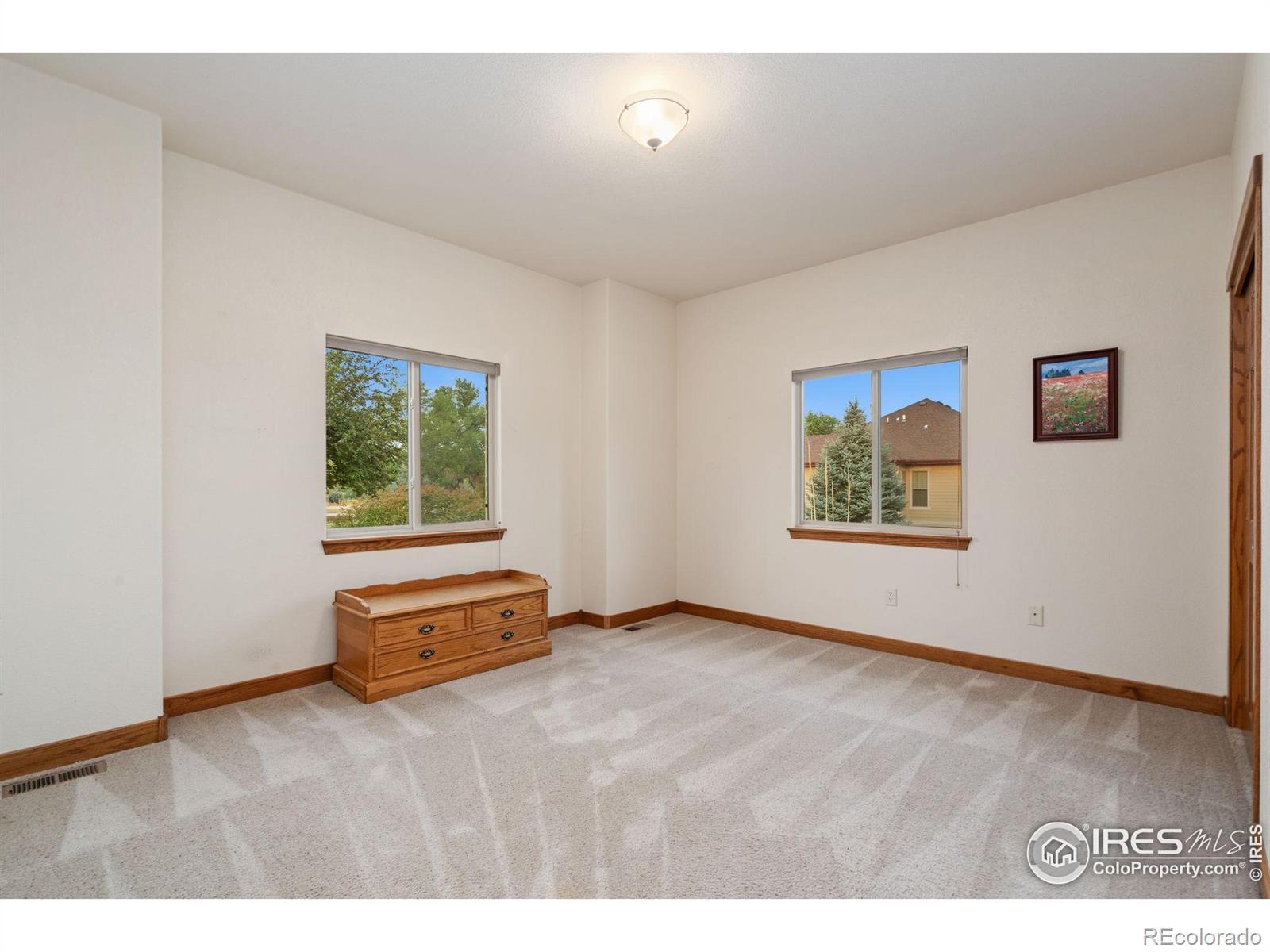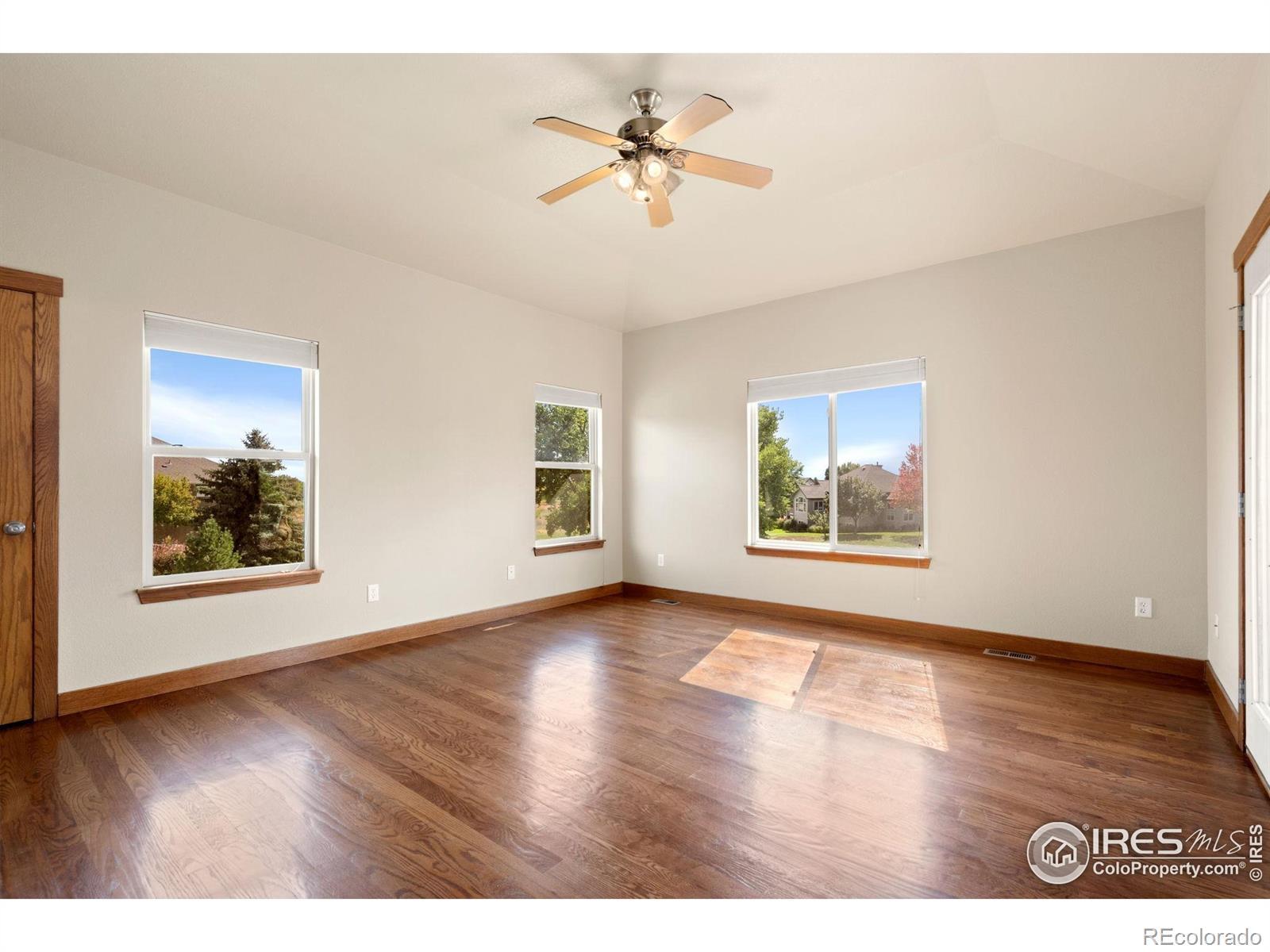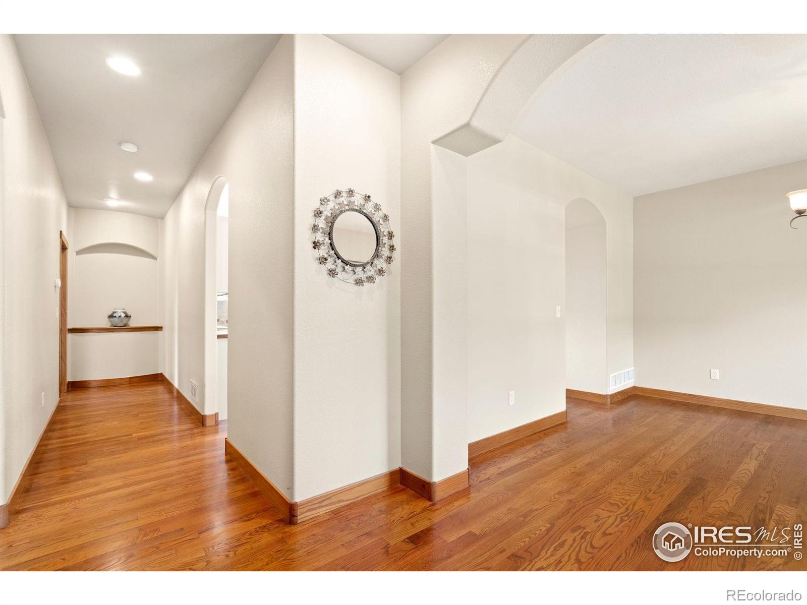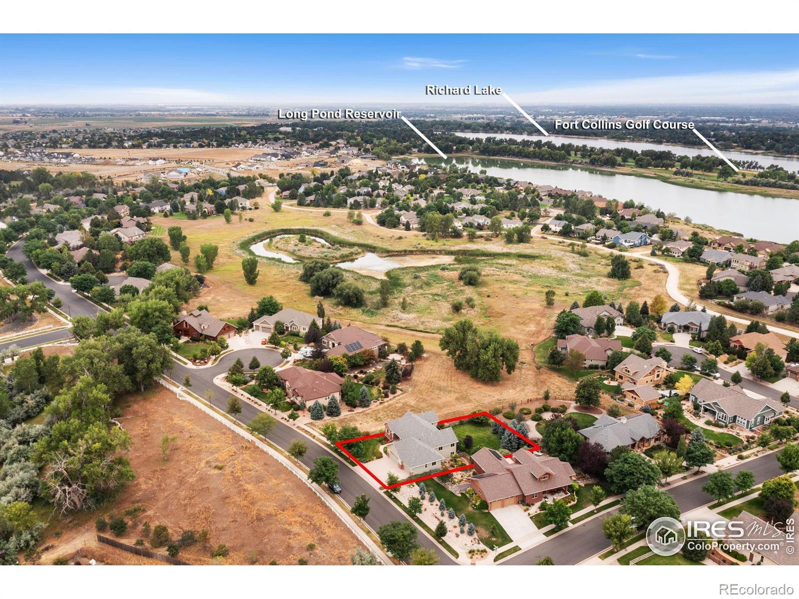 Gorgeous Ranch with Walkout on an amazing .31 acre lot backing and fronting to open space. Beautiful Mountain, Open Space and Pond views in desirable Hearthfire neighborhood. Richards Lake and pool access just a short walk away. Fish, sail, paddle board or boat on the private neighborhood lake.This sprawling ranch offers a great open layout, separate dining area, office & open kitchen overlooking the living room. Brand new roof to be installed prior to closing. Newer exterior & interior paint. Brand new carpet upstairs and SS appliance's. Walkout basement has a huge rec/game room (with rough in installed for wet bar), huge storage area, big bedroom and full bath. Oversized 3 car garage. Private Park like setting abutting open space (in back & front of home) w/ multiple patios and decks & fully landscaped yard w/ mature trees & views of Horsetooth & Longs Peak completes this perfectly appointed and exceptionally desirable ranch style home. Drive your golf cart to the Fort Collins Country Club just around the corner, swim in the neighborhood pool, or take your beautiful morning walks around the lake, all just minutes to Old Town Ft. Collins. Don't miss out on one of the best deals in all of Hearthfire.